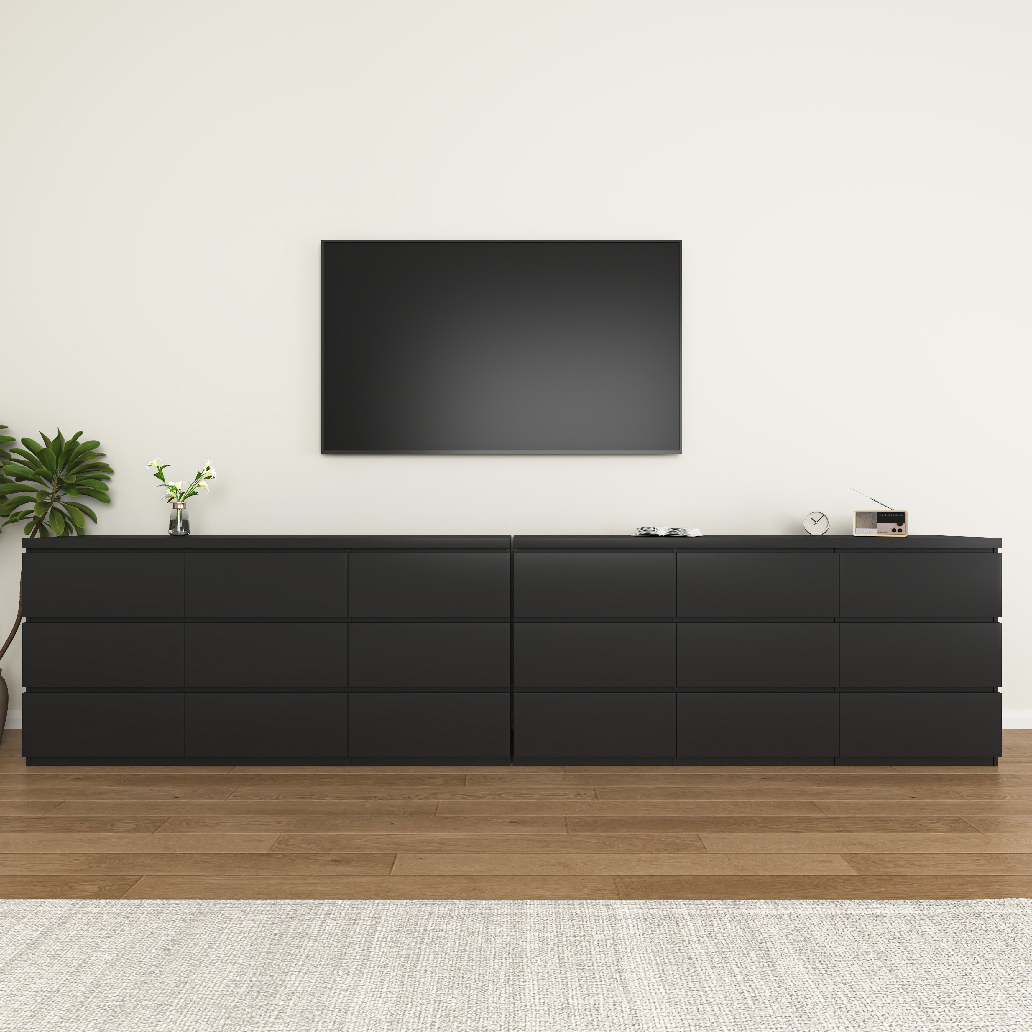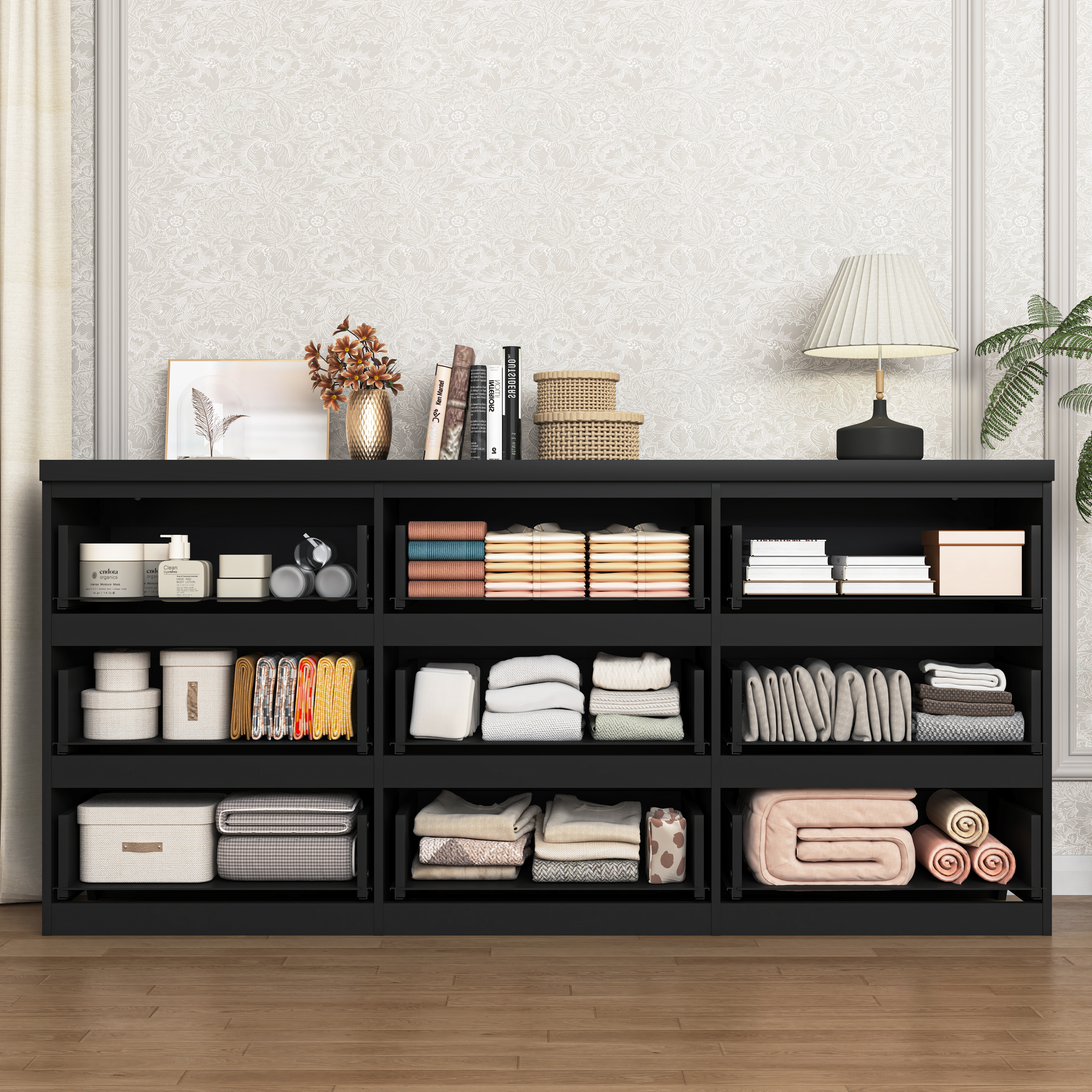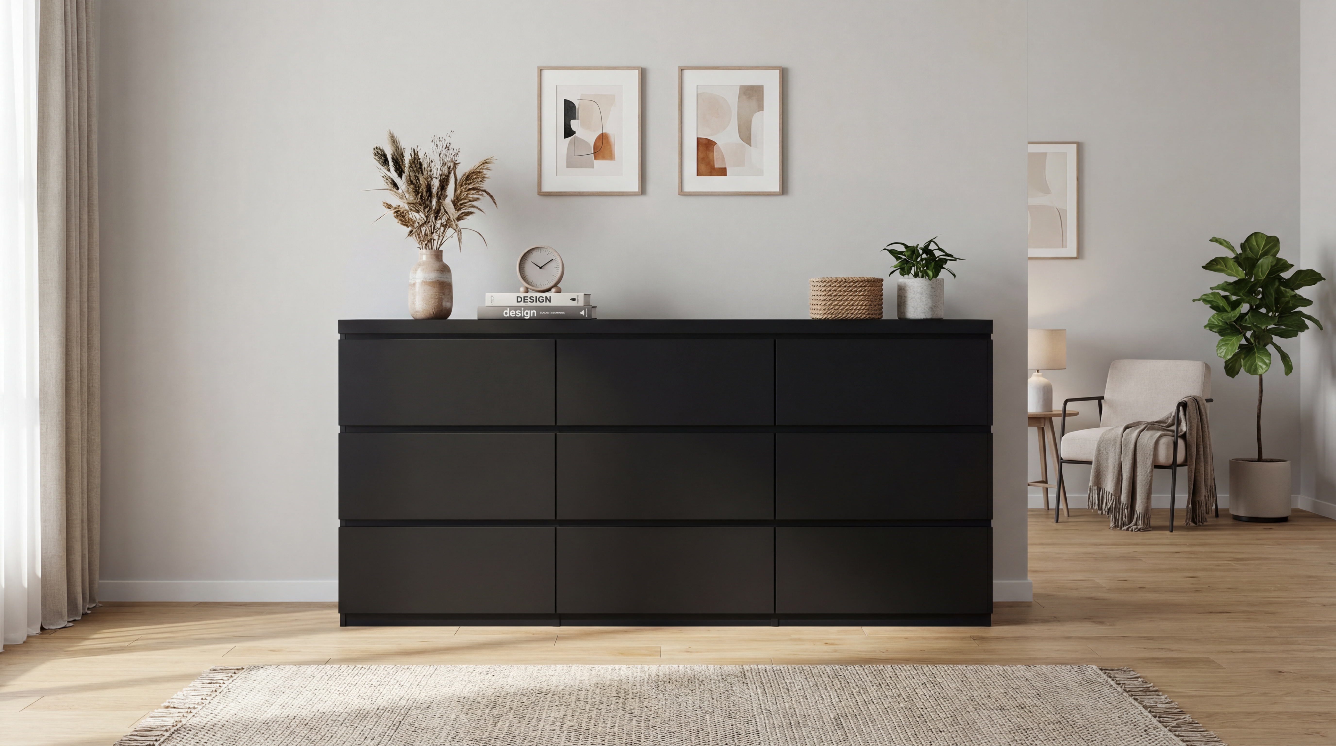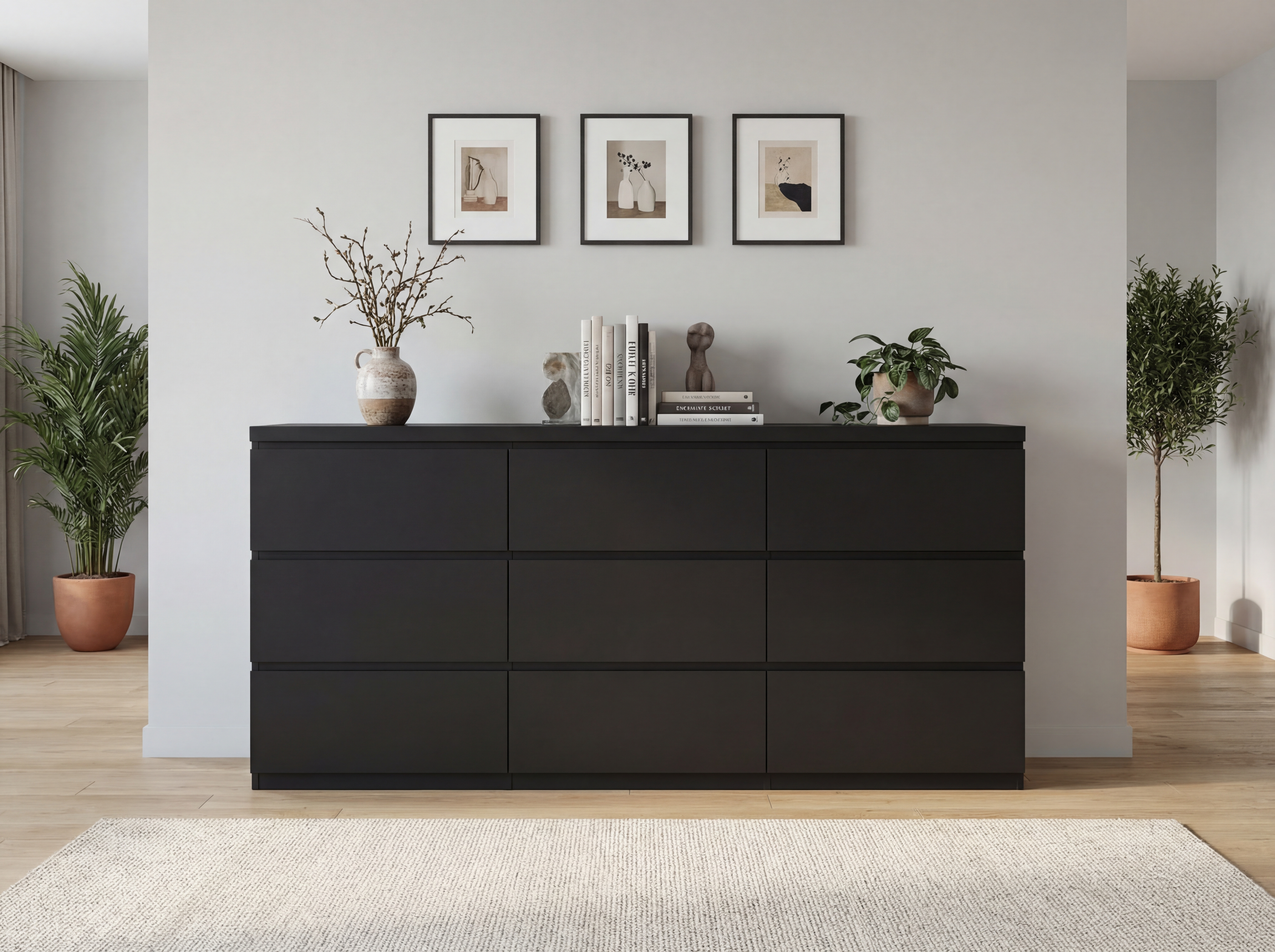 Product Name:9 Drawer Dresser with No Handle Design, Modern Black Matte Wood Dresser for Bedroom, Storage Chest of Drawers for Living Room, Hallway, Entryway