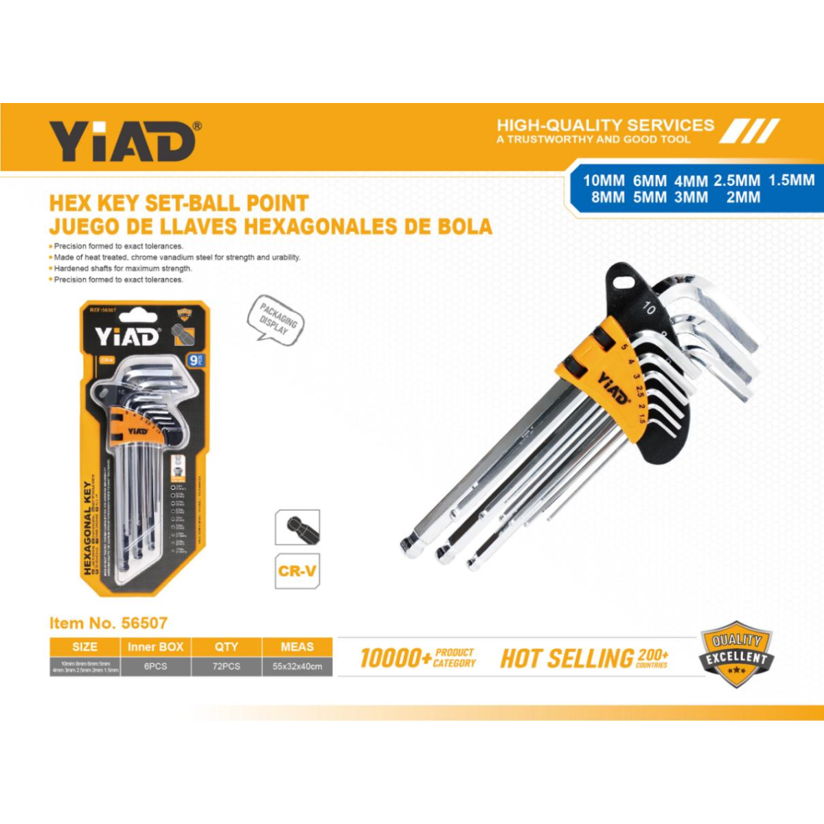 9-piece Set Of Medium-length Ball Head Hexagon Socket, Only Supports Self-pickup, Please Note That Free Shipping Is For Anti-bidding Price