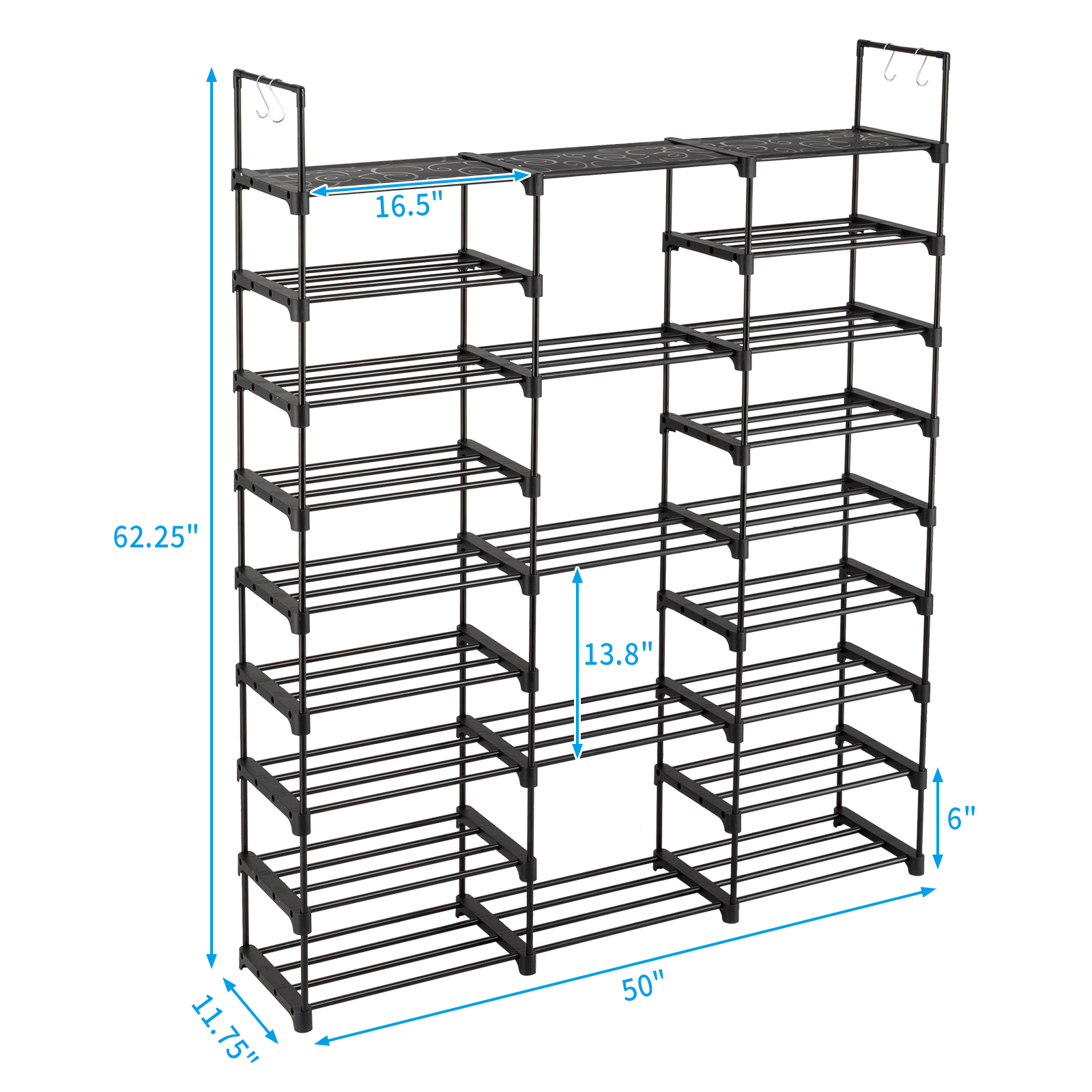 【9 Tiers Large Storage Space】TIMEBAL 9 Tiers Shoe Rack has a large storage space design , Stores up to 50-55 pairs shoes, The height can be freely assembled and changed according to the needs of the family to meet the storage needs of shoes of different heights, It can fit boots, High heels or slippers etc.
