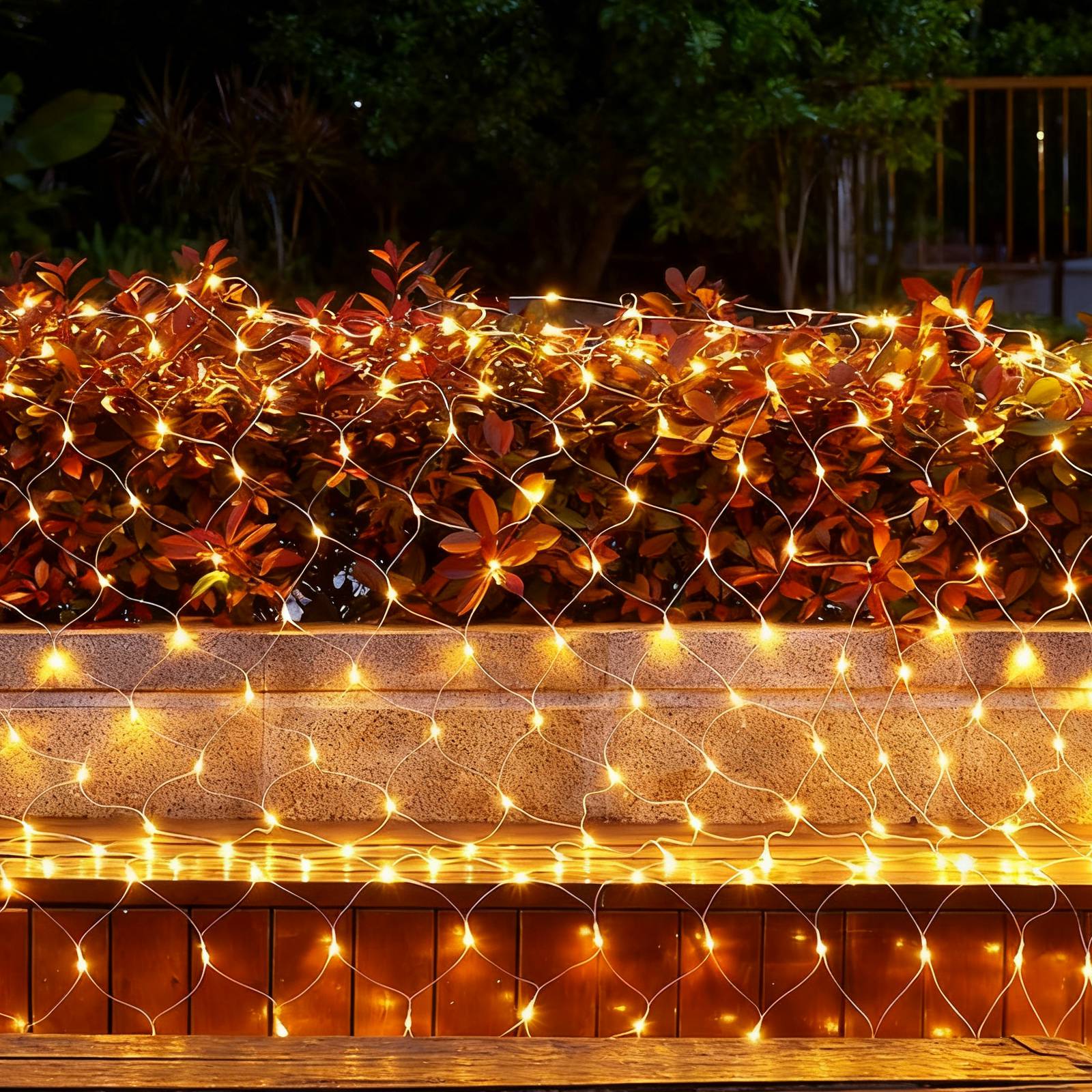 • *Net Light for Every Holiday & Decor*:Measuring 9.84 × 6.56 ft with 16 strands and 192 warm yellow LED beads,this solar net light is perfect for year-round decorating. Whether it's the twinkling charm of Christmas,the romantic glow for Valentine’s Day,the celebratory spirit of New Year,the elegance of a wedding,the vibrancy of parties,or simply enhancing the beauty of your garden,yard,or shop,this solar net light is the perfect choice. It instantly adding a warm,enchanting ambience for every scene!