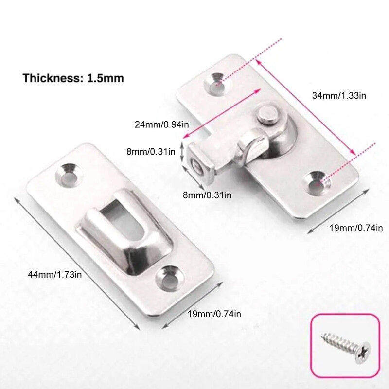 90 Degree Stainless Steel Door Latch-Right Angle Sliding Door Lock Home Safety Screw Locker Furniture Hardware Accessories