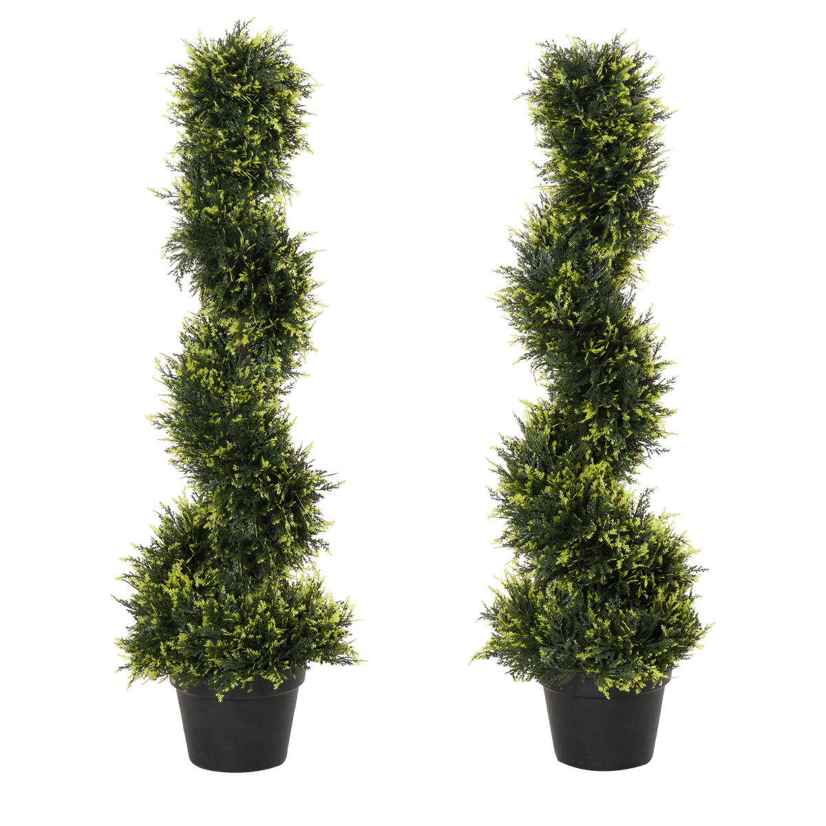 Bringing beautiful greenery into your home doesn't get much easier than this. These 2 potted plants will liven up your space without maintenance. Come in a set of two, so you can create a matching look in the home s. Made from plastic for long-time use, the premium quality holds a realistic colour. The fake tree is tall, and the spiral shape adds to the beauty. Our indoor plants both come with a pot, so you have everything you need in the package.