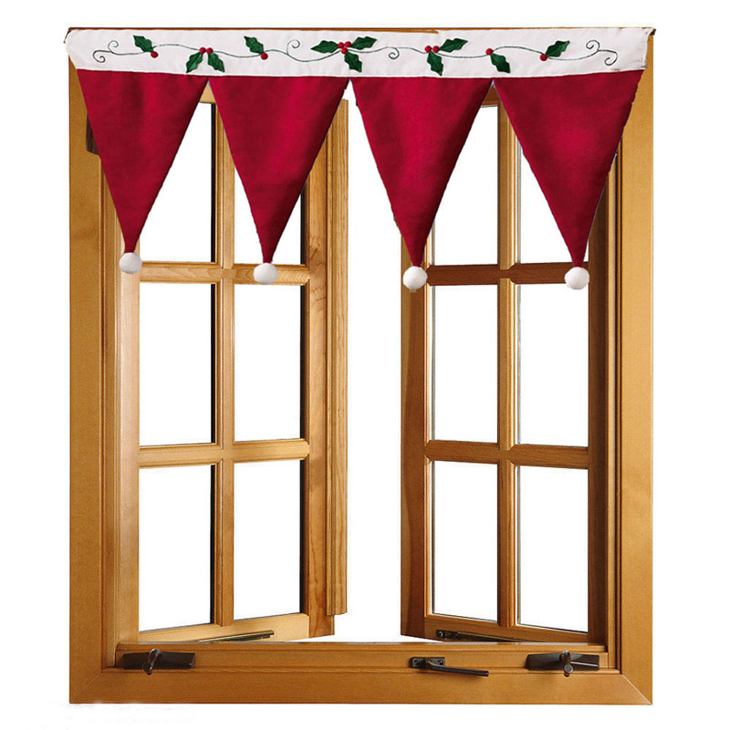 Convenient: Easy to hang and clean, rod pocket for hanging Adorable valance: Looks like a row of upside-down Santa hats.