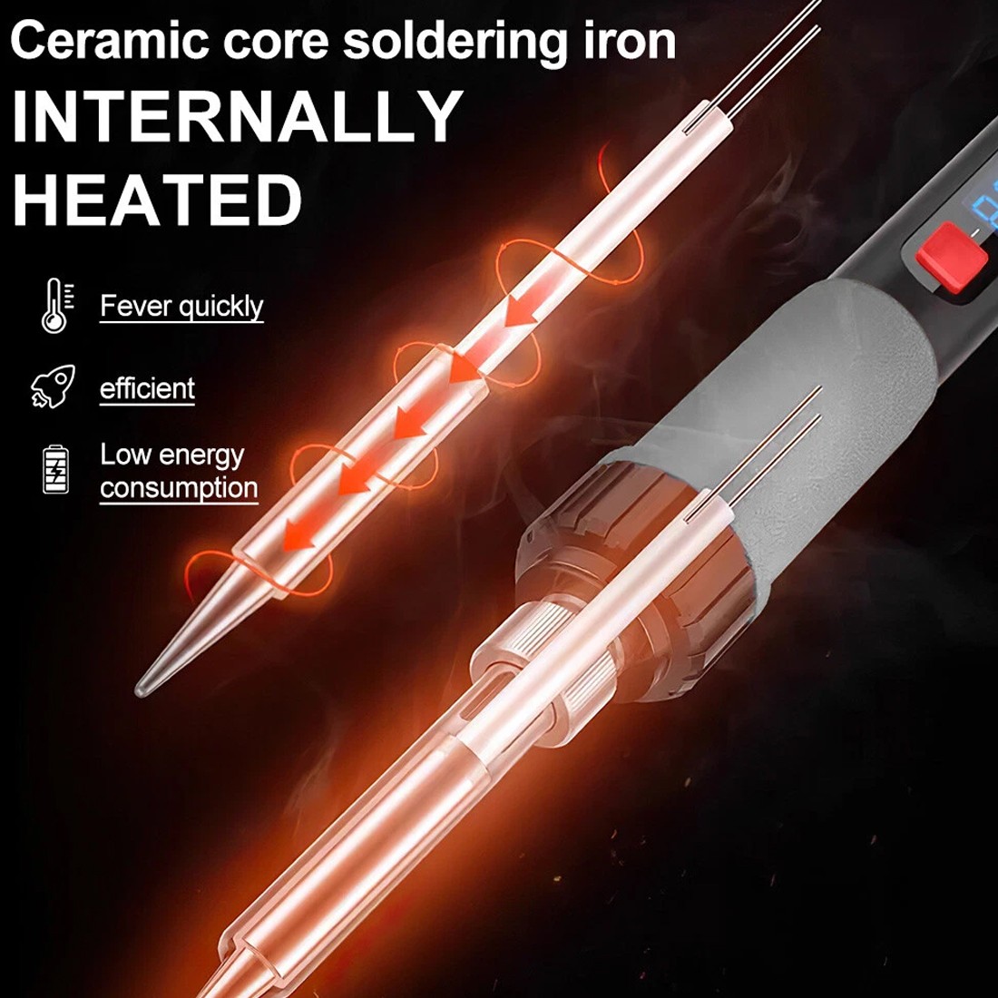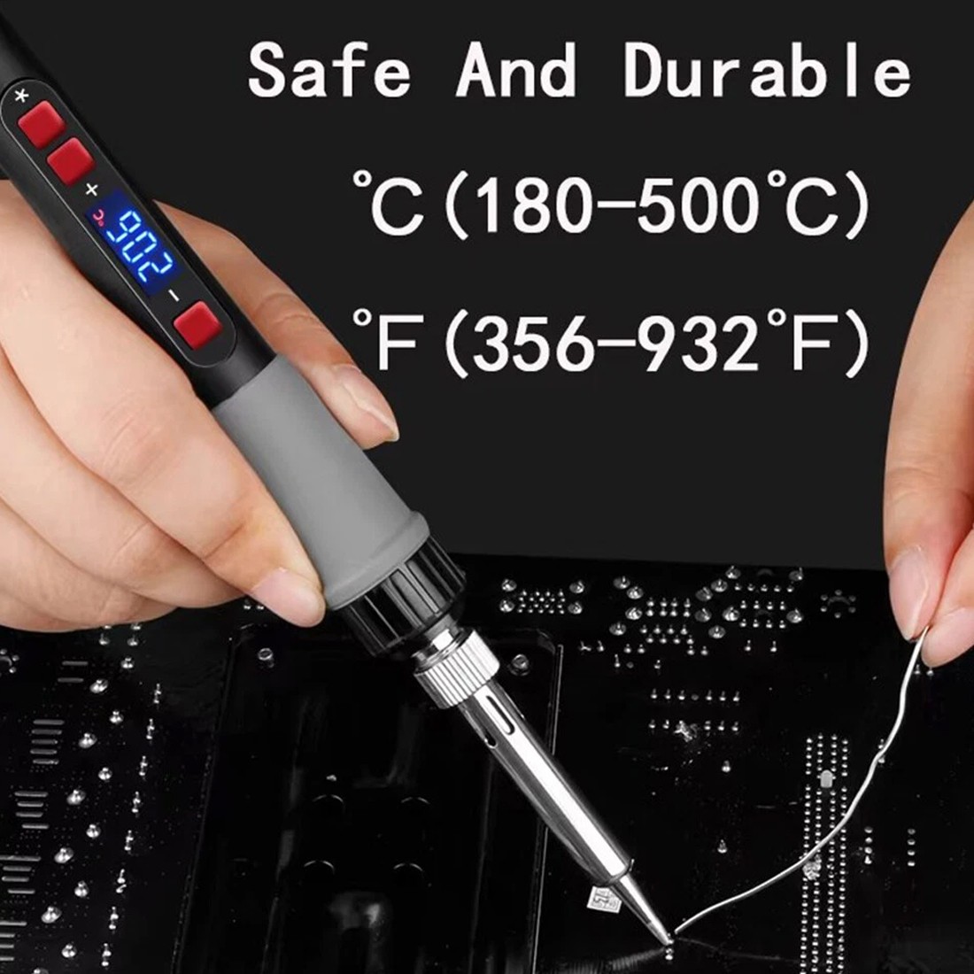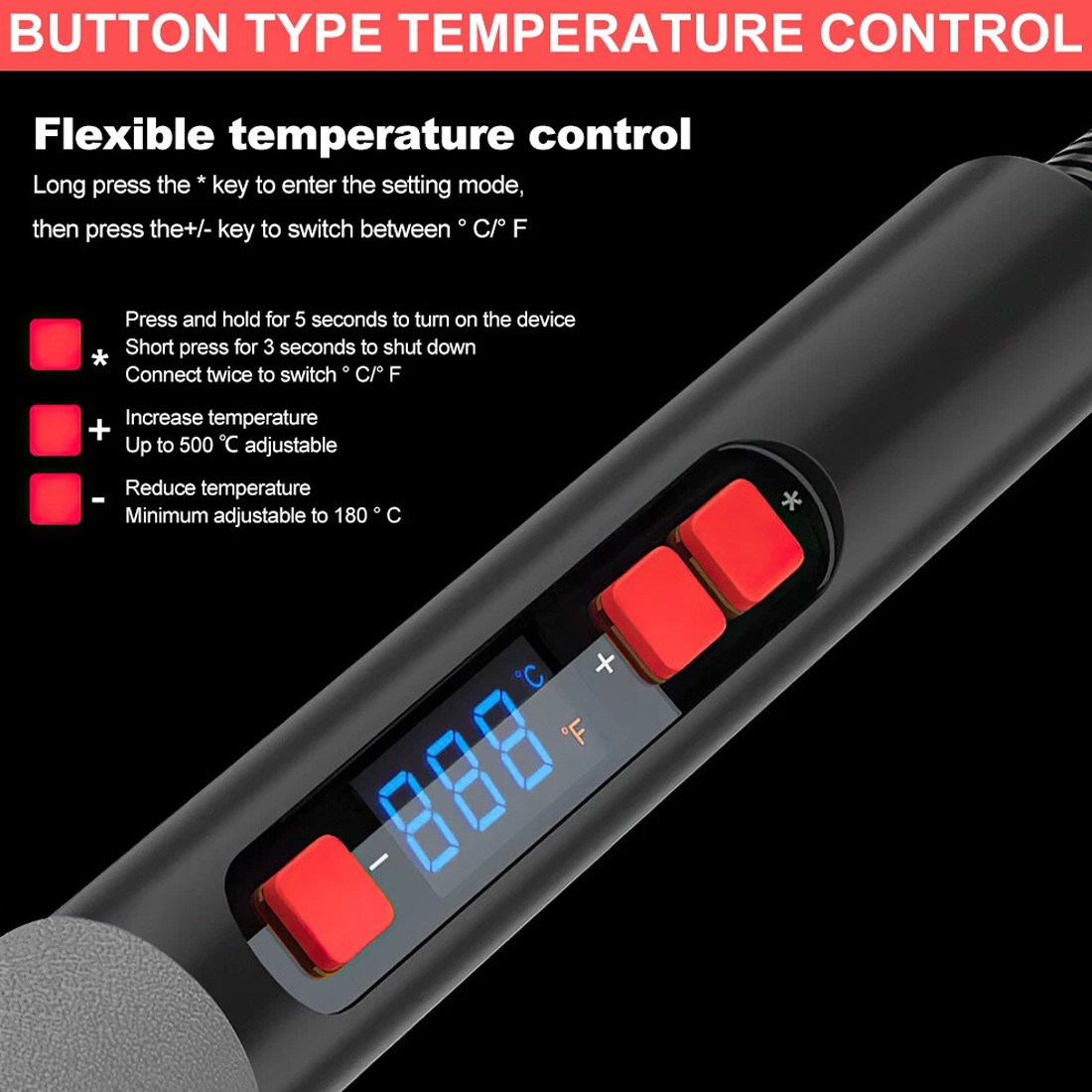 -LCD Digital Display: LCD high-definition digital display, can indicate the real-time temperature and working status of the solder gun, you can adjust the temperature precisely by pressing the button "+"/"-", while supporting one-touch power on/off and conversion of Celsius(℃) and Fahrenheit degrees(℉) "+"/"-"