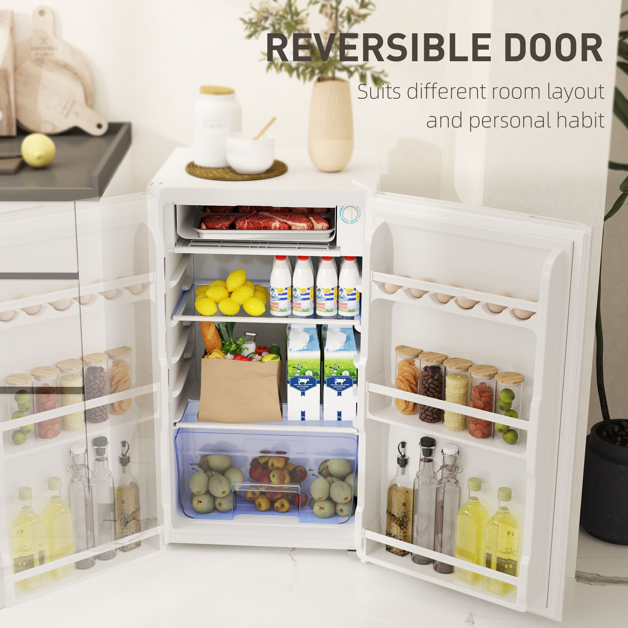 A home and office essential, straight from -this small fridge freezer. The under-counter design makes it great for small spaces, bedrooms and even fitted kitchens. The 91 litre capacity small fridge freezer makes the size suitable for a small family household, shared flat or even for using to yourself. Comes with the standard removable shelves, but with a top chiller box as extra to keep your food and drink deliciously cool and tasty. Temperature range: 0-10℃.