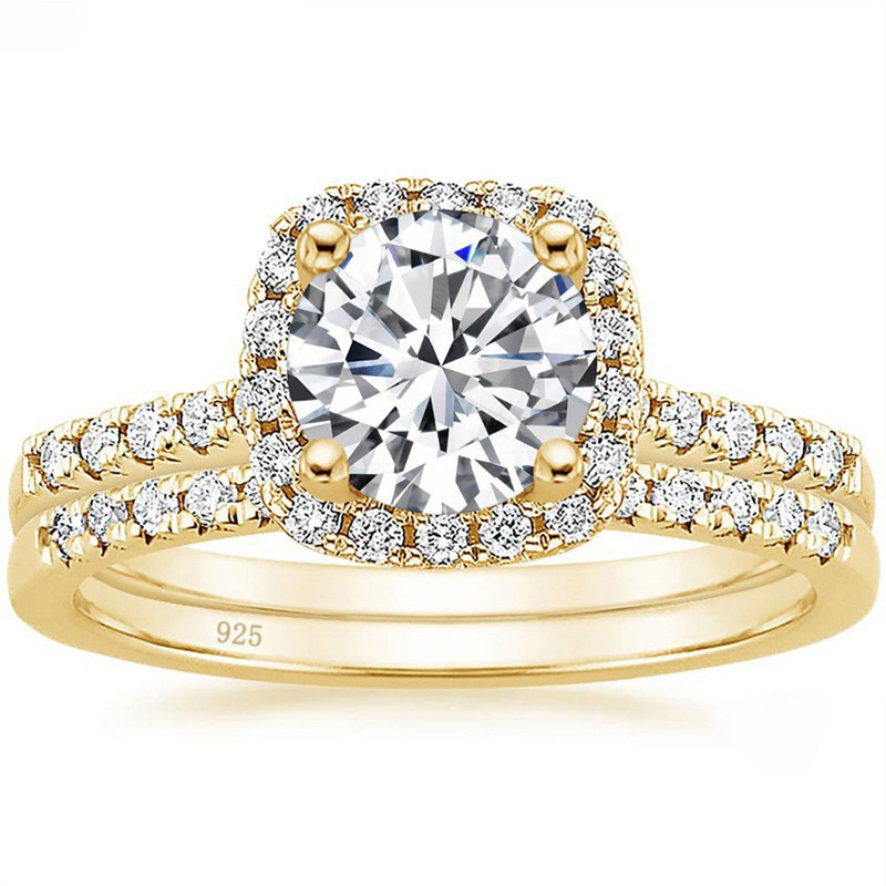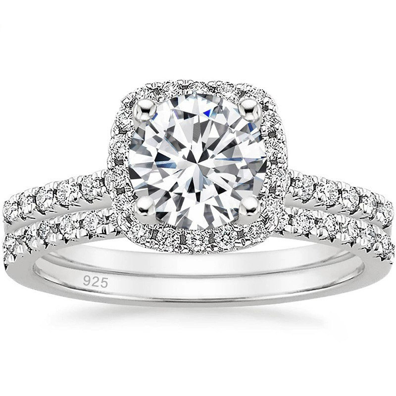 925 Inlaid 7mm Round Zircon Set Simulation Diamond Ring