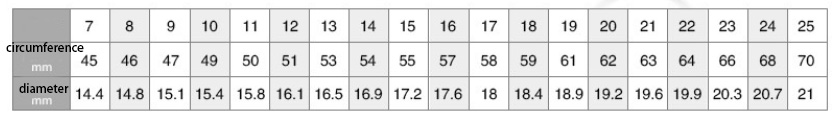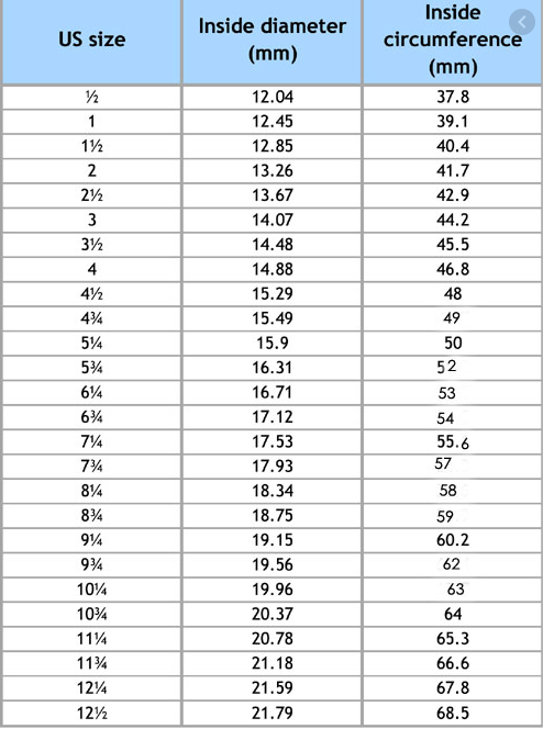 USA ring size chart