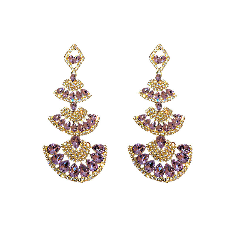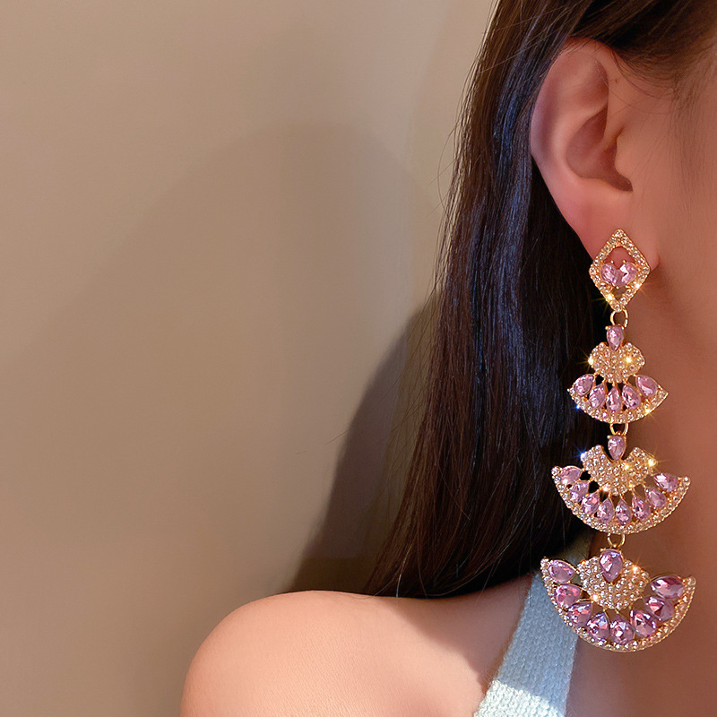 925 Silver Needle Ethnic Style Fashion Design Diamond Fan Earrings