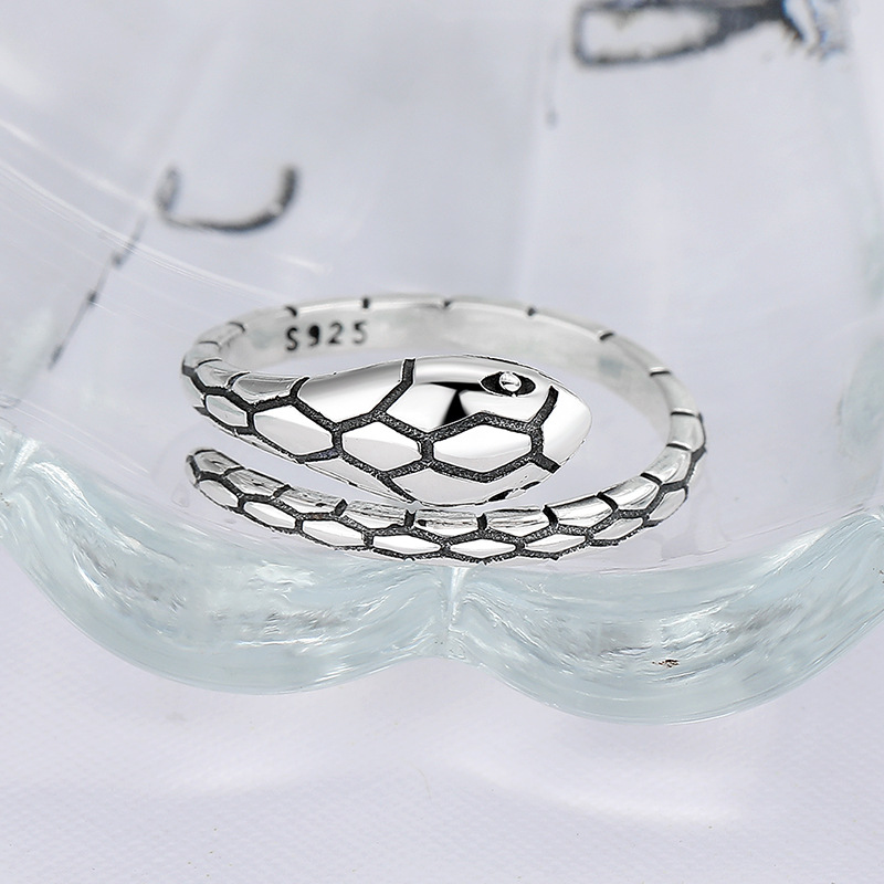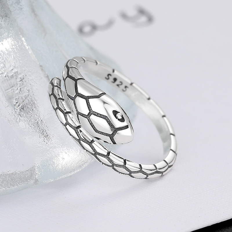 925 Silver Ring Ins Fashion Couple Ring Vintage Snake Head