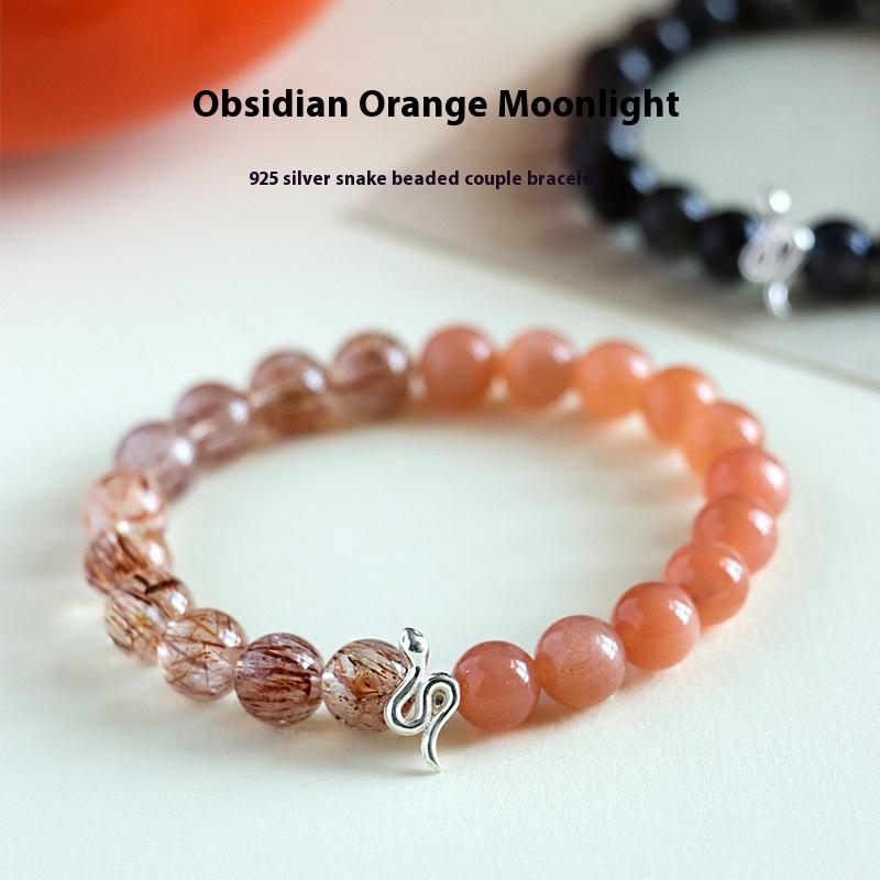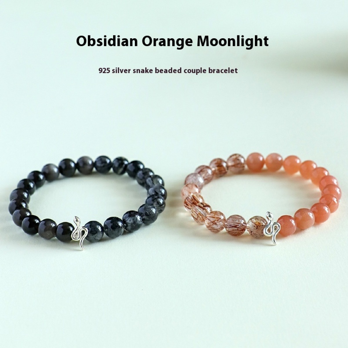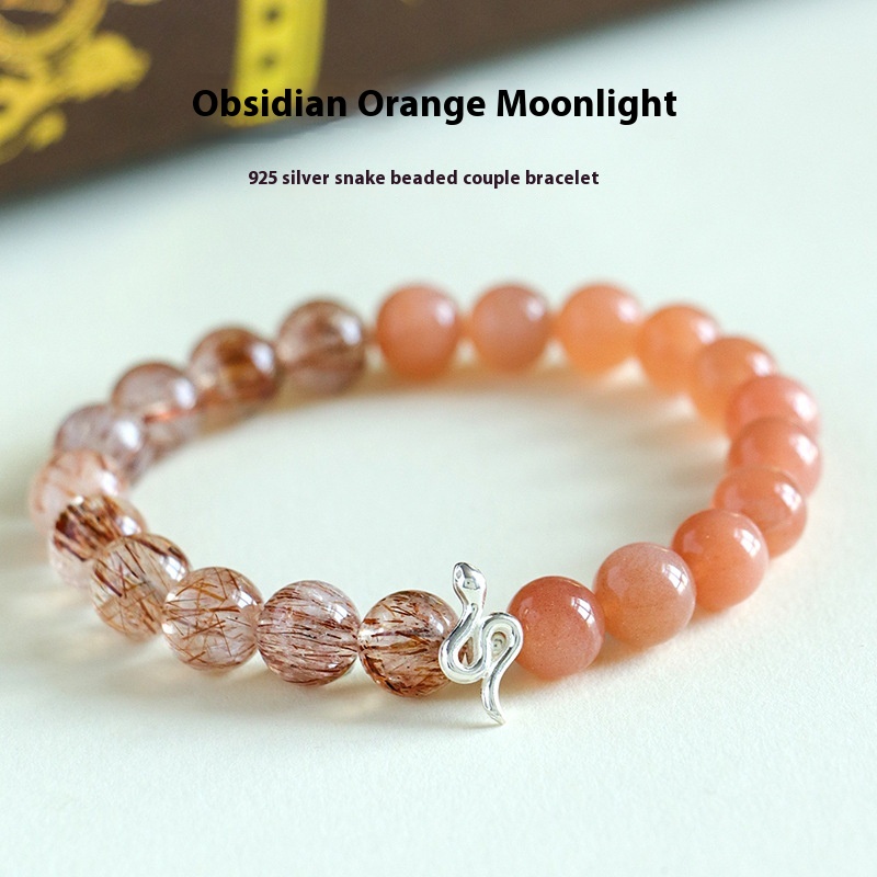 Material: black hair crystal silver stone 925 silver blessing snake black gold over seven Sunstone