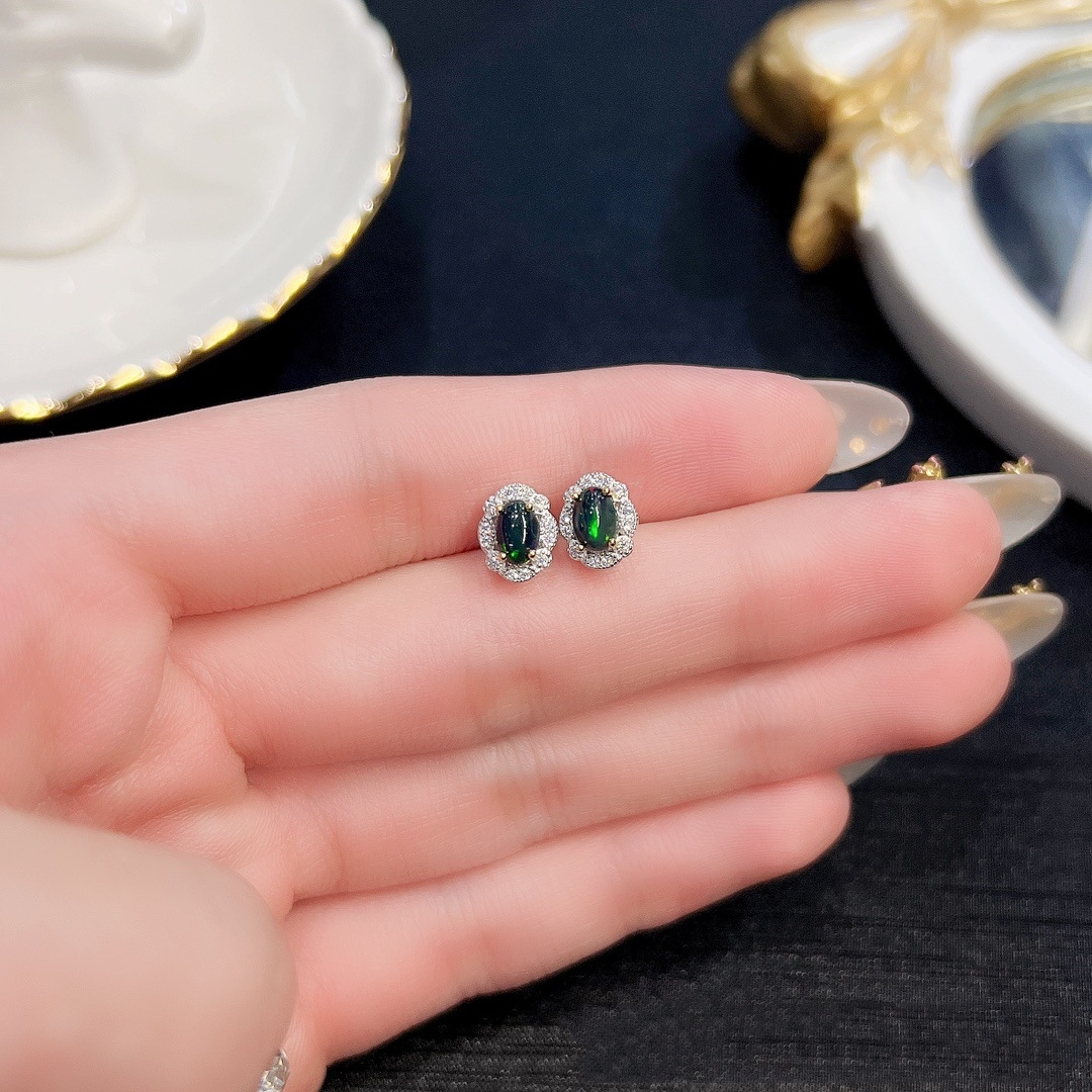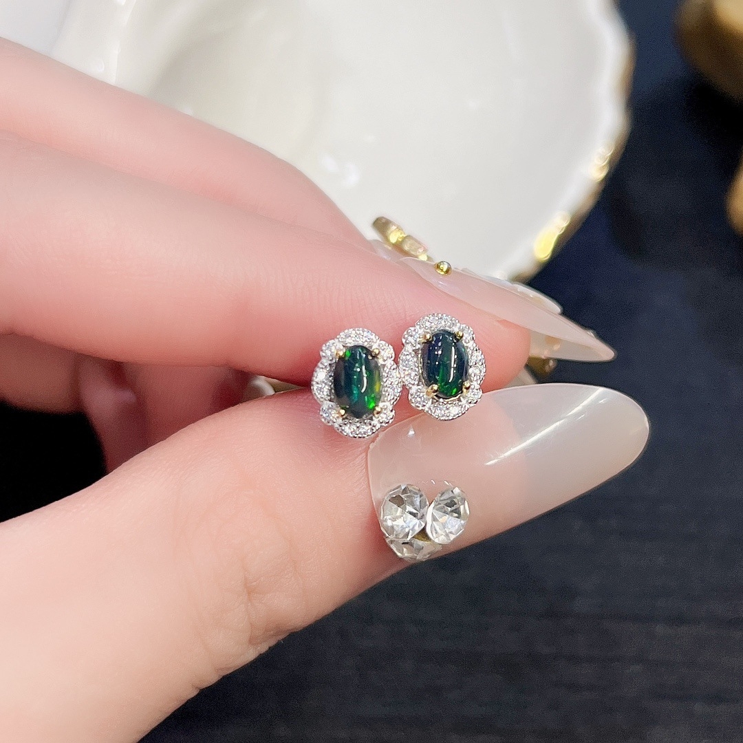 Product information:Type: ear studs Treatment Process: Polishing Color: Silver Black Material: Black Opal Style: Korean style