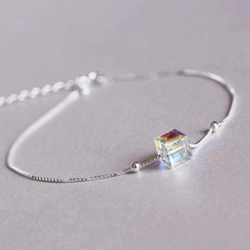 925 sterling silver bracelet aurora sugar cubes women's Japanese and Korean simple crystal anklet temperament wild sweet