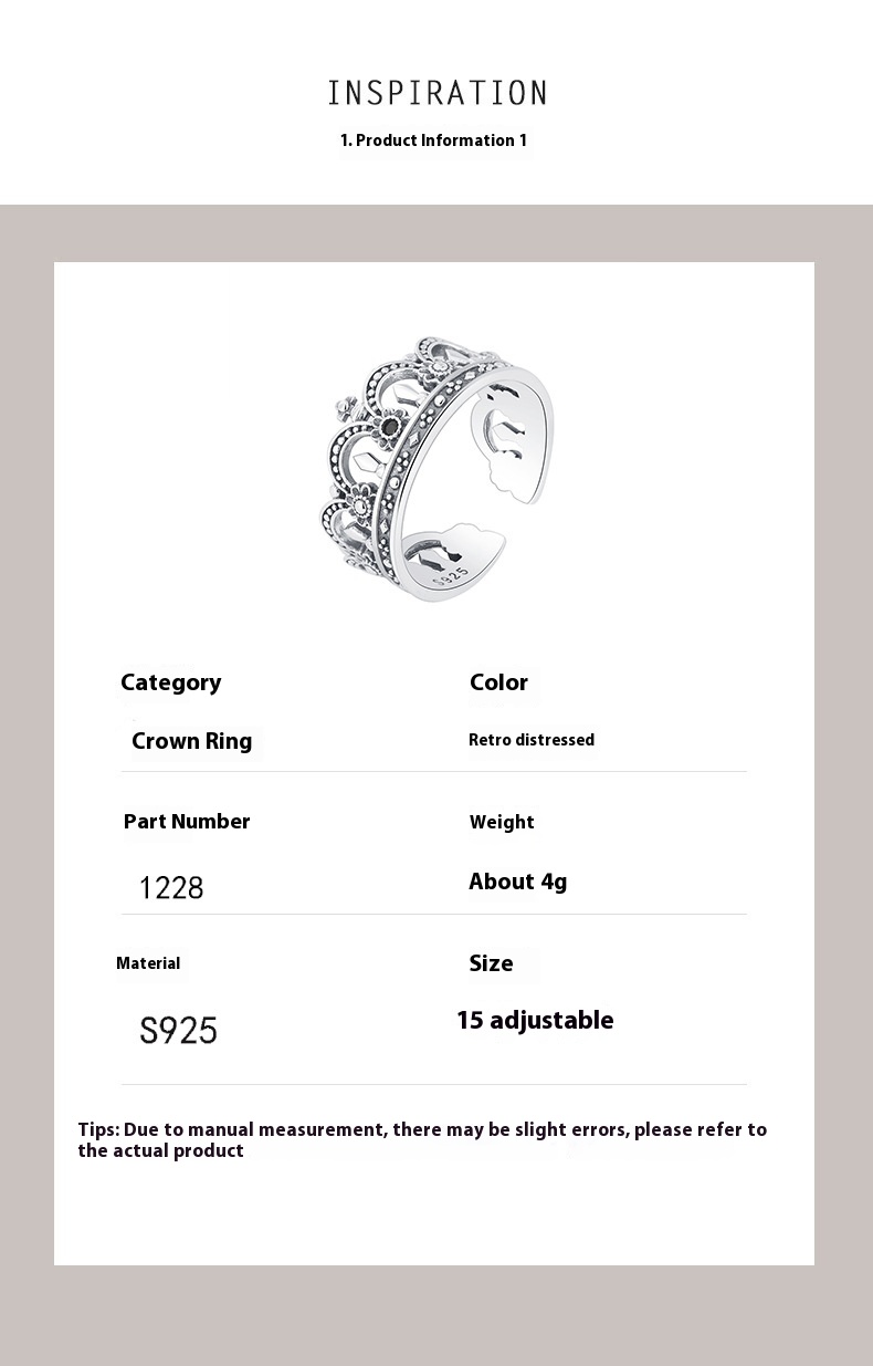 Product information:Type: Ring, ringColor: KDP1228Style: UnisexMaterial: 925 silverShape: Crown
