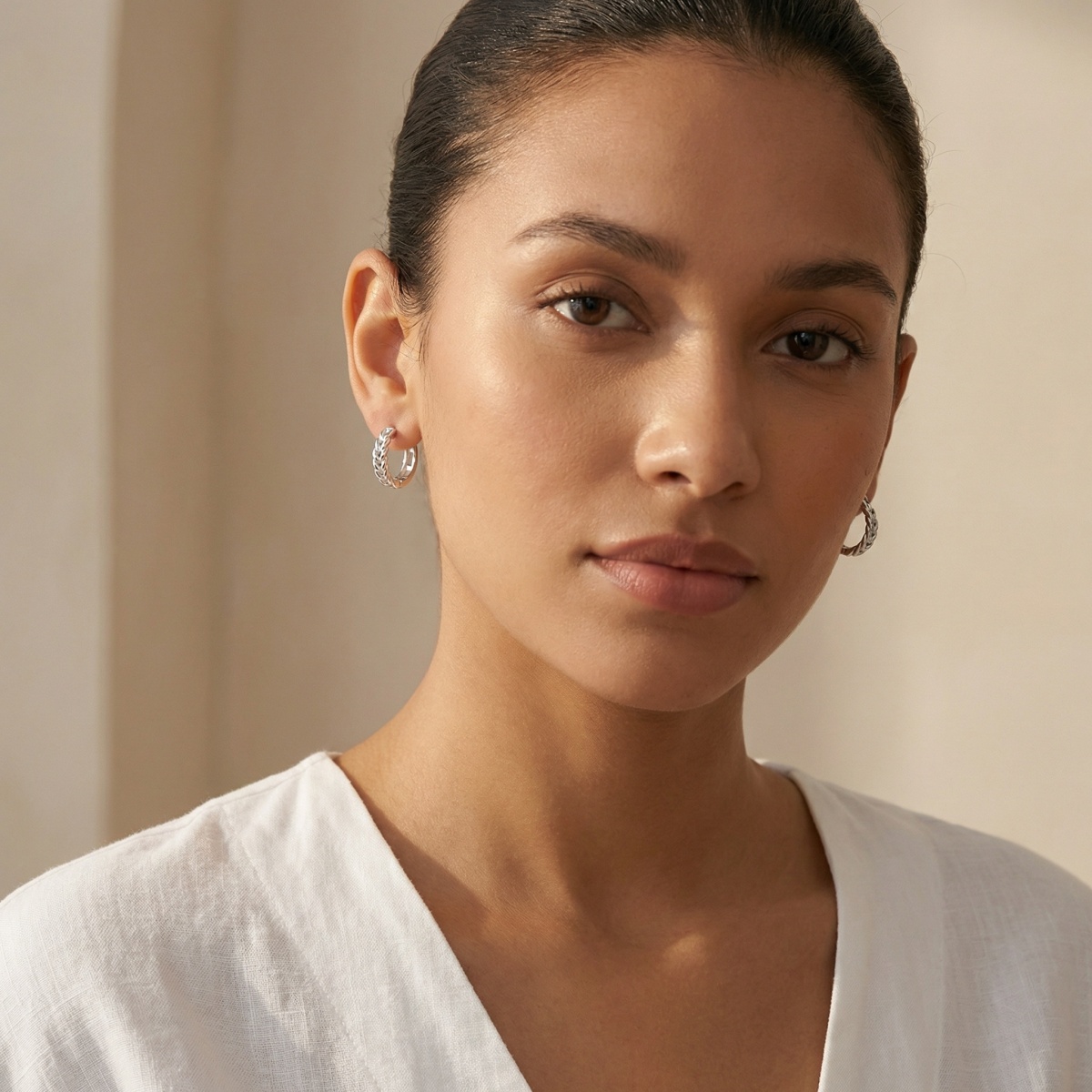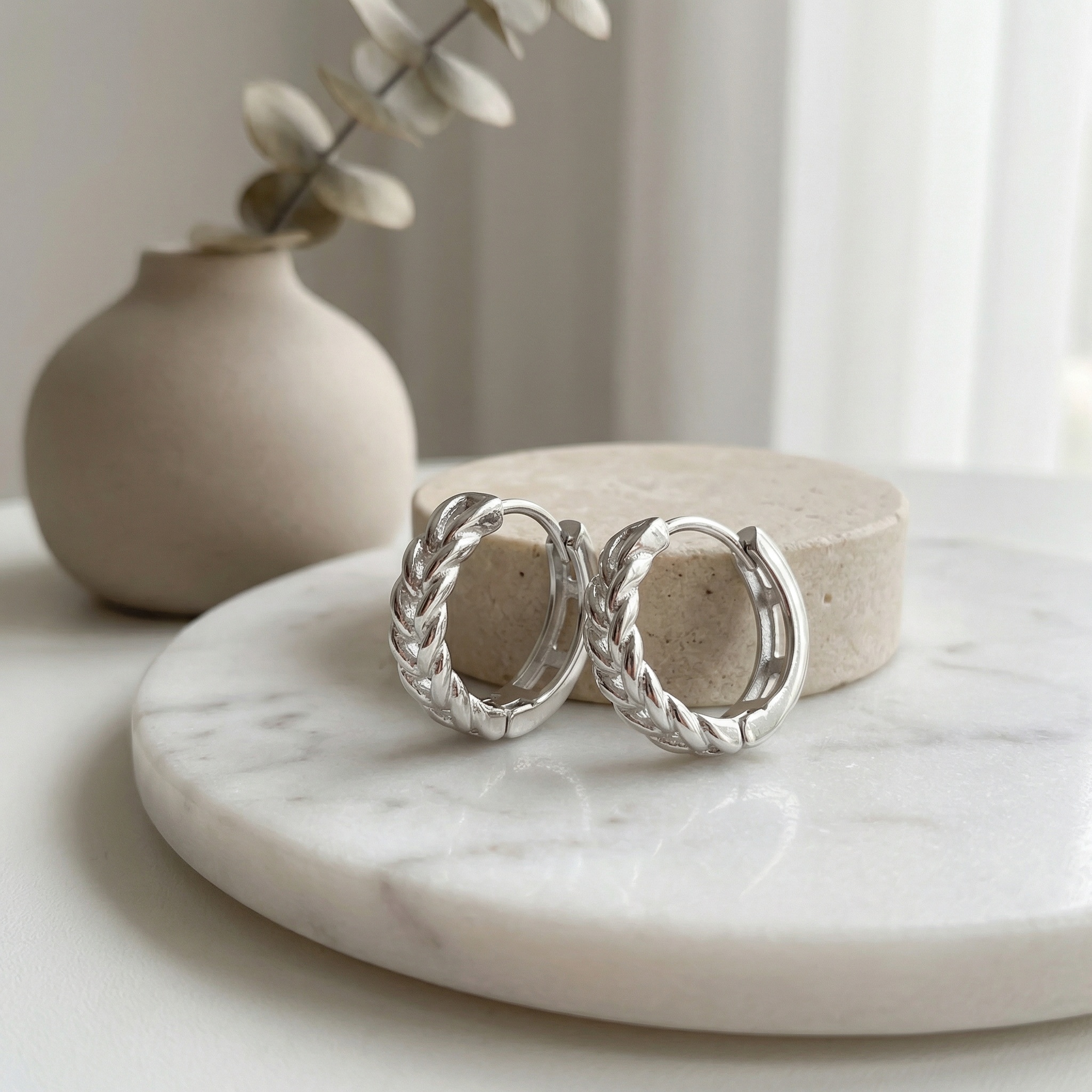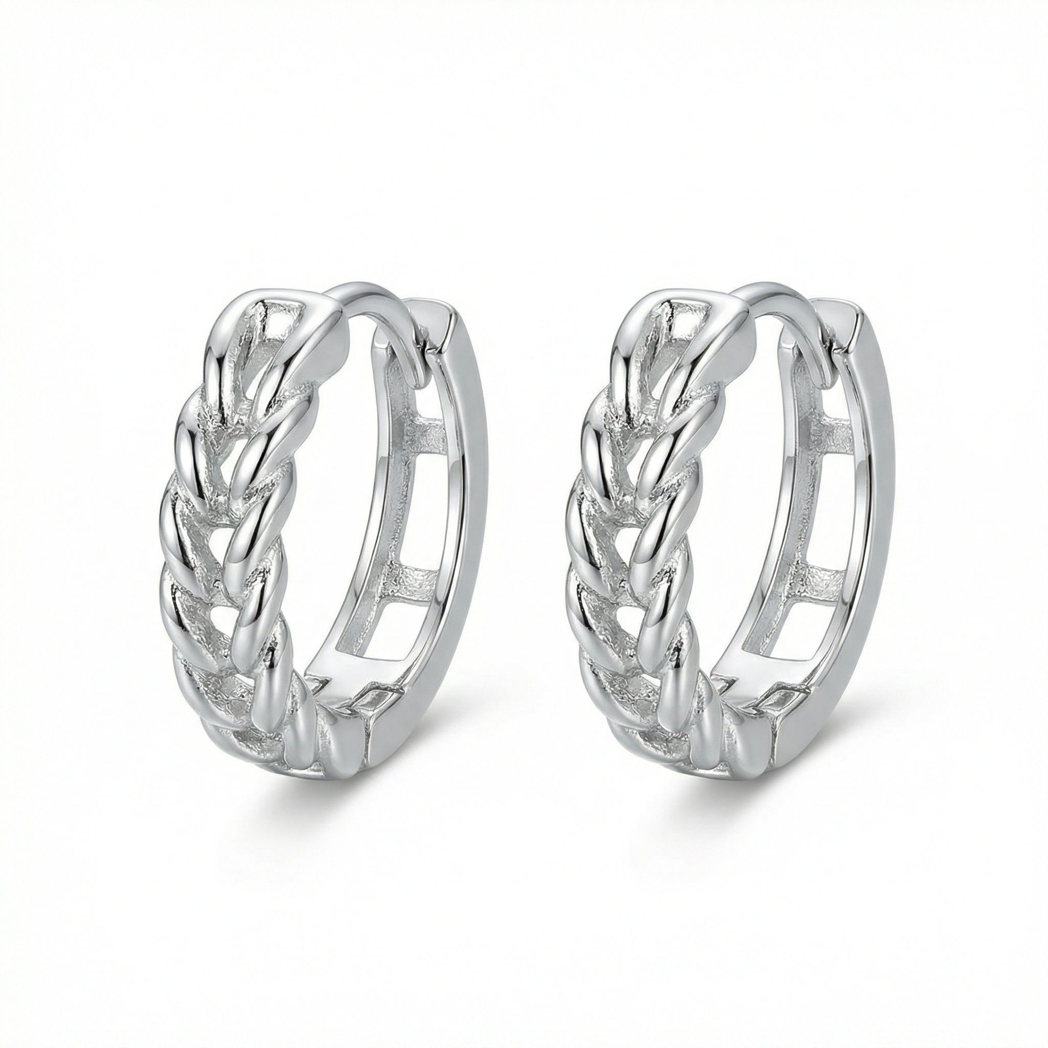 925 Sterling Silver Elegant Braided Sterling Silver Huggie Hoop Earrings for Women