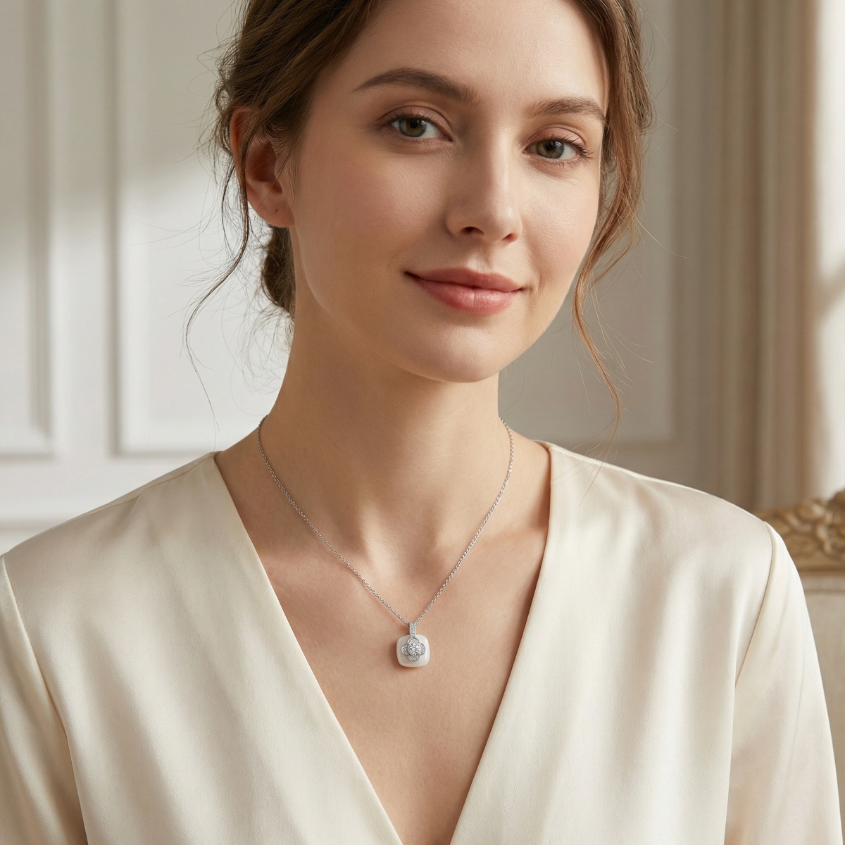 【Delivery Includes】 1 x 925 Silver Flower Square Diamond Pendant Necklace 1 x Elegant Jewelry Gift Box 1 x Cleaning Polishing Cloth 【Care Instructions】 1. Store your necklace in the provided box or a soft pouch to prevent scratching and tarnishing. 2. Avoid exposure to harsh chemicals, perfumes, and excessive moisture. 3. Clean gently with the polishing cloth to maintain brilliant shine and luster. 4. Remove the necklace during vigorous activity or sleep to protect the diamond and gold. | Brand: jewelryodm
