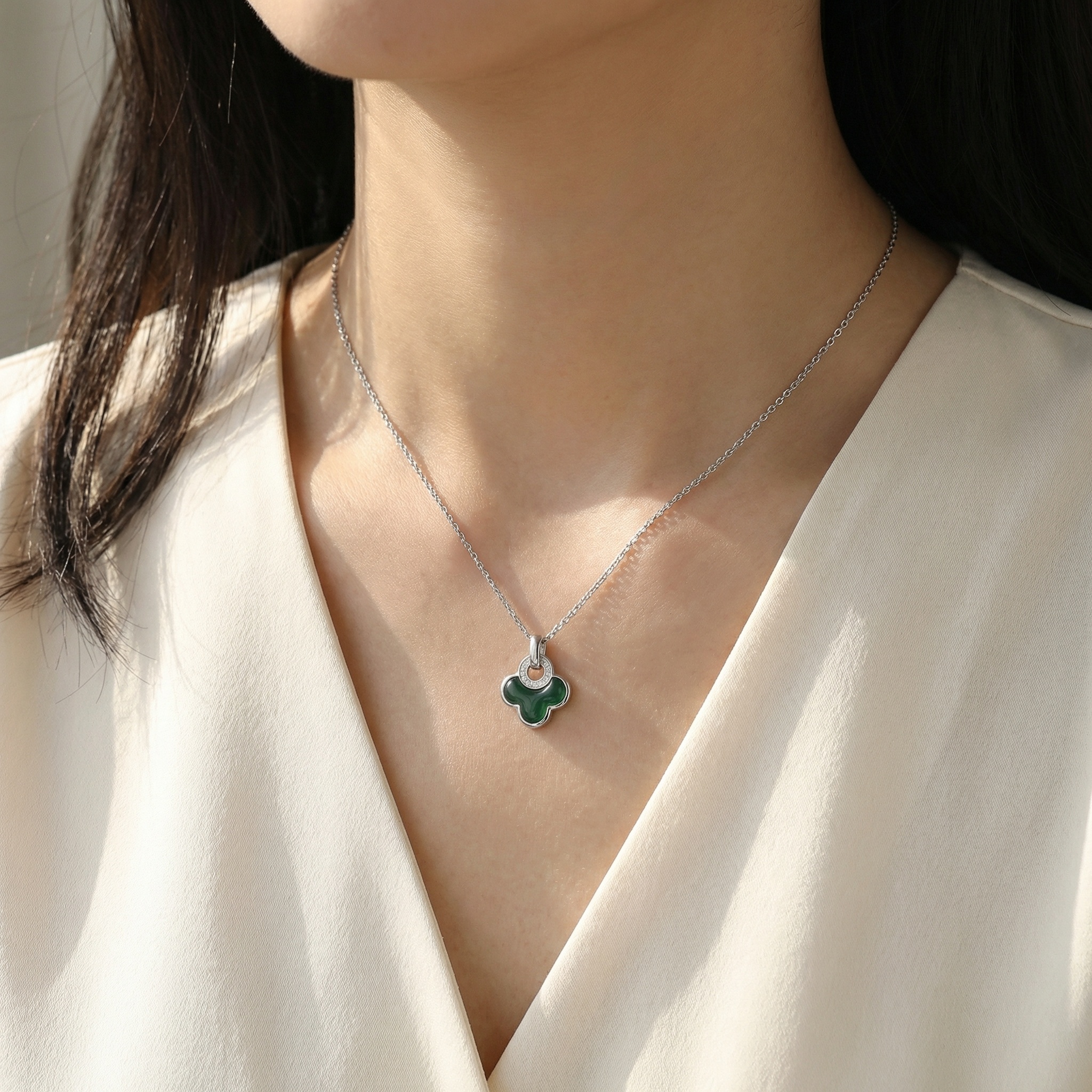 【Delivery Includes】 1 x 925 Silver Malachite Clover Necklace with Diamond Halo 1 x Luxury Gift Box 1 x Jewelry Cleaning Cloth 【Care Instructions】 1. Wipe the necklace with a soft, dry cloth after each use before storing. 2. Store in a sealed jewelry box or pouch to prevent exposure to humidity and air. 3. Avoid contact with chemicals, perfumes, and water to maintain the brilliance of both gemstones and gold. 4. Remove the necklace before bathing, swimming, or engaging in strenuous activity to prevent damage. 5. For deeper cleaning, consult a professional jeweler experienced with gold and malachite jewelry. | Brand: jewelryodm