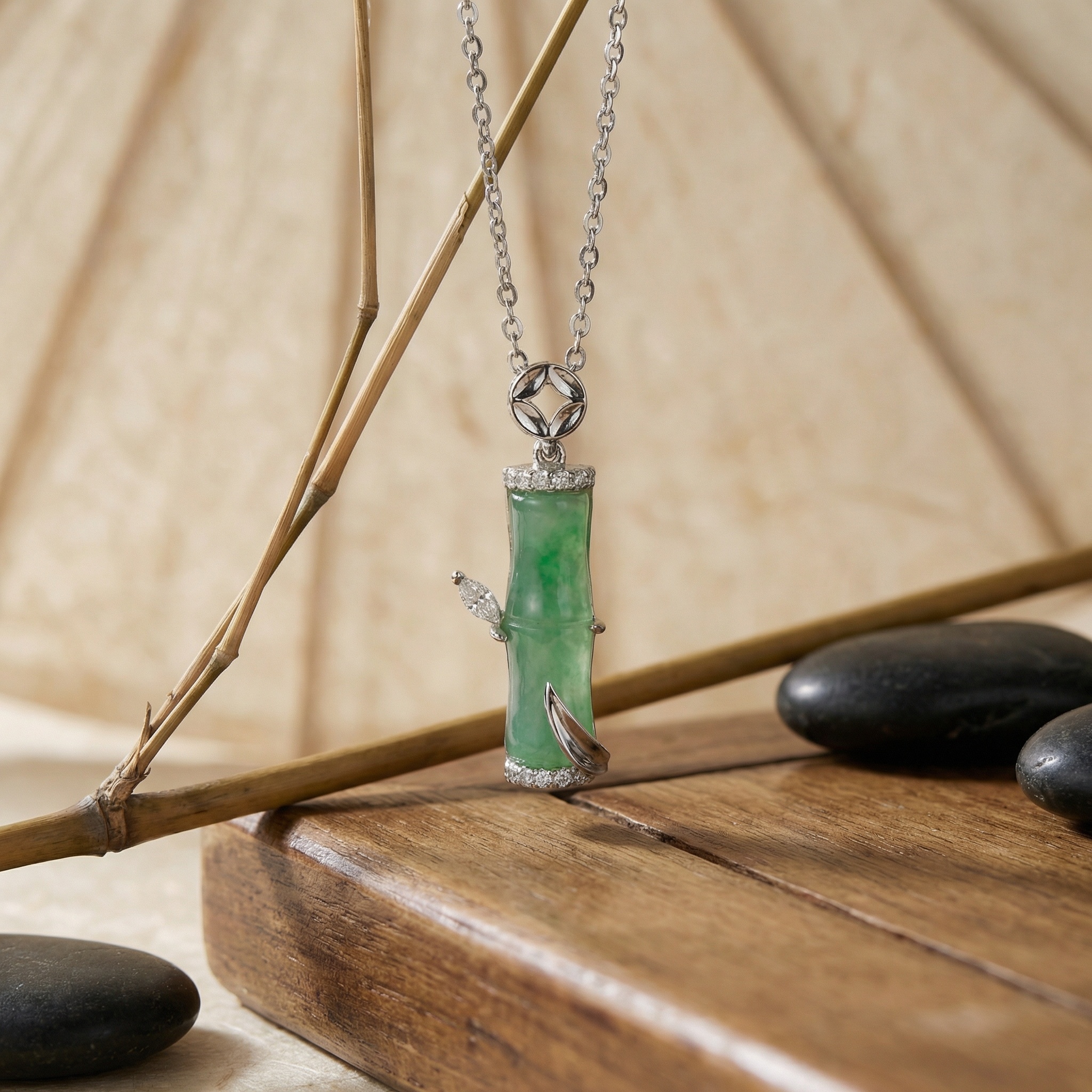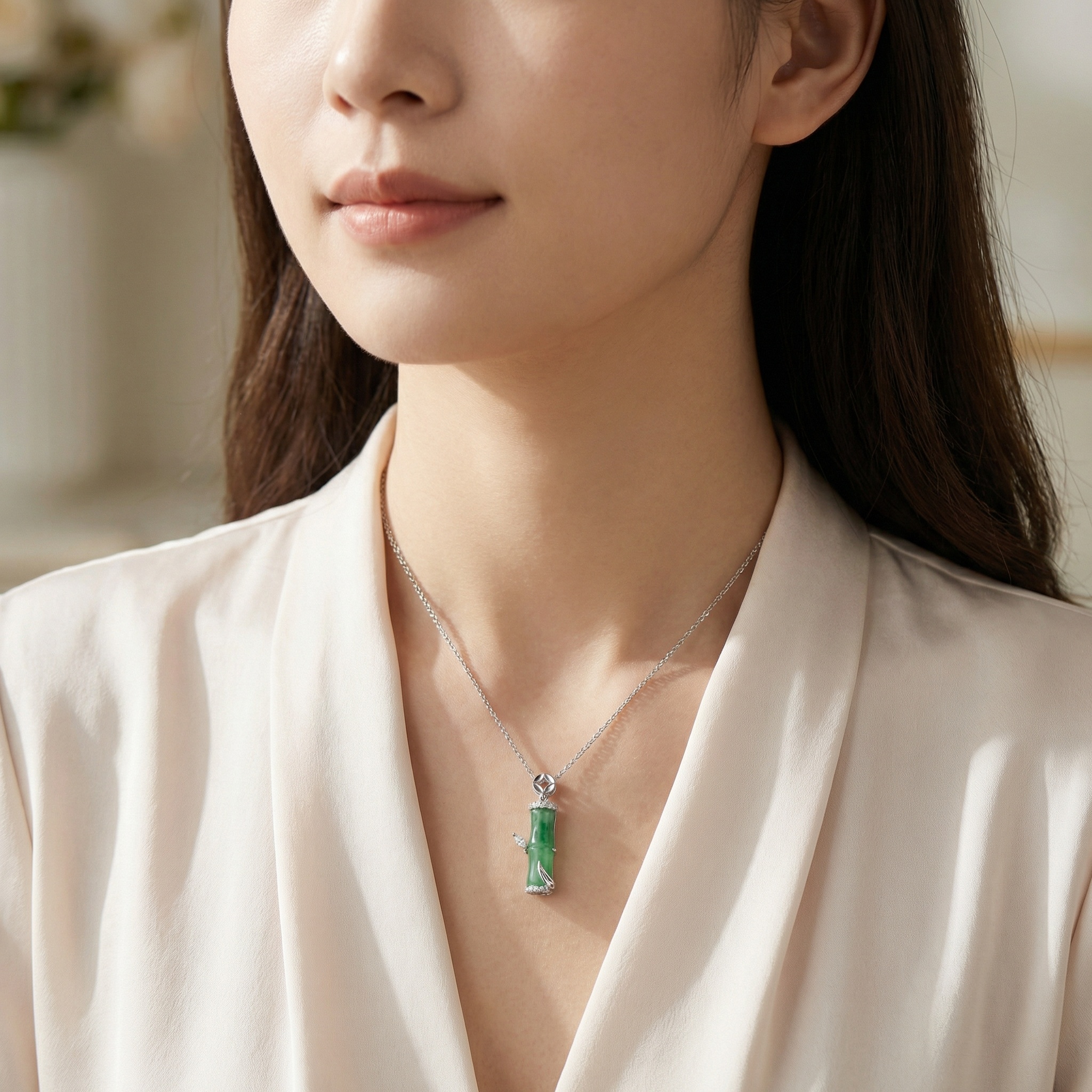 【Delivery Includes】 1 x Bamboo Jade and Diamond Necklace 1 x Luxury Gift Box 1 x Jewelry Cleaning Cloth 【Care Instructions】 1. Store your necklace in a dry, cool place, away from direct sunlight to preserve its luster and brilliance. 2. Use the provided jewelry cloth to gently clean the necklace after each use. 3. Avoid contact with chemicals, perfumes, and water to maintain gemstone and metal integrity. 4. Remove before strenuous activities to prevent damage or accidental loss. | Brand: jewelryodm