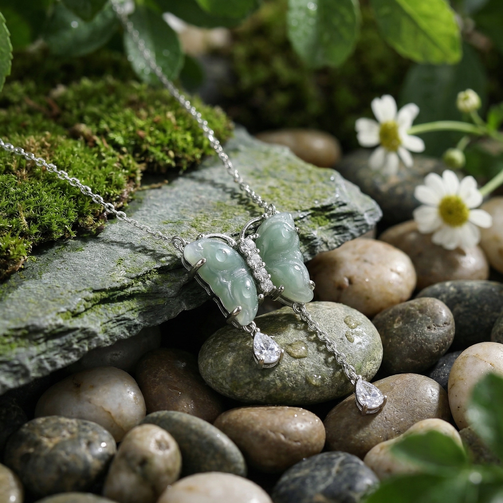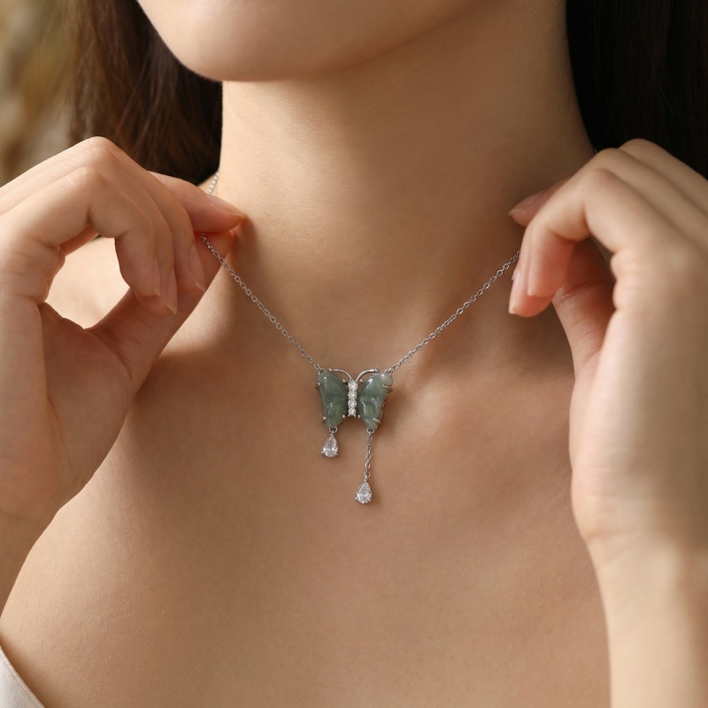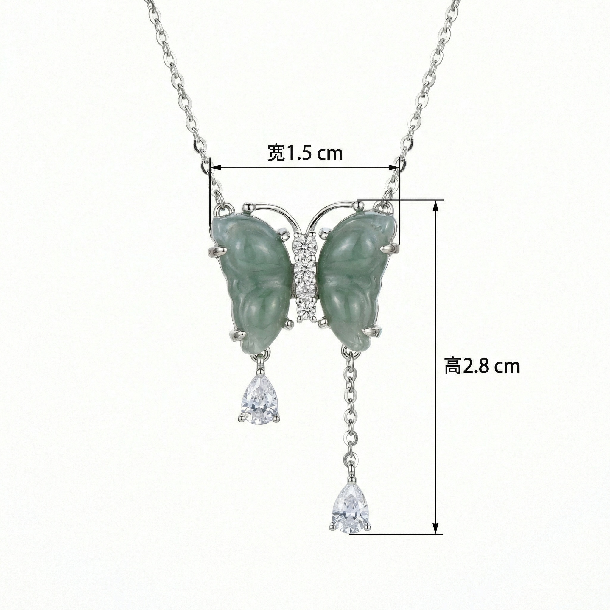 【Delivery Includes】 1 x Butterfly Jade and Diamond Necklace 1 x Exquisite Gift Box 1 x Jewelry Polishing Cloth 【Care Instructions】 1. Remove the necklace before bathing, swimming, or heavy exercise to prevent damage. 2. Gently clean with the included polishing cloth after each use to maintain shine and remove residues. 3. Store in the provided gift box or a soft pouch to avoid scratches or tangling with other jewelry. 4. Avoid contact with harsh chemicals, perfumes, or lotions to preserve gemstone and metal brilliance. | Brand: jewelryodm