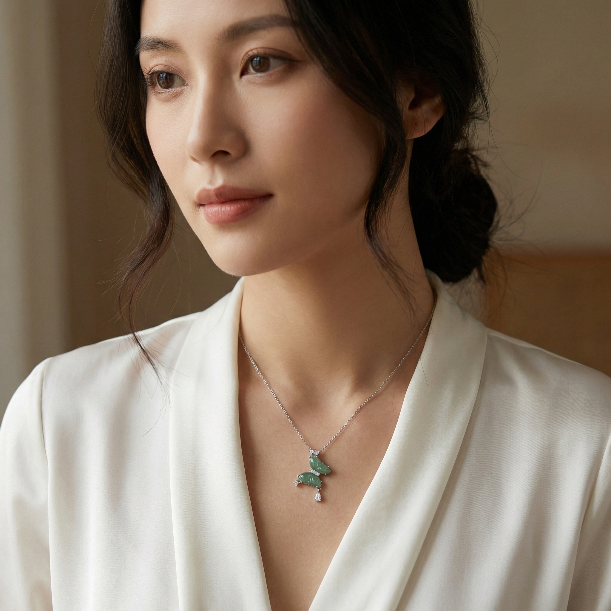 【Delivery Includes】 1 x Pea Pod Jade and Diamond Necklace 1 x Gift Box 1 x Cleaning Cloth 【Care Instructions】 1. Store your necklace in a soft pouch or box when not in use to prevent scratches and damage. 2. Avoid exposure to harsh chemicals, perfumes, and prolonged sunlight which can affect the luster of both jade and diamonds. 3. Gently clean with a soft, damp cloth and use a dedicated jewelry cleaner for the gold part, avoiding abrasives. 4. Remove the necklace before swimming, showering, or engaging in sports activities. | Brand: jewelryodm