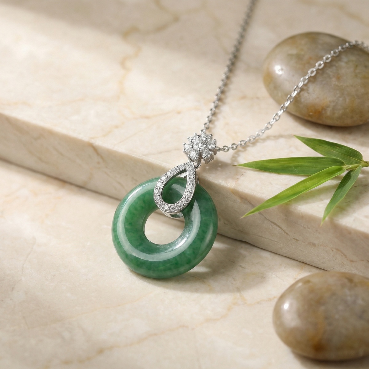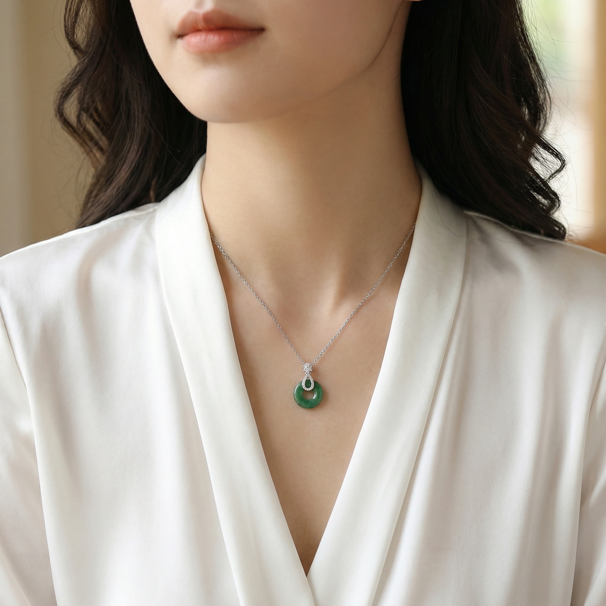 【Delivery Includes】 1 x Necklace with Jade and Diamond Pendant 1 x Elegant Gift Box 1 x Jewelry Care Cloth 【Care Instructions】 1. Gently wipe the necklace with the provided jewelry cloth after each use to keep it shining. 2. Store the necklace in the gift box or a sealed container away from sunlight when not in use. 3. Avoid contact with chemicals such as perfumes, lotions, and cleaning agents to protect the gold and gemstones. 4. Remove the necklace before swimming, bathing, or strenuous activities to prevent damage. 5. Have your jewelry professionally cleaned periodically for lasting brilliance. | Brand: jewelryodm