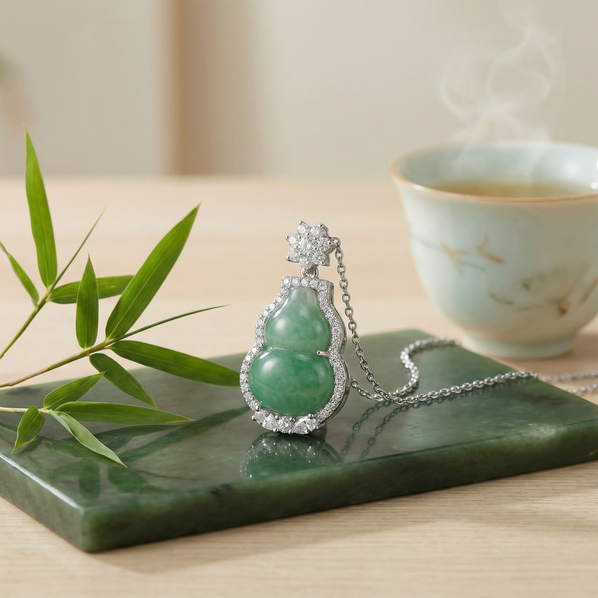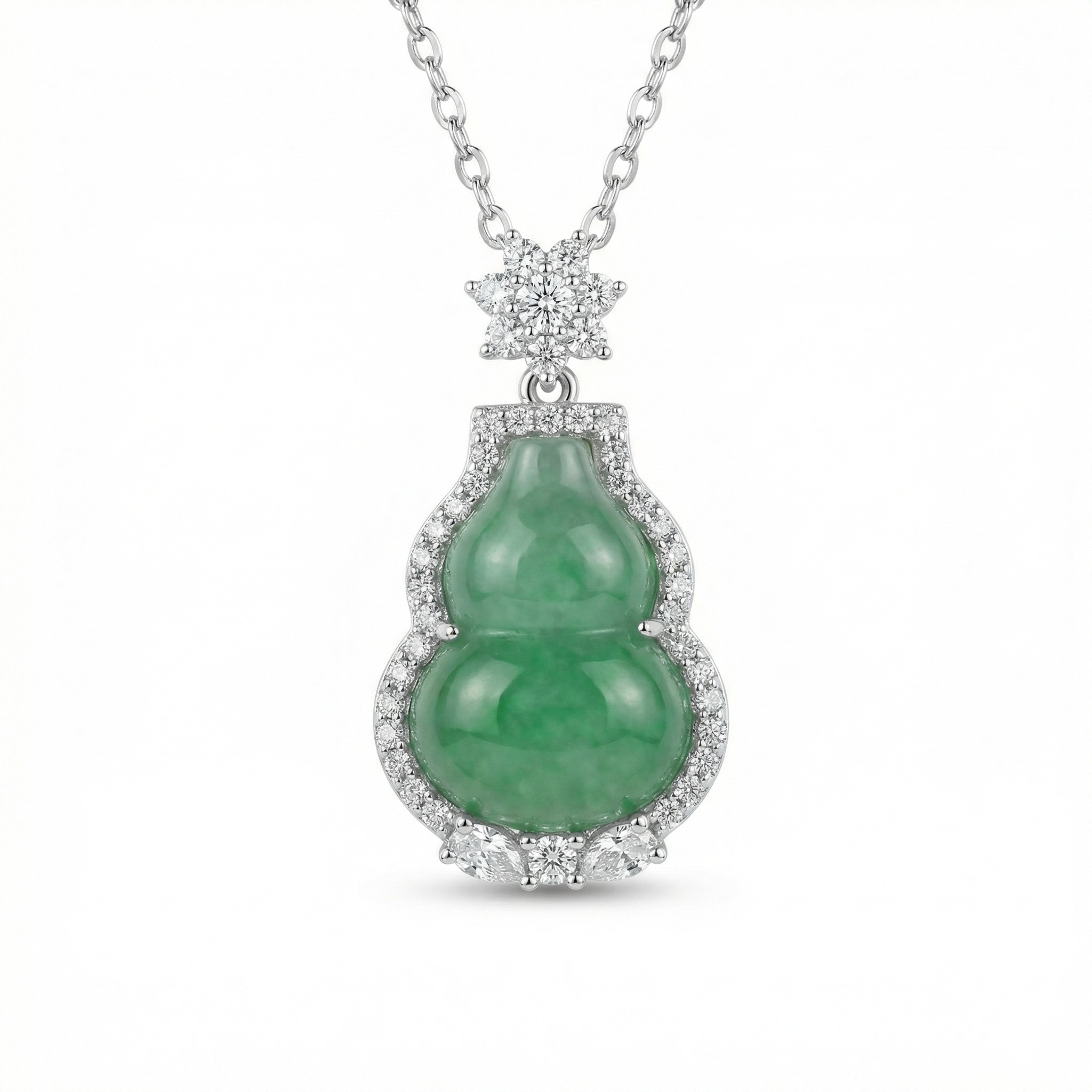 【Delivery Includes】 1 x Jade Gourd Pendant Necklace with Diamond Halo & Star Accent 1 x Elegant Gift Box 1 x Jewelry Cleaning Cloth 【Care Instructions】 1. Store your necklace in the provided jewelry box or a separate soft pouch to avoid scratches. 2. Use the included cleaning cloth to gently wipe the necklace after each use and keep it away from corrosive chemicals. 3. Remove jewelry before bathing or swimming to prevent damage to metal and gemstones. 4. Avoid direct contact with perfume, hair spray, or lotion to maintain the necklace's brilliance and luster. 5. For best care, have your jewelry professionally inspected and cleaned periodically. | Brand: jewelryodm