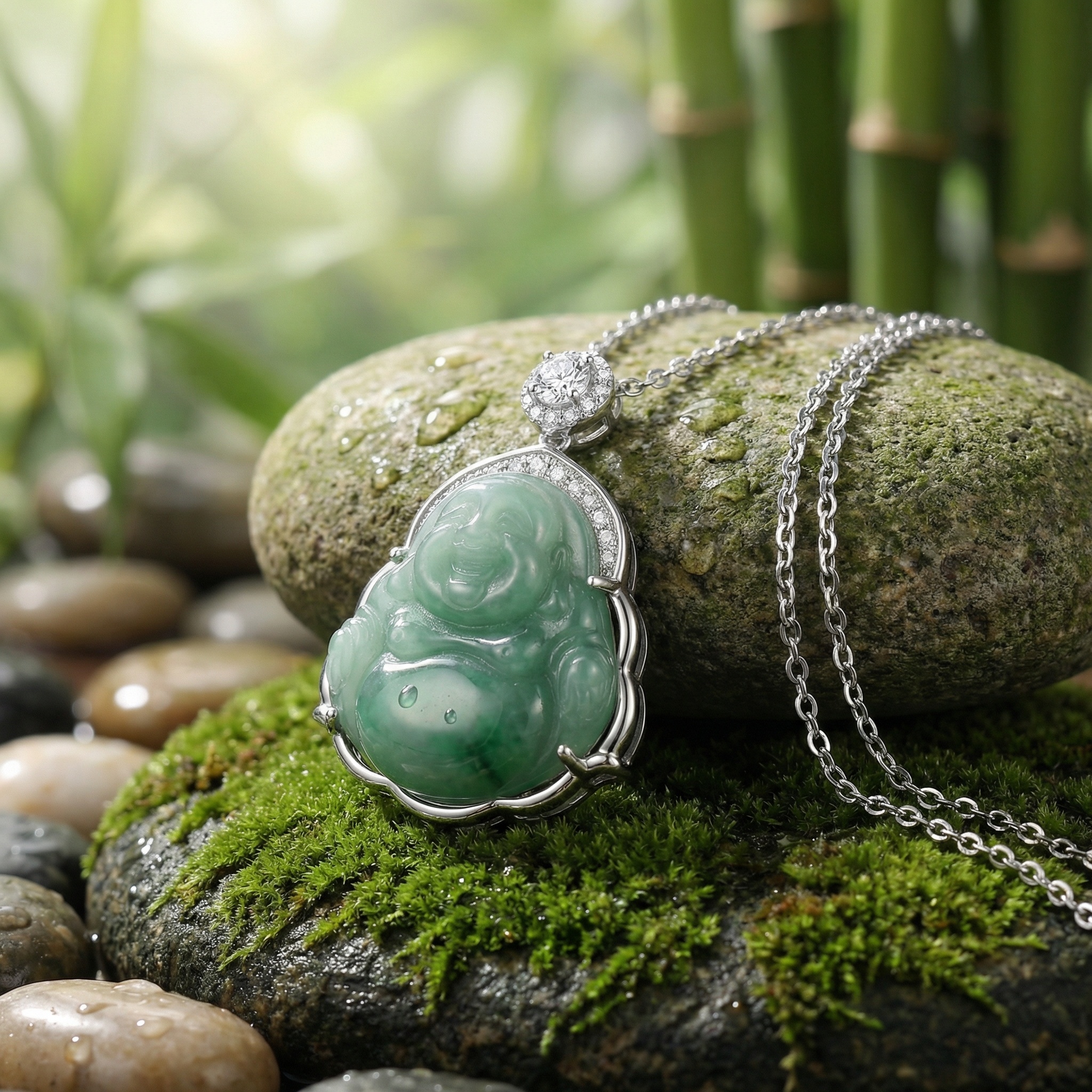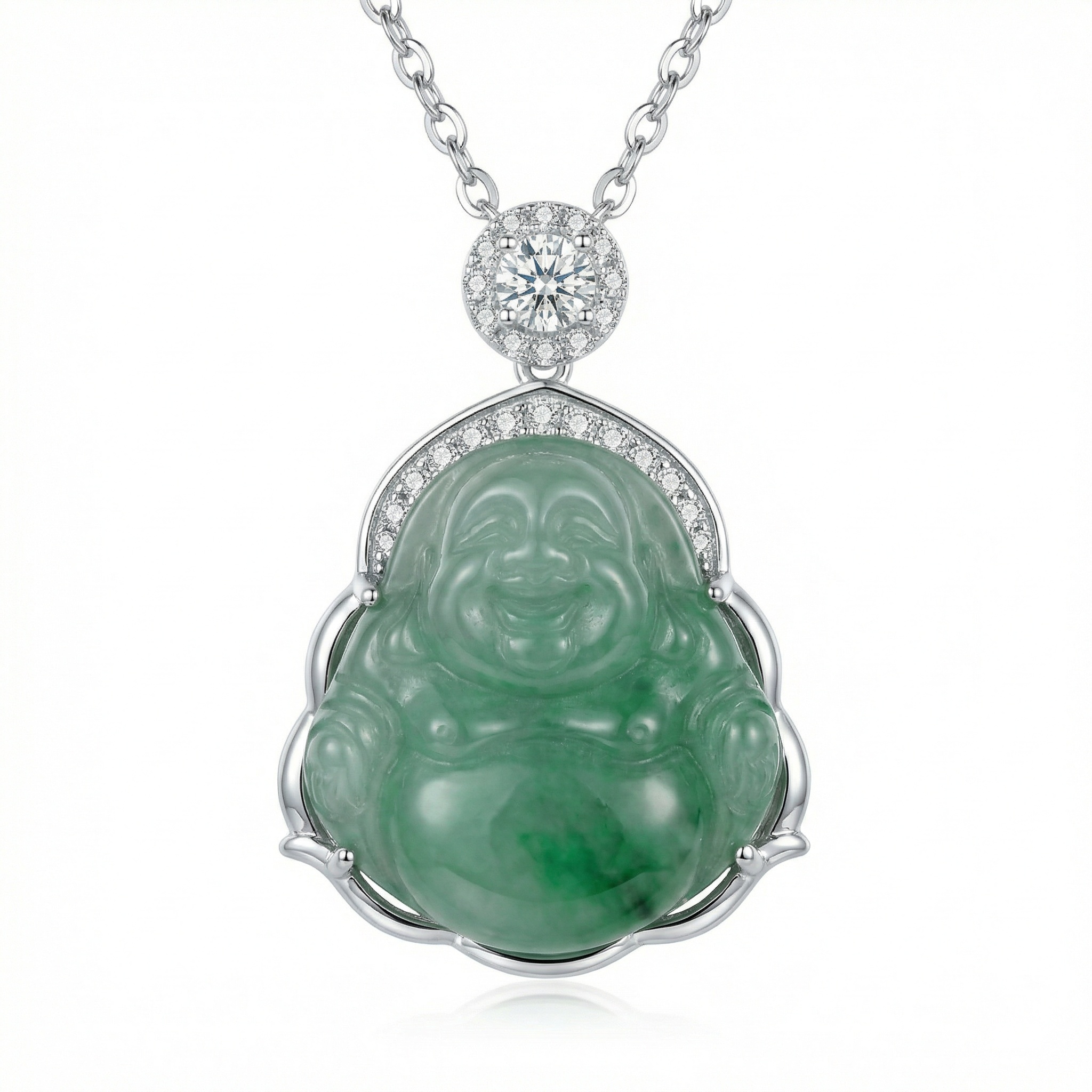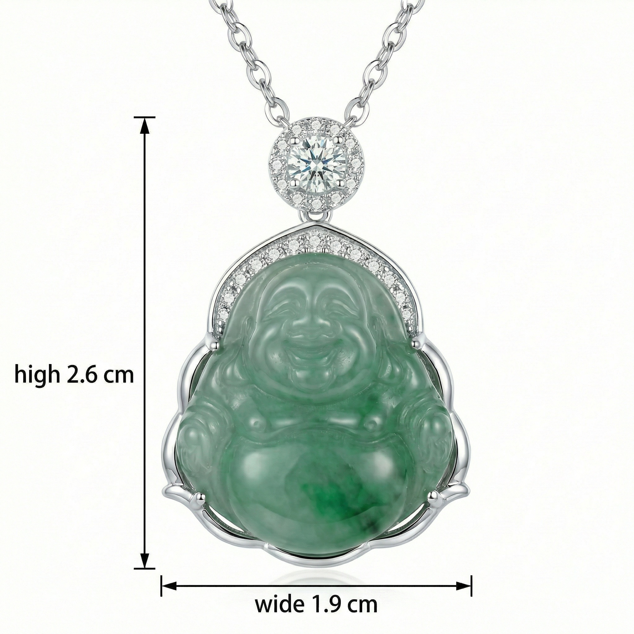 【Delivery Includes】 1 x Buddha Jade and Diamond Necklace 1 x Premium Gift Box 1 x Soft Cleaning Cloth 【Care Instructions】 1. Store the necklace in a cool, dry place and keep it sealed when not in use to prevent tarnish. 2. Avoid contact with harsh chemicals, perfumes, and cosmetics that may damage the metal or stones. 3. Gently clean the necklace with the provided soft cloth after each wear to maintain its shine. 4. Remove the necklace during swimming, showering, or exercising to preserve its appearance. 5. Handle with care to prevent scratching the jade or diamond and to maintain the jewelry's elegance. | Brand: jewelryodm