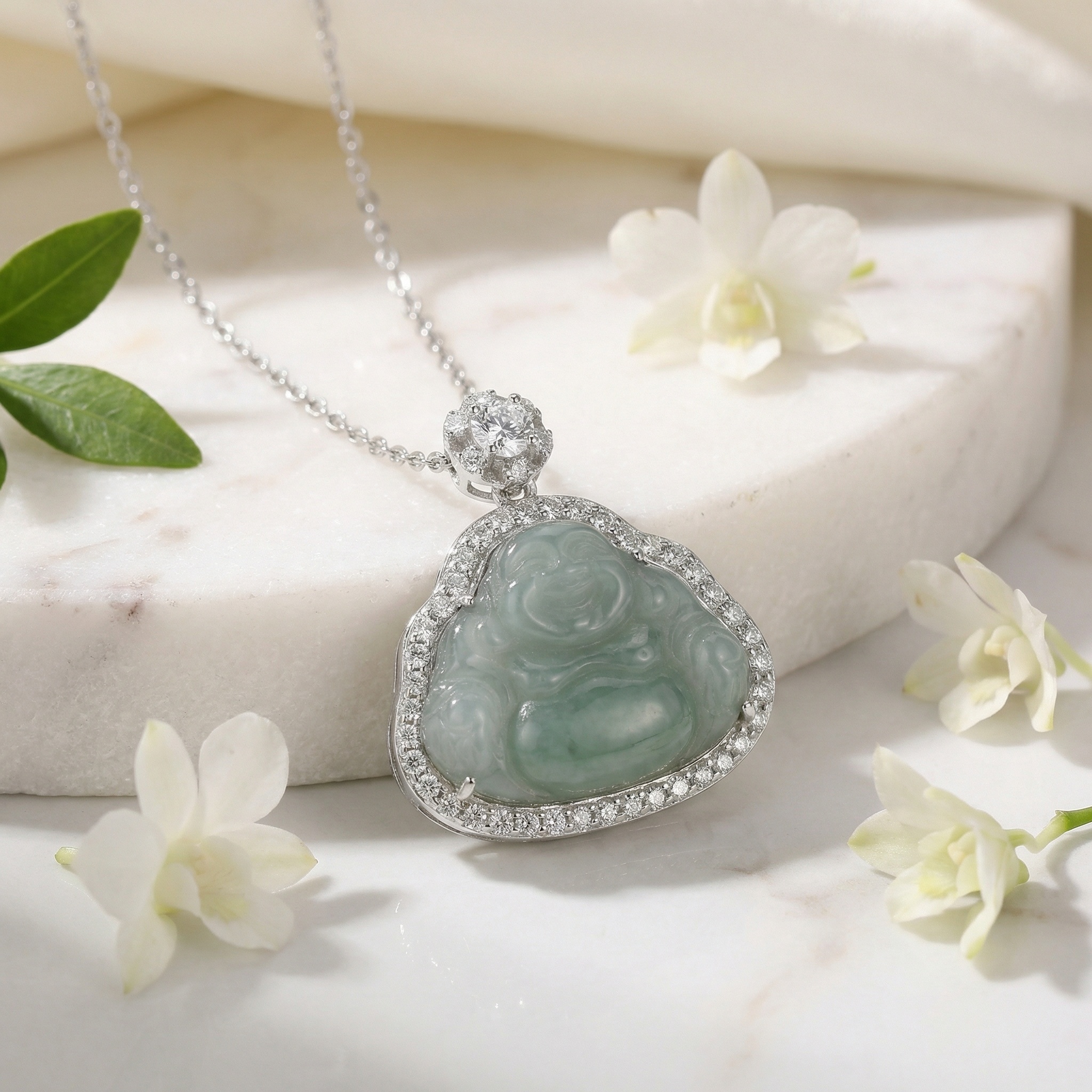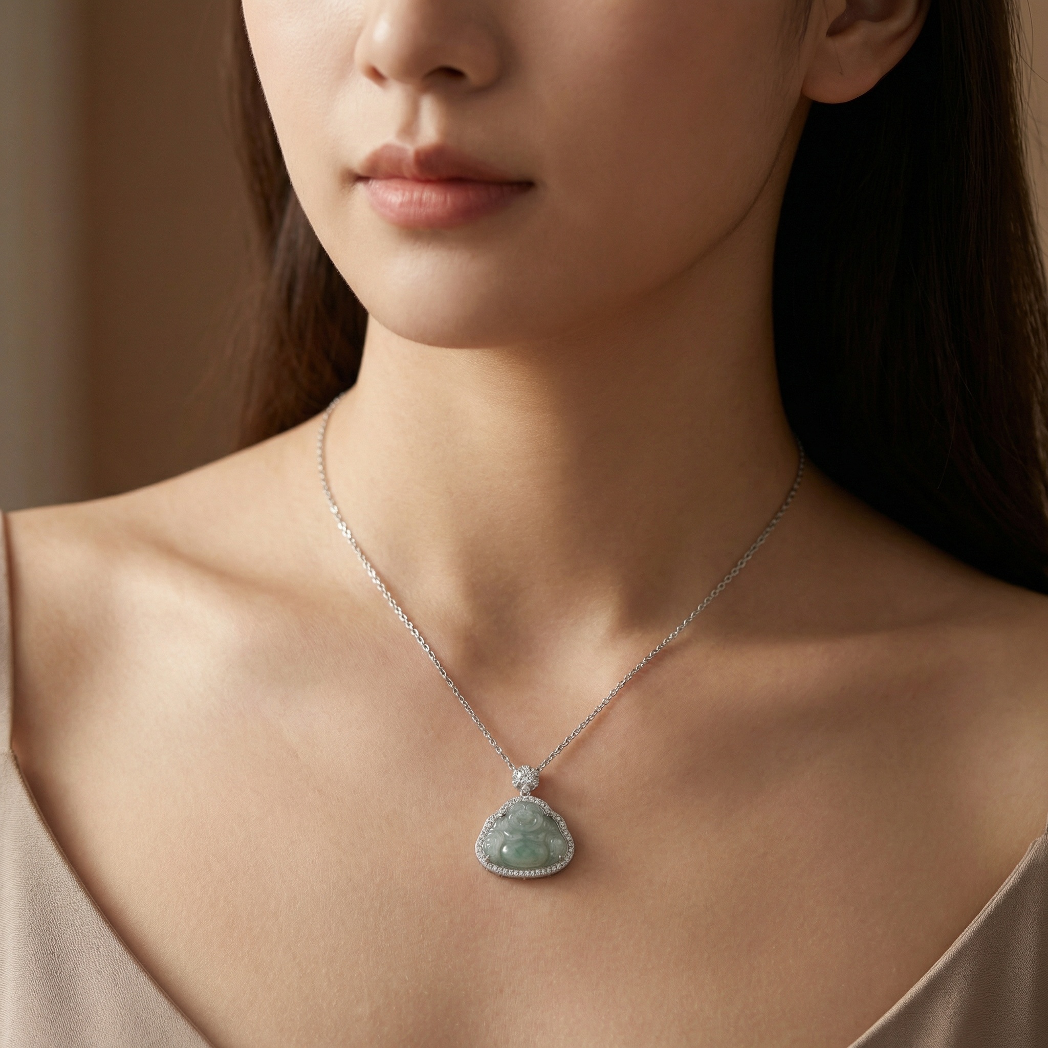 【Delivery Includes】 1 x Buddha Jade Necklace with Diamond Halo 1 x Exquisite Gift Box 1 x Cleaning Cloth 【Care Instructions】 1. Store your necklace in a dry, enclosed box or soft pouch to avoid scratches and tarnish when not in use. 2. Avoid contact with harsh chemicals, perfumes, and lotions to maintain gemstone brilliance and gold shine. 3. Clean gently with the provided cloth—do not use abrasive cleaners or brushes. 4. Remove jewelry before bathing, swimming, or strenuous activities to prevent potential damage. | Brand: jewelryodm