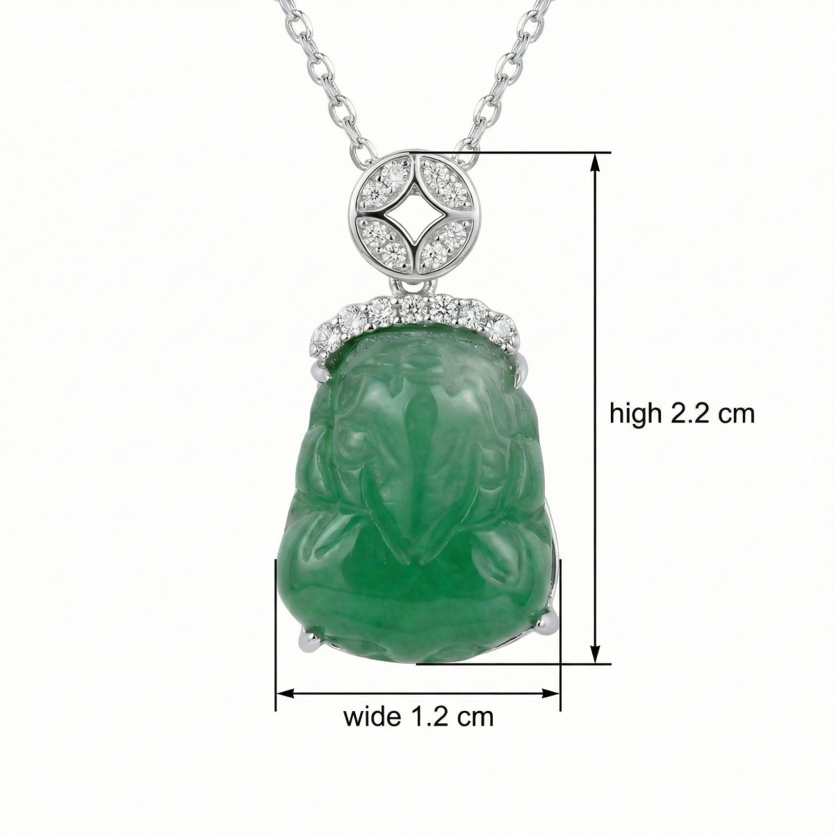【Delivery Includes】 1 x Necklace featuring Jade Carving Buddha Pendant with Diamond Halo 1 x Premium Gift Box 1 x Jewelry Cleaning Cloth 【Care Instructions】 1. Store your necklace in a soft pouch or box to prevent scratches and accidental damage. 2. Keep away from harsh chemicals, perfumes, and water to preserve the luster of both the jade and diamonds. 3. Clean gently with a soft, lint-free cloth after use to maintain brilliance and clarity. 4. Avoid dropping or knocking the pendant as jade and diamonds can be sensitive to impact. 5. Remove jewelry before sleeping or engaging in strenuous activity to ensure longevity. | Brand: jewelryodm