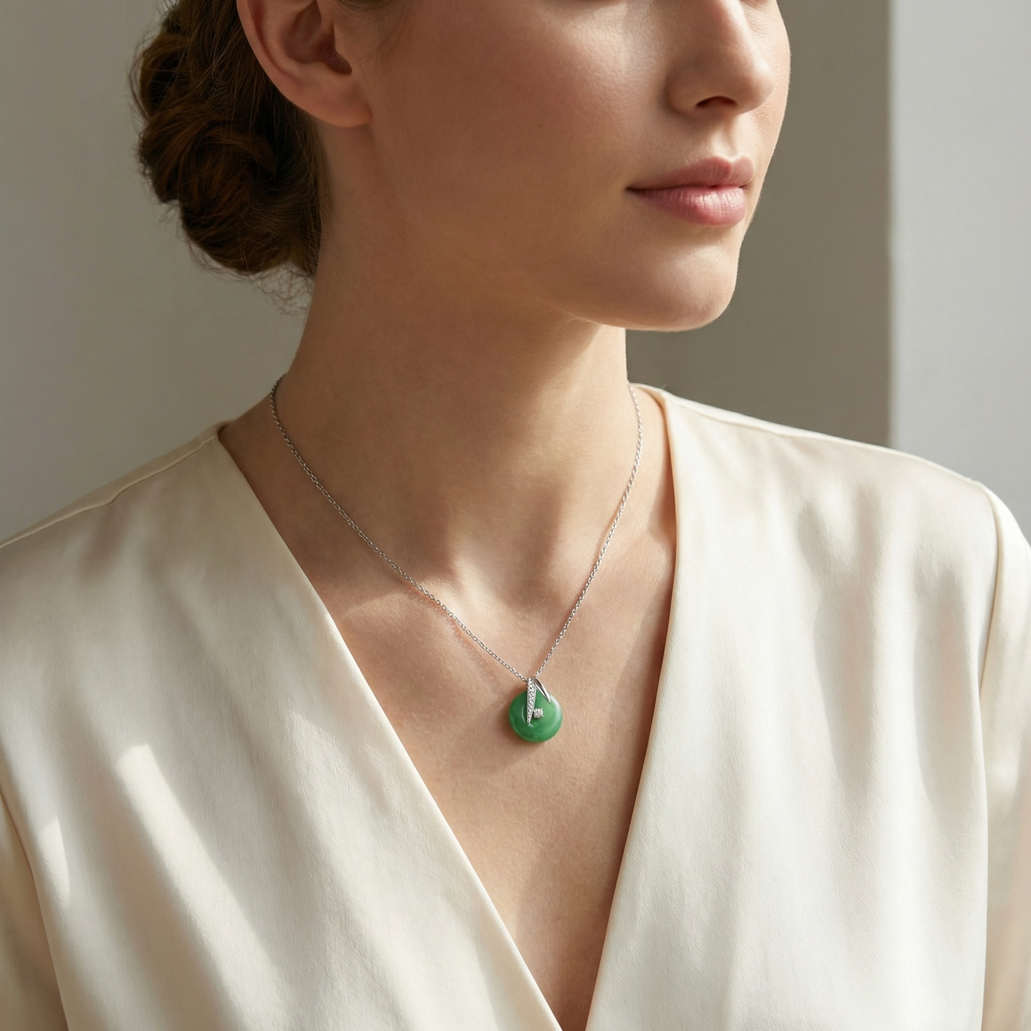 【Delivery Includes】 1 x Circle Jade and Diamond Accent Pendant Necklace 1 x Elegant Gift Box 1 x Jewelry Cleaning Cloth 【Care Instructions】 1. When not wearing your necklace, gently wipe it with the included cloth and store it in the gift box or a soft pouch to avoid scratches and dust. 2. Avoid exposure to harsh chemicals, perfumes, and extreme temperatures to protect the luster of the gold and gemstones. 3. Take off the necklace before swimming, bathing, or exercising to maintain its shine and prevent potential damage. | Brand: jewelryodm