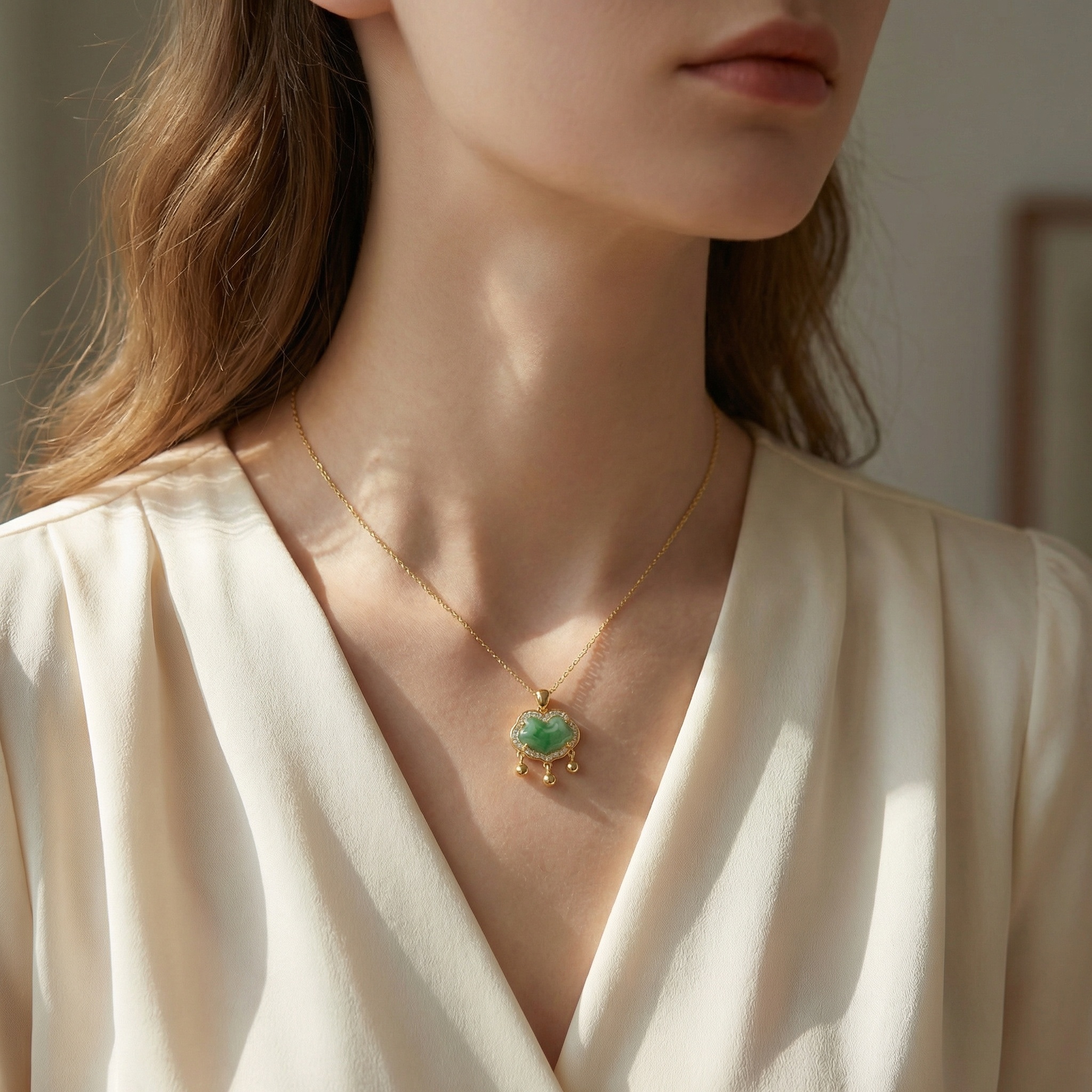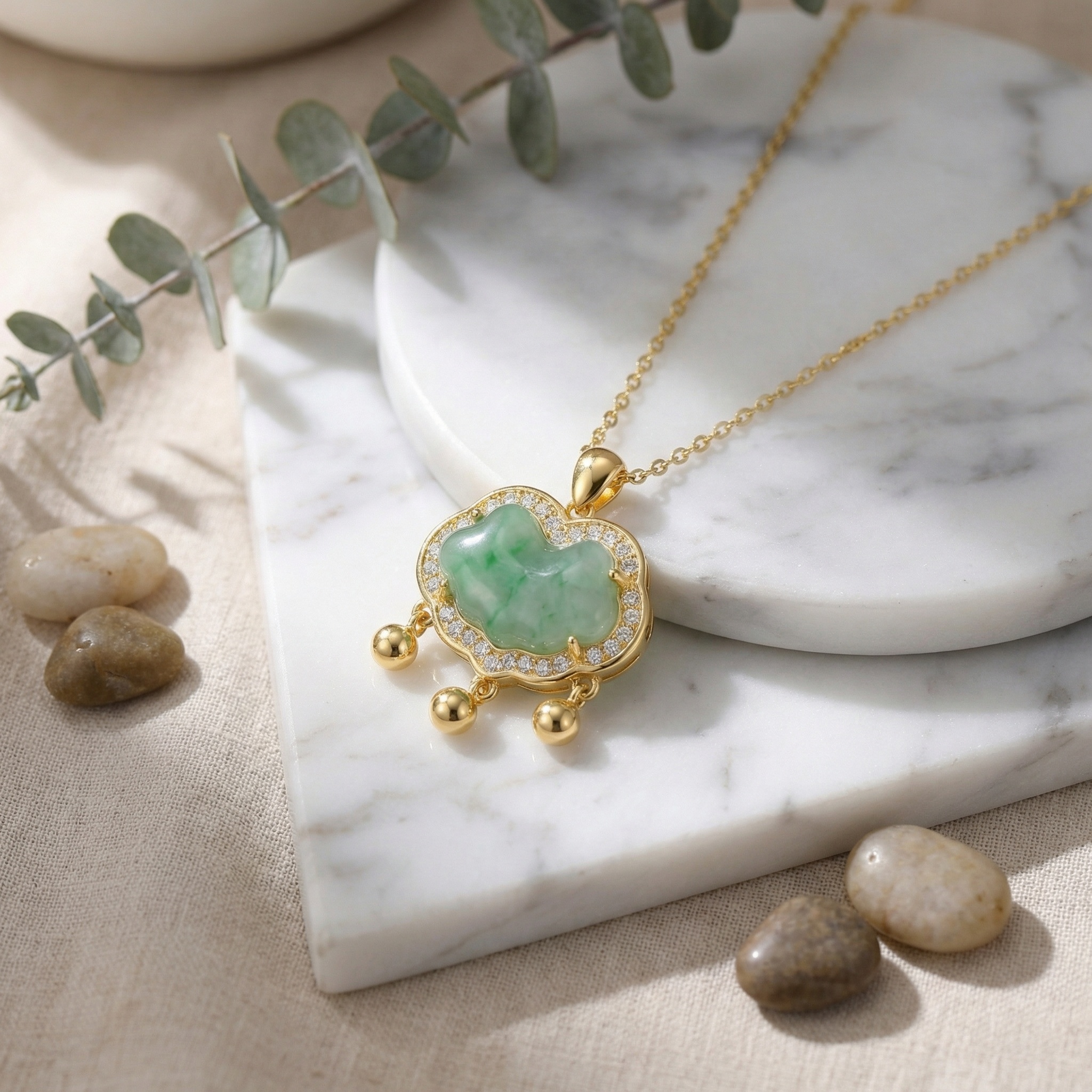 【Delivery Includes】 1 x Heart Jade Necklace with Irregular Jade and Diamond Halo 1 x Gift Box 1 x Cleaning Cloth 【Care Instructions】 1. Store your necklace in a soft pouch or jewelry box to prevent scratches and keep it away from direct sunlight. 2. Wipe gently with the included cleaning cloth after each use to remove oils and dirt. 3. Avoid contact with perfumes, lotions, and household chemicals to preserve both the jade and the diamonds’ luster. 4. Remove the necklace before swimming, bathing, or engaging in strenuous activities. | Brand: jewelryodm
