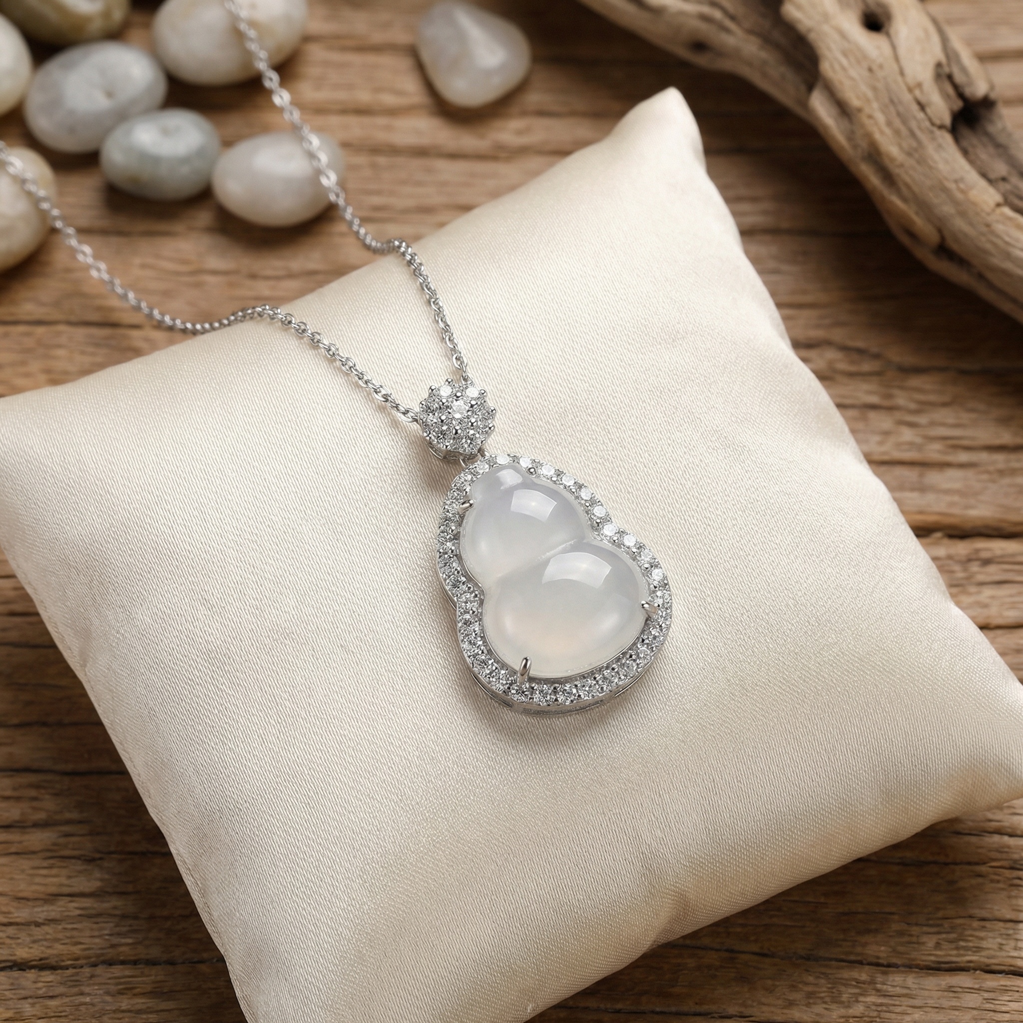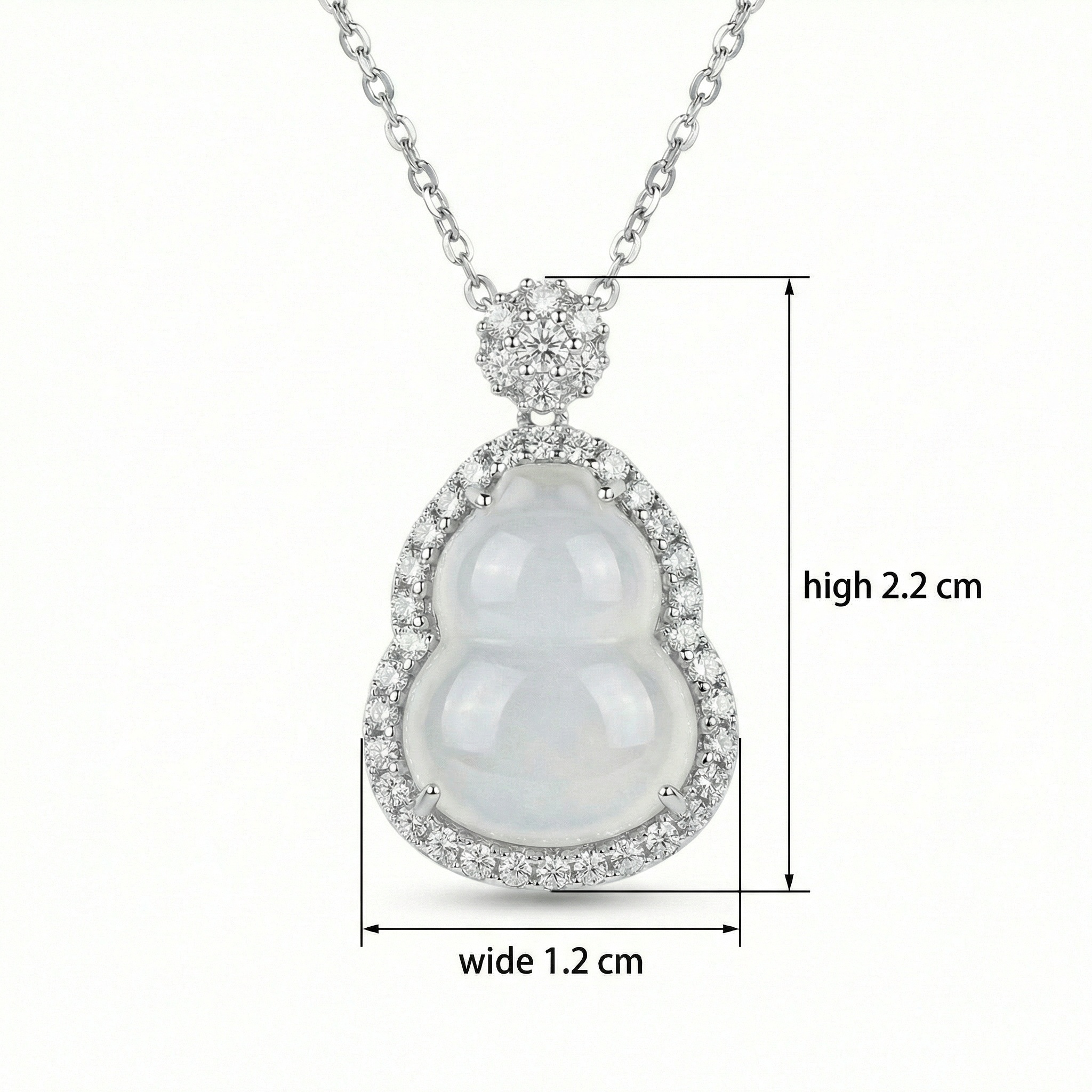 【Delivery Includes】 1 x Gourd Jade & Diamond Pendant Necklace 1 x Premium Gift Box 1 x Jewelry Cleaning Cloth 【Care Instructions】 1. Gently wipe your necklace with the included cloth after each use to keep its shine. 2. Store the necklace in the jewelry box or a sealed pouch when not in use to prevent scratches and exposure to air. 3. Avoid contact with harsh chemicals, perfumes, or prolonged exposure to sunlight. 4. Remove before bathing, swimming, or strenuous activities to maintain gemstone beauty and metal integrity. | Brand: jewelryodm