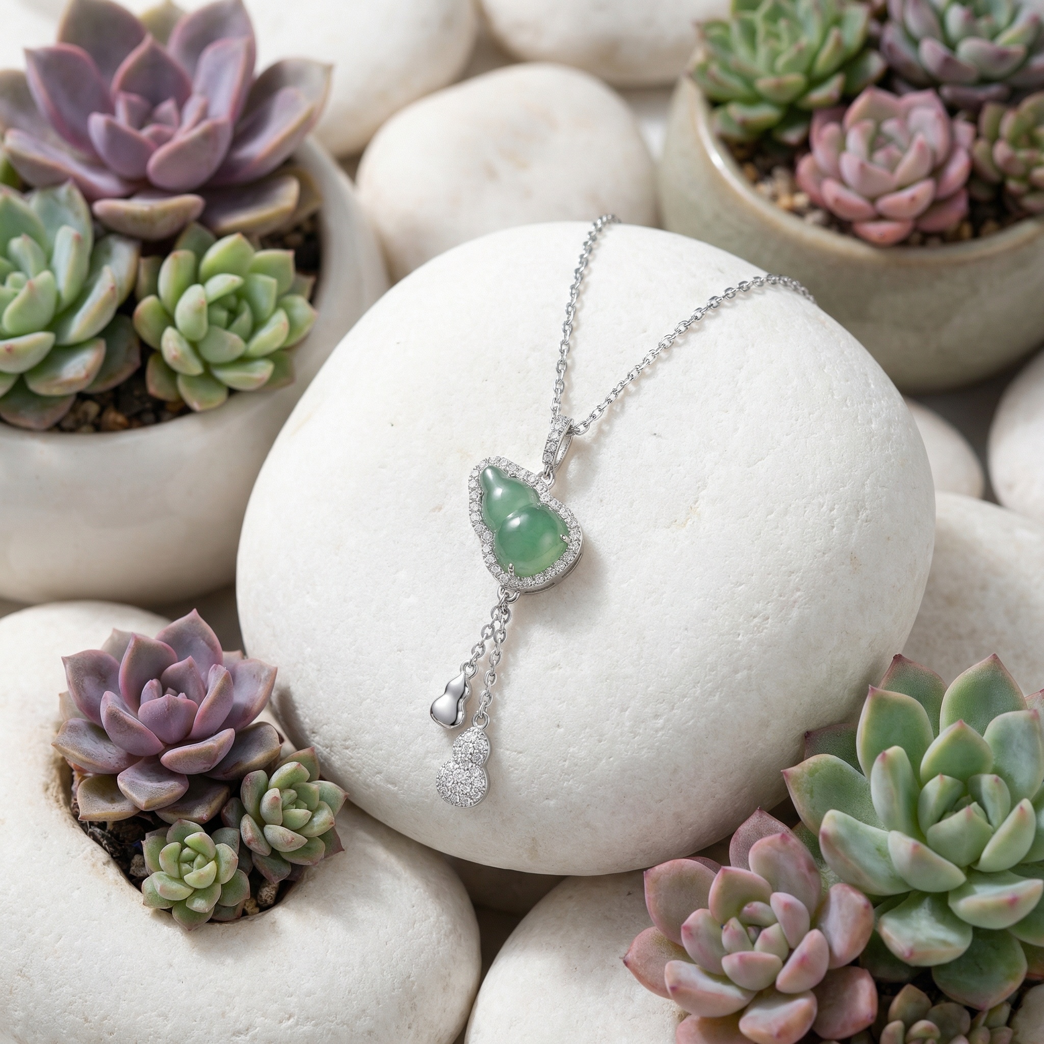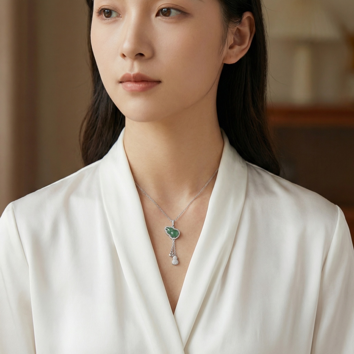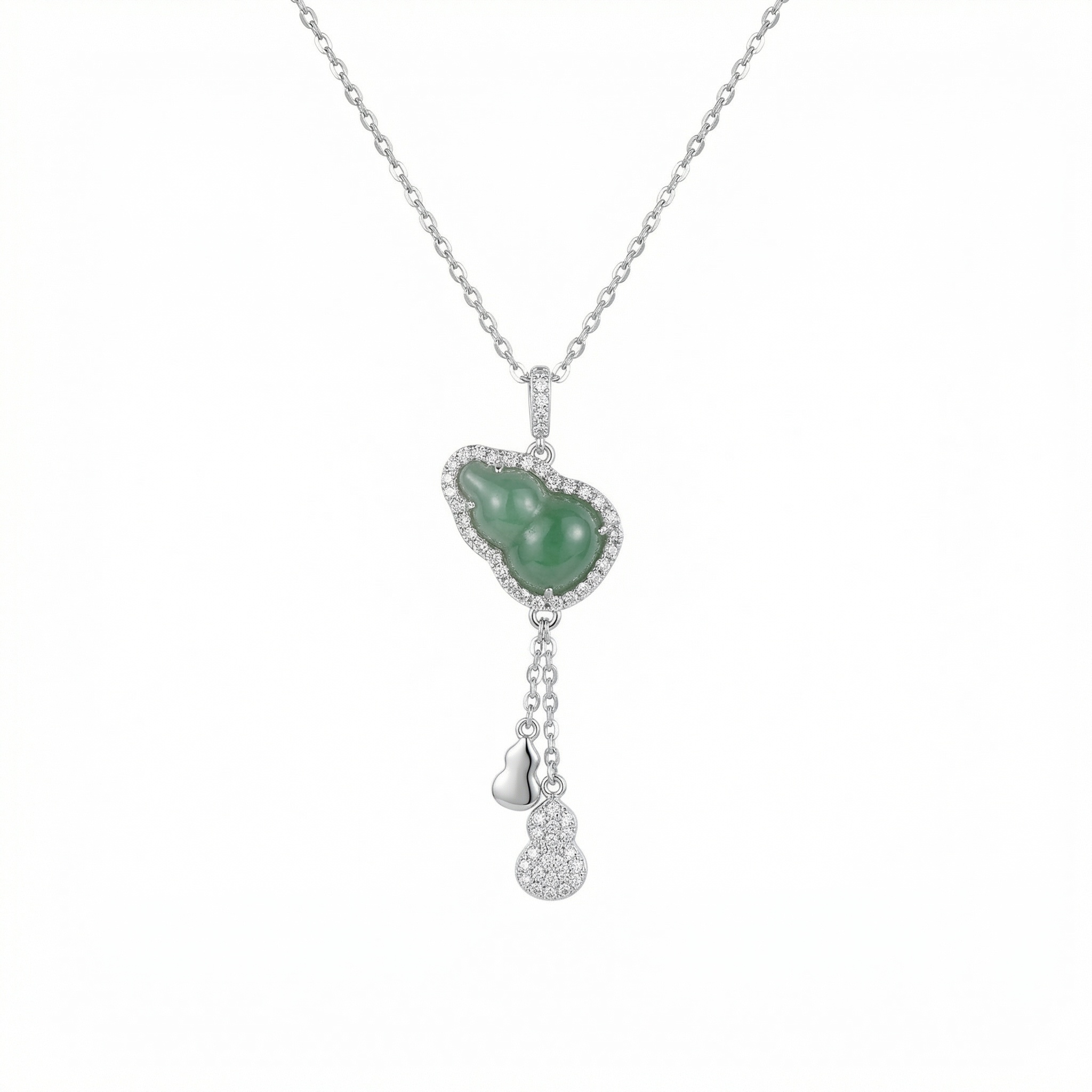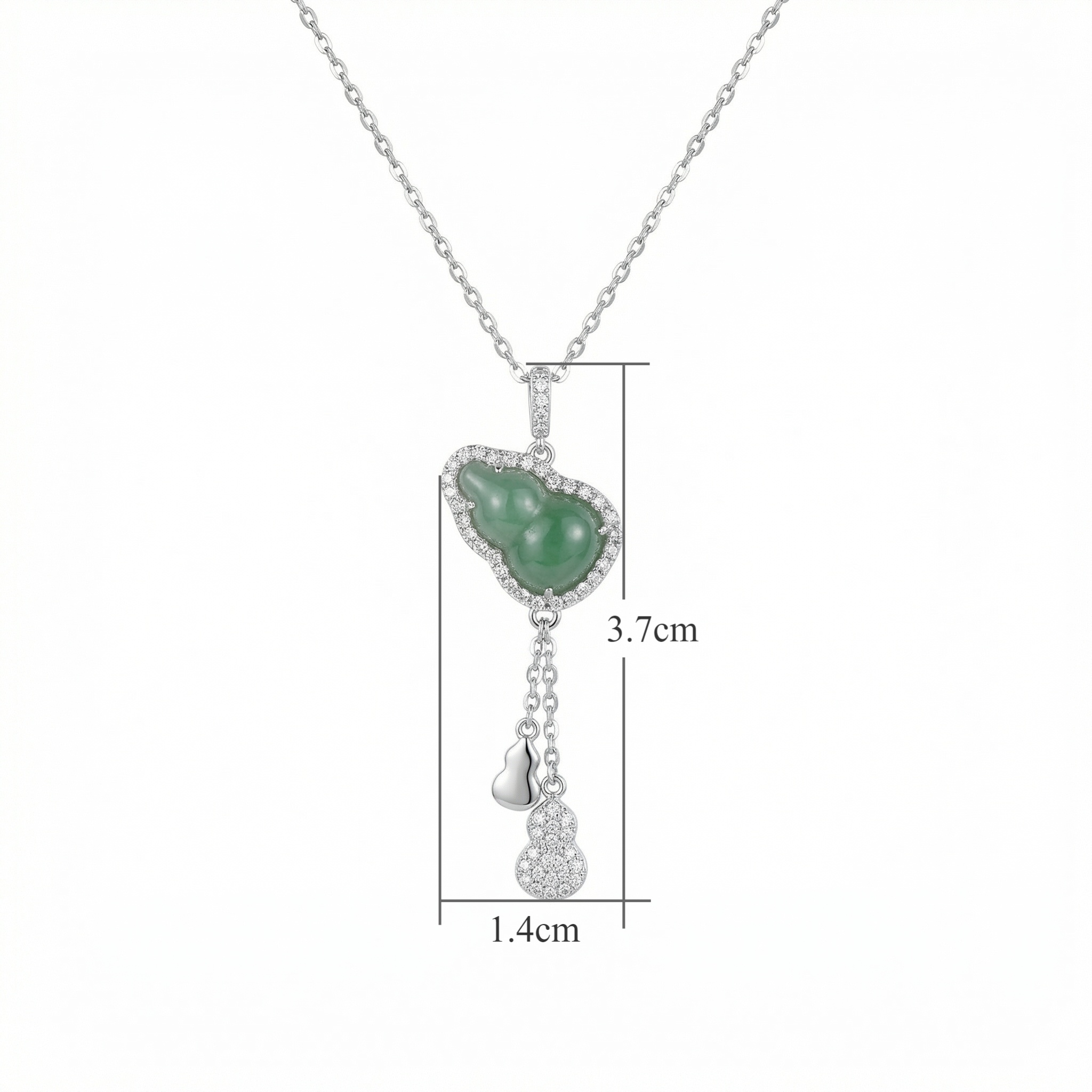 【Delivery Includes】 1 x 925 Silver Gourd Jade & Diamond Necklace 1 x Elegant Gift Box 1 x Jewelry Cleaning Cloth 【Care Instructions】 1. Store the necklace in a soft pouch or jewelry box when not wearing to prevent scratches. 2. Gently clean jade and diamond with a soft, damp cloth; avoid harsh chemicals or ultrasonic cleaners. 3. Keep away from perfumes, hairsprays, and lotions to maintain the luster of both metal and gemstones. 4. Remove jewelry before swimming, bathing, or exercising to extend its longevity. | Brand: jewelryodm