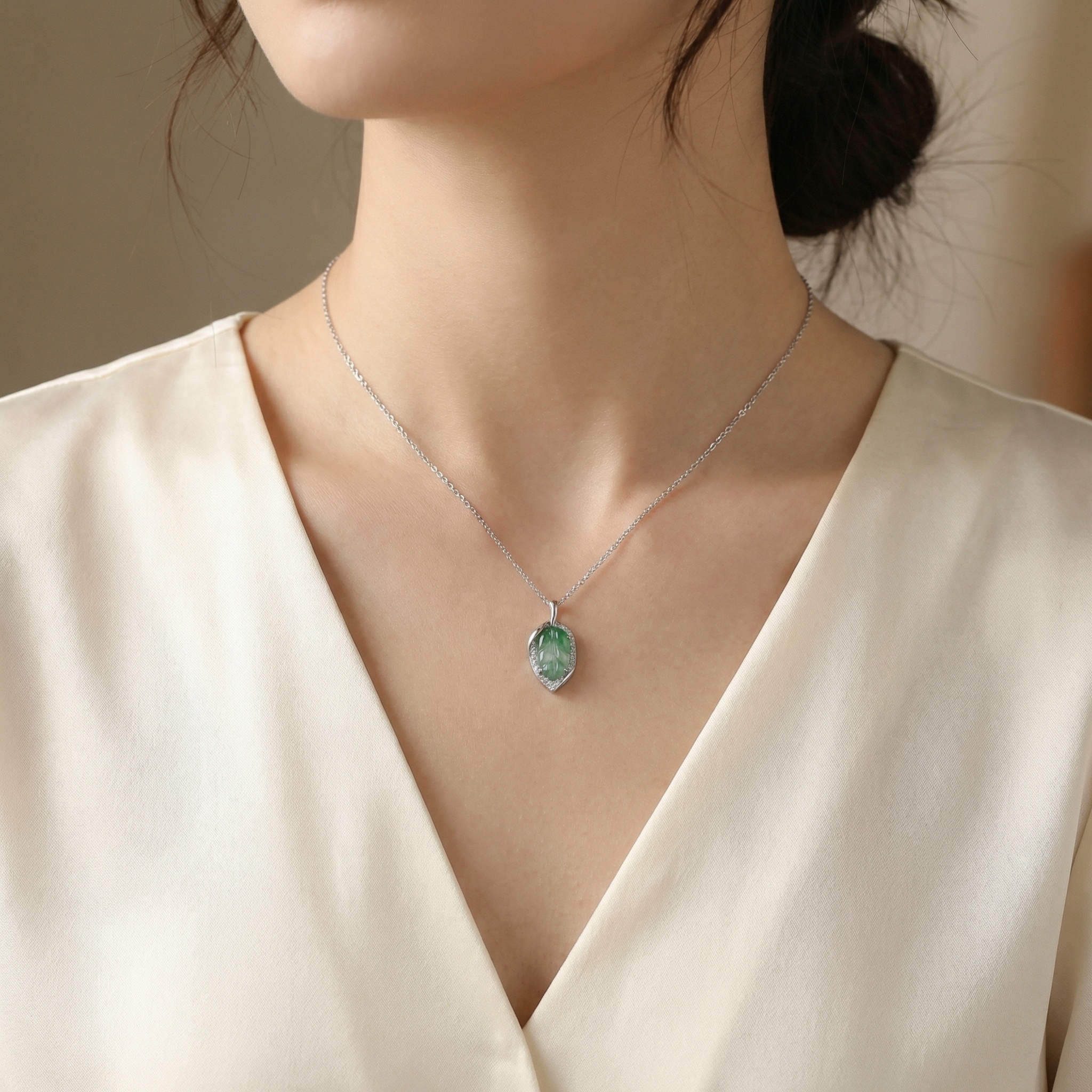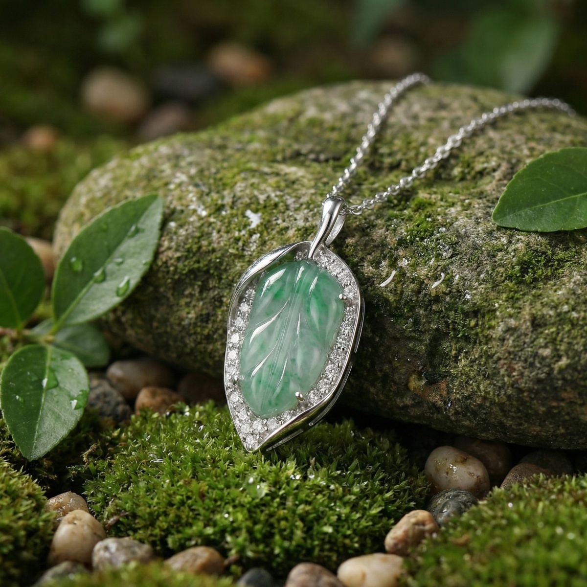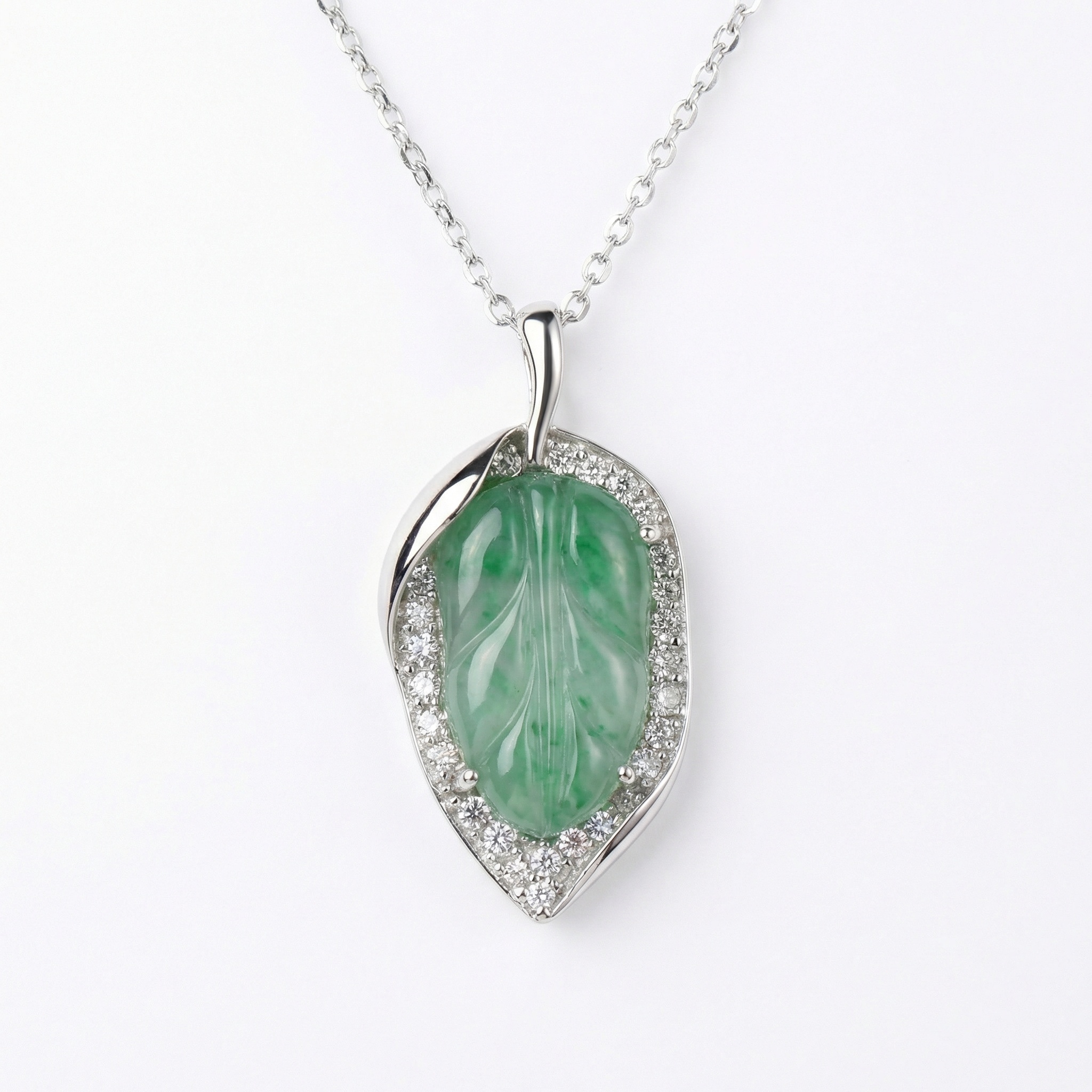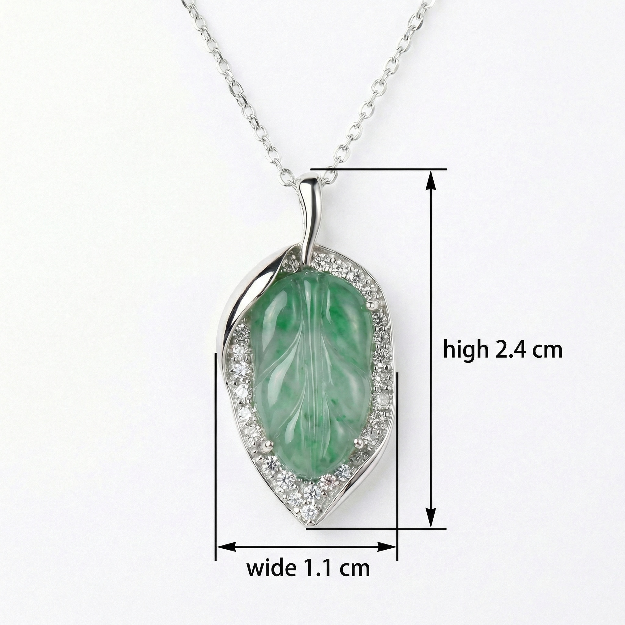【Delivery Includes】 1 x Leaf Jade Pendant Necklace with Diamond Halo 1 x Elegant Gift Box 1 x Jewelry Cleaning Cloth 【Care Instructions】 1. Store your necklace in a cool, dry place, preferably in the provided gift box, to avoid scratches. 2. Avoid contact with harsh chemicals, perfumes, and lotions that may dull the shine of jade and diamonds. 3. Gently clean with the provided cloth after each use to maintain brilliance. 4. Remove jewelry before swimming, bathing, or engaging in physical activities to prevent damage. | Brand: jewelryodm