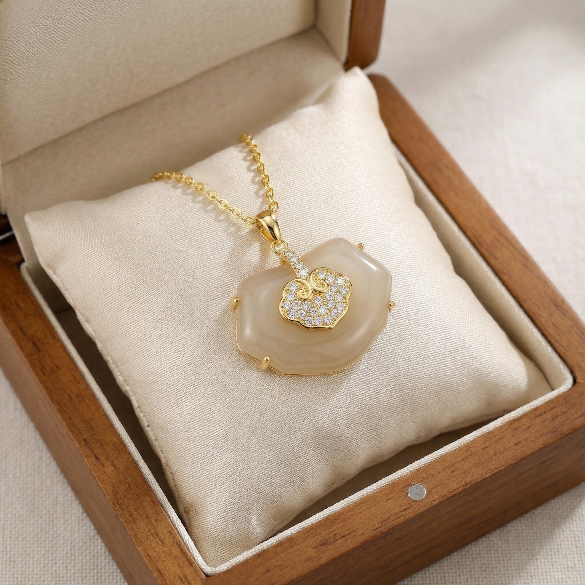 【Delivery Includes】 1 x Cloud Pendant Necklace with Round Cubic Zirconia and Agate 1 x Premium Gift Box 1 x Jewelry Care Cloth 【Care Instructions】 1. Store the necklace in a clean, dry place, ideally in the provided gift box, when not in use. 2. Avoid exposure to chemicals, perfumes, or prolonged moisture to keep the and gemstones shining. 3. Gently clean with the provided cloth to remove dirt or oils after wear. 4. Do not wear during strenuous activities or swimming to prevent potential damage. | Brand: jewelryodm