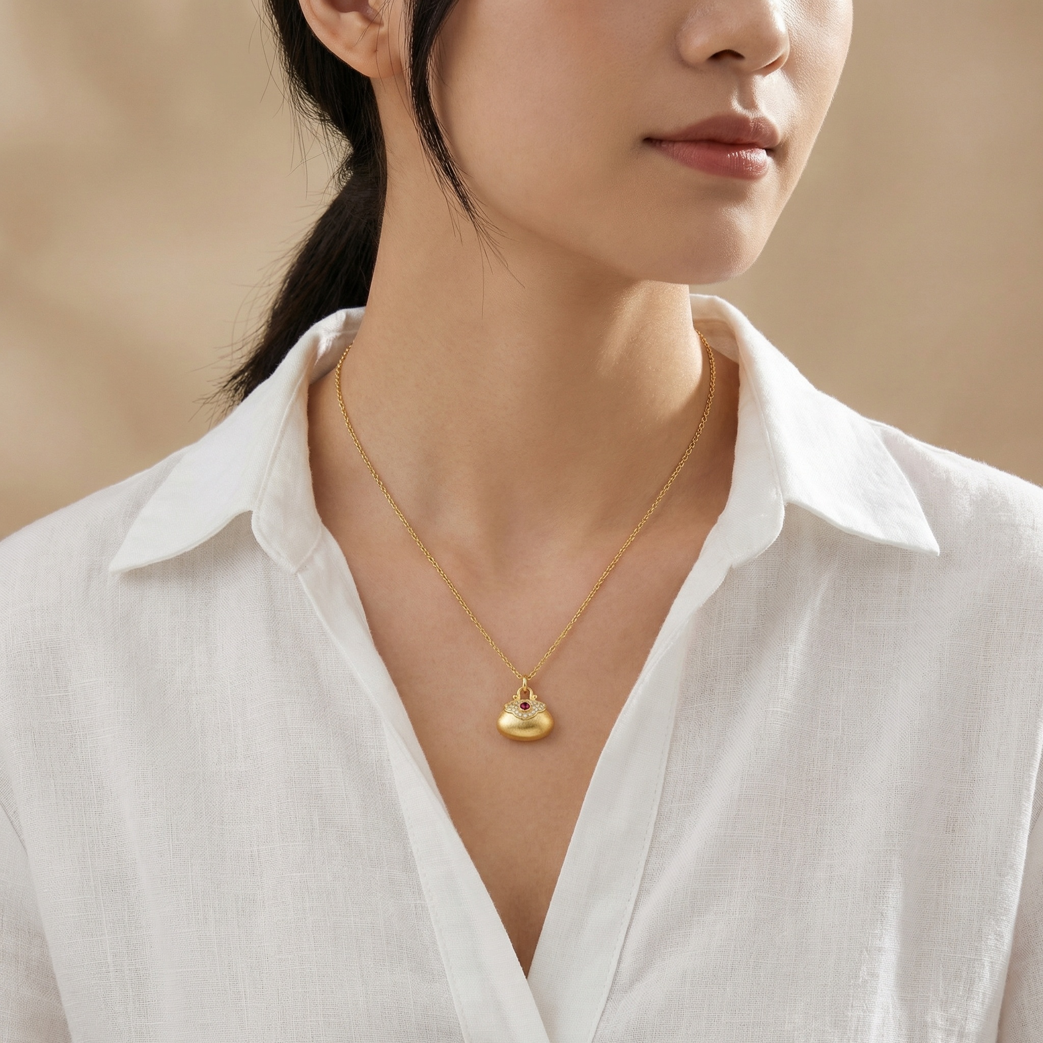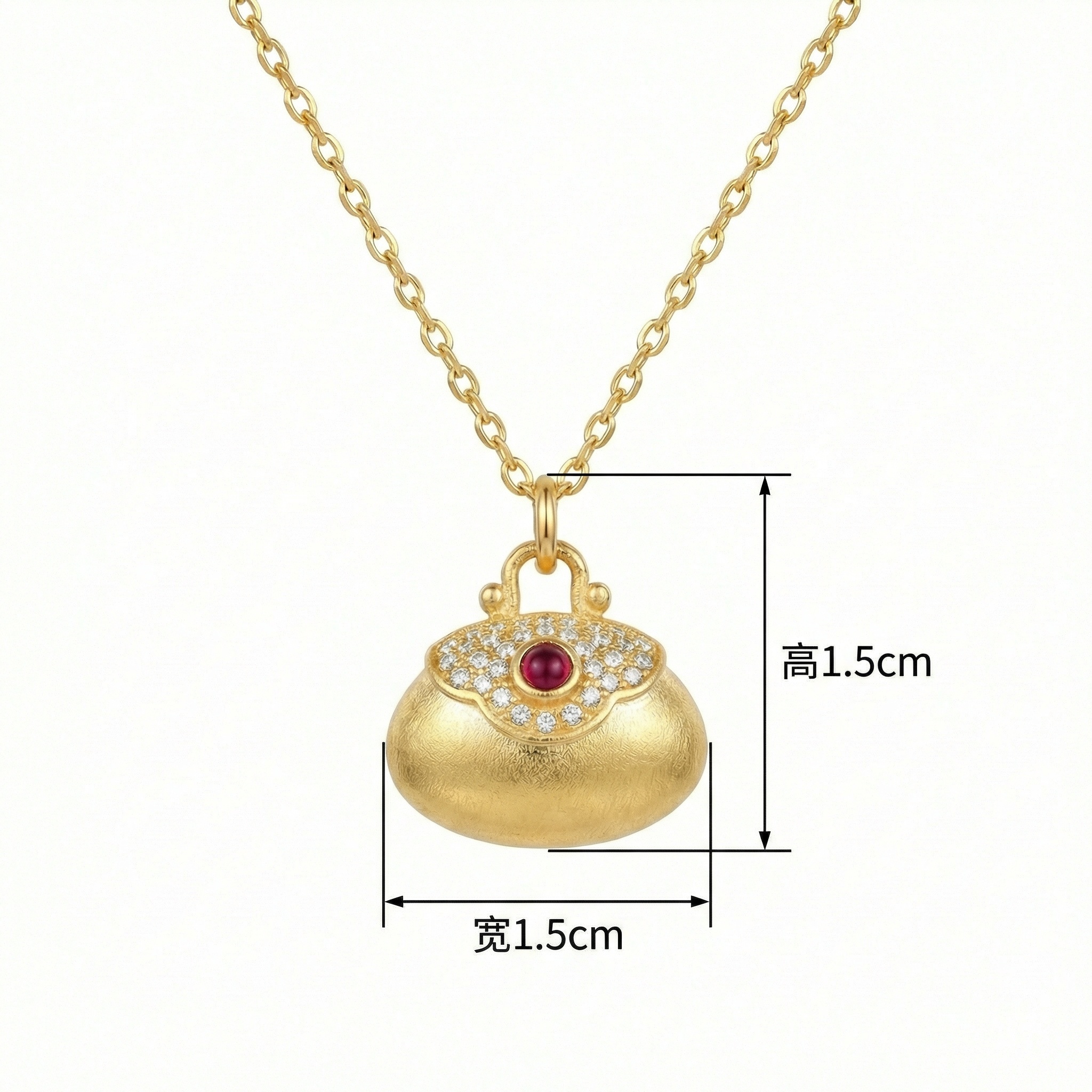 【Delivery Includes】 1 x Purse Pendant Necklace with Round Ruby and Diamond Accents 1 x Elegant Gift Box 1 x Jewelry Cleaning Cloth 【Care Instructions】 1. Store the necklace in a soft pouch or jewelry box when not wearing to prevent scratches. 2. Clean gently with the provided cloth; avoid harsh chemicals and ultrasonic cleaners. 3. Keep away from water, perfume, and cosmetics to maintain its shine and brilliance. | Brand: jewelryodm