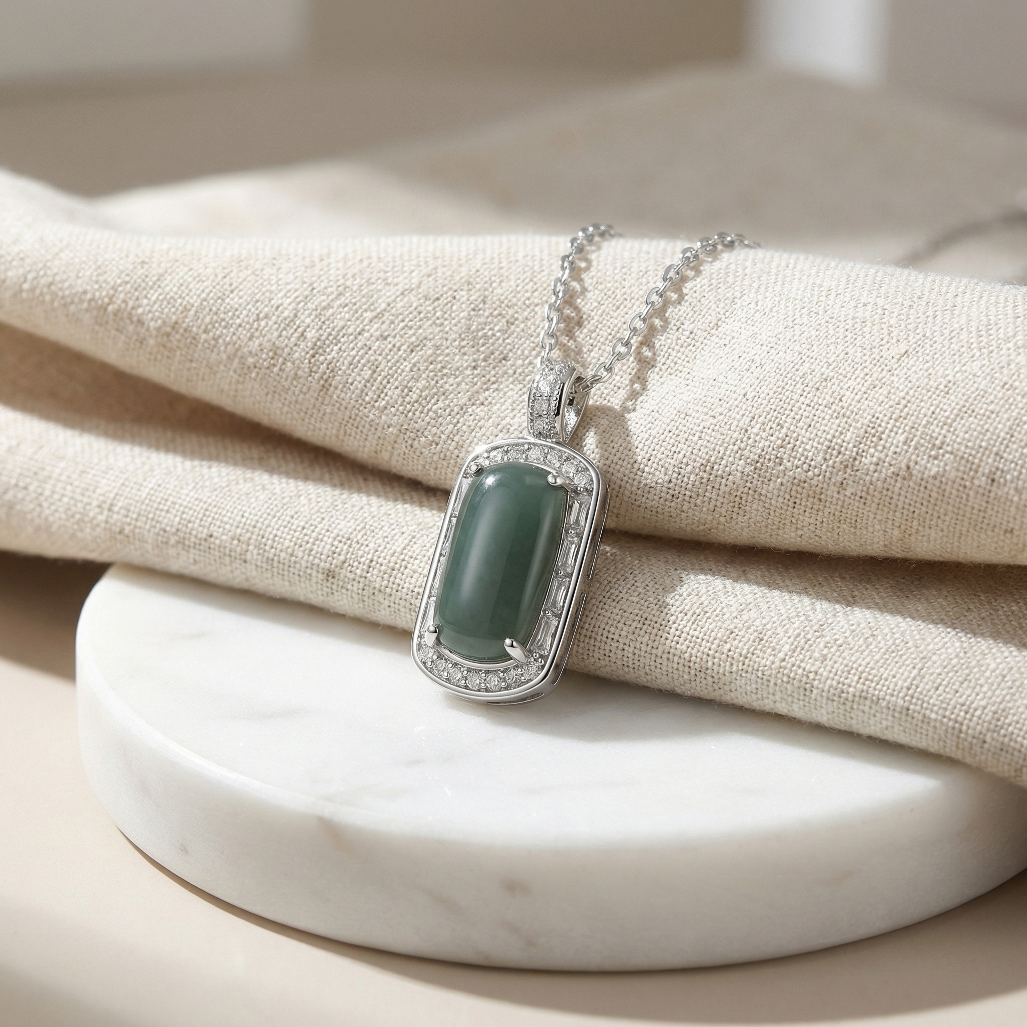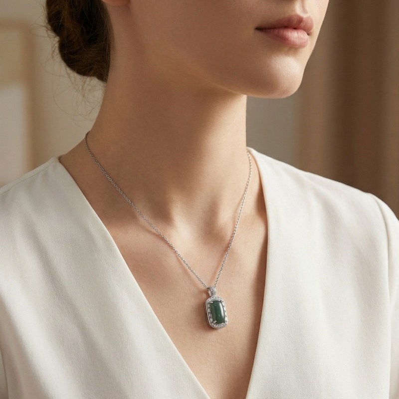 【Delivery Includes】 1 x Necklace with Oval Emerald Green Jade Cabochon Pendant (Halo Setting) 1 x Gift Box 1 x Jewelry Cleaning Cloth 【Care Instructions】 1. Keep your jade necklace clean by gently wiping it with a soft, dry cloth after each wear. 2. Store in the provided gift box or a soft pouch to prevent scratches and minimize exposure to air or moisture. 3. Avoid contact with perfumes, chemicals, and cosmetics to protect both the jade and gold. 4. Remove your necklace before swimming, bathing, or engaging in strenuous activity to maintain its luster and integrity. 5. For deep cleaning, use only mild soap and water—do not use harsh cleaners or ultrasonic devices. | Brand: jewelryodm
