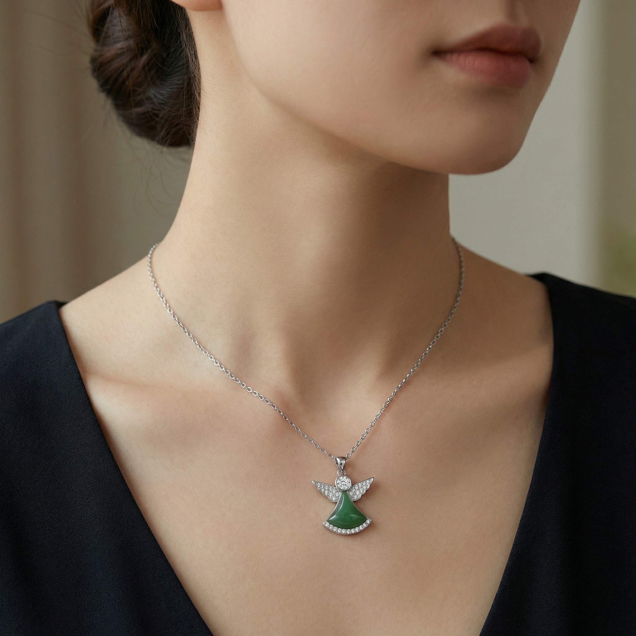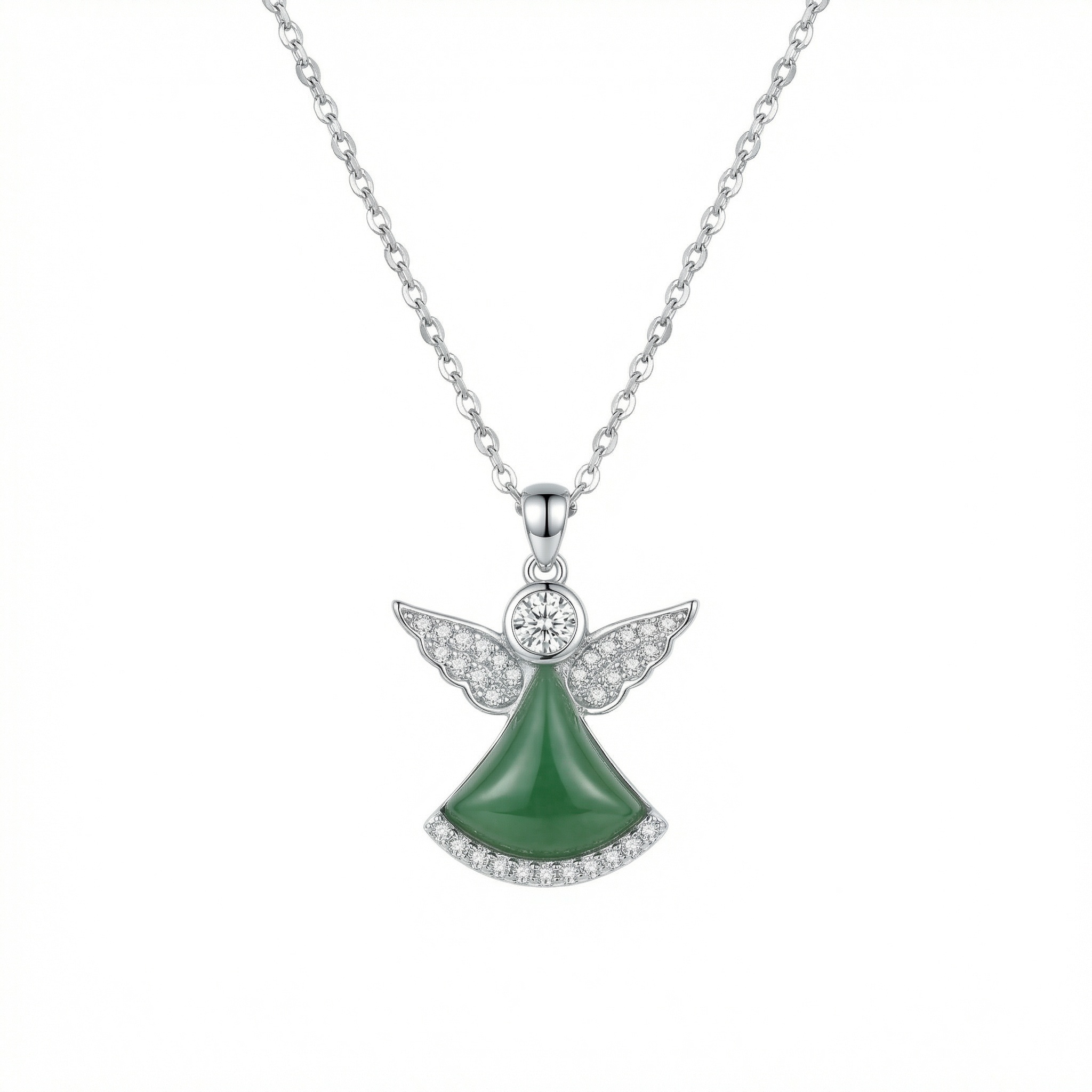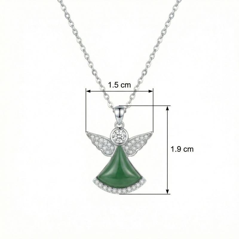 【Delivery Includes】 1 x Angel Wings Necklace with Green Agate & Cubic Zirconia Pendant 1 x Gift Box 1 x Jewelry Cleaning Cloth 【Care Instructions】 1. Store the necklace in a soft pouch or jewelry box when not in use to prevent scratches and oxidation. 2. Avoid contact with chemicals, perfume, lotions, and water to maintain the shine and color. 3. Gently clean with the provided cleaning cloth after use to remove oils and residues. | Brand: jewelryodm