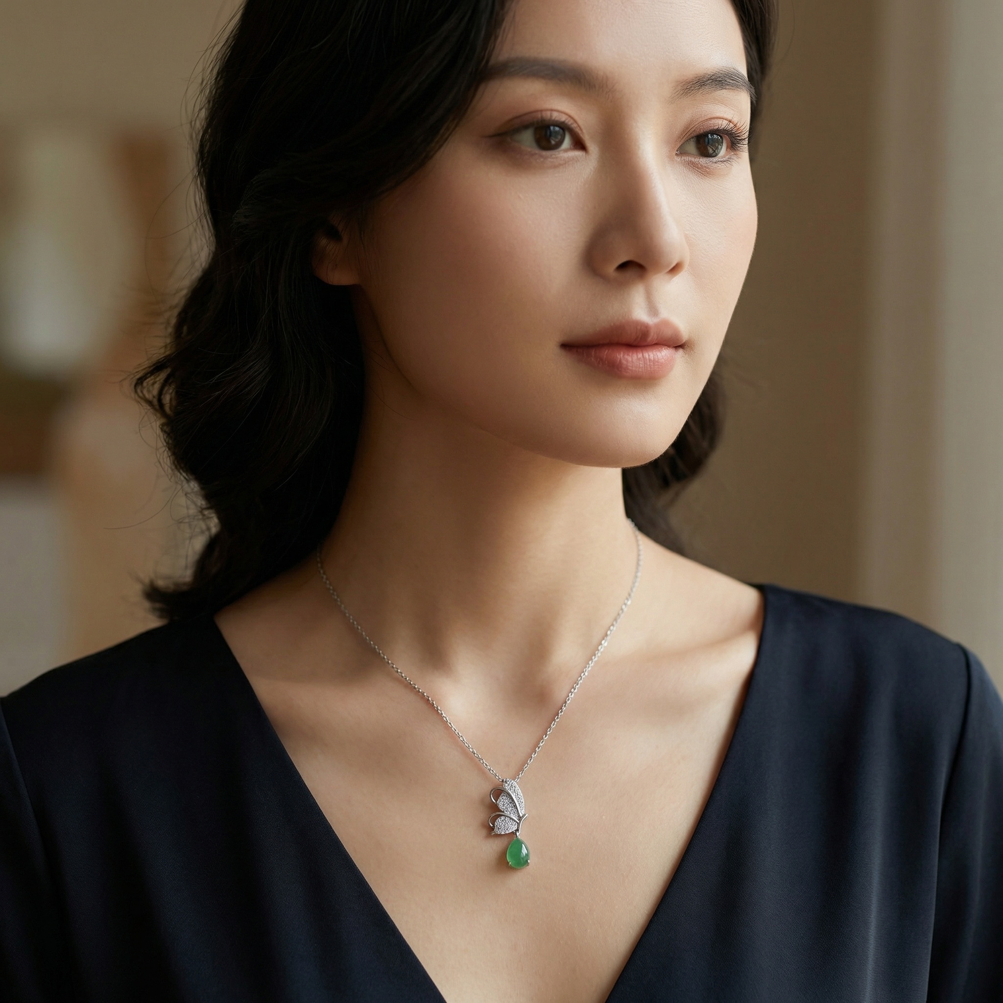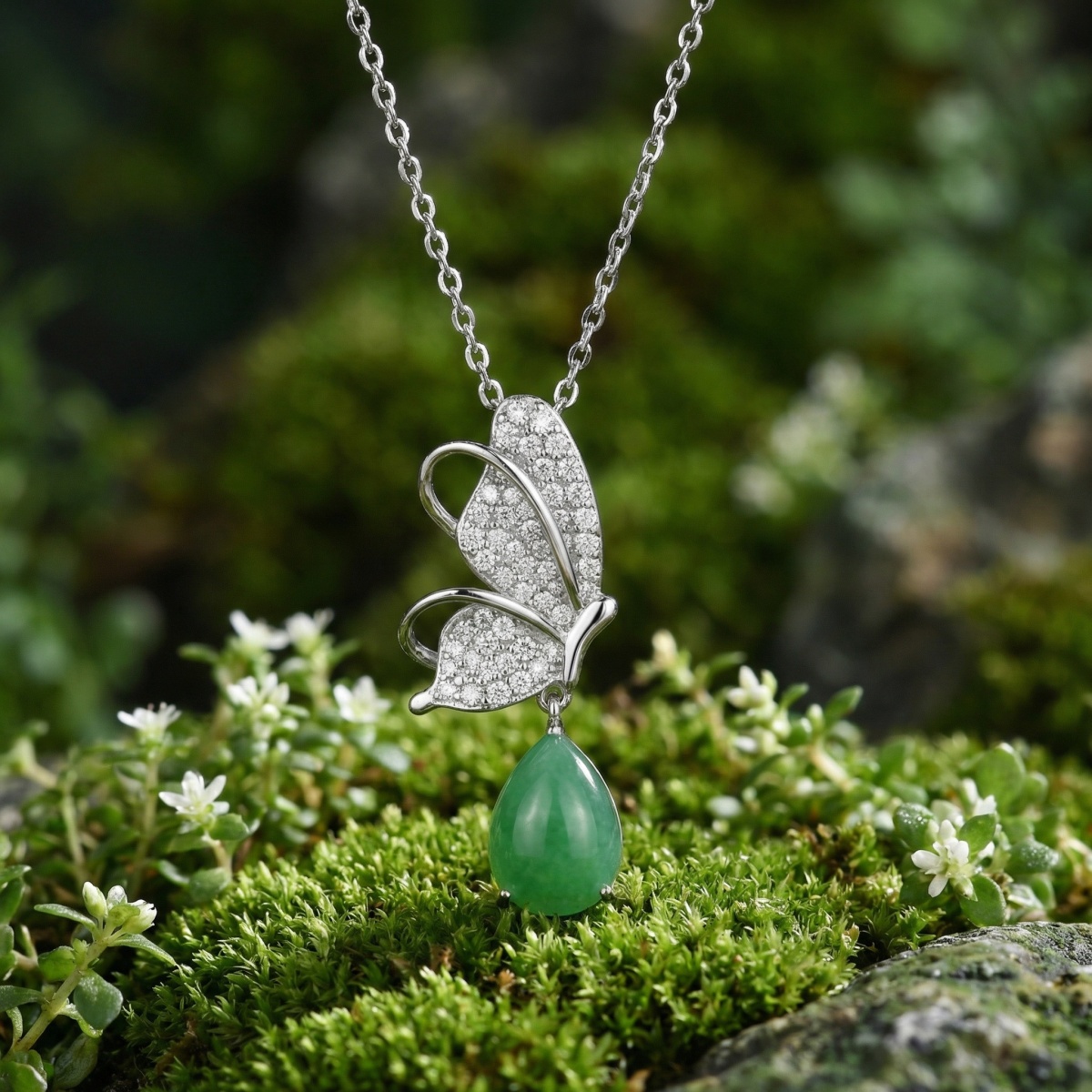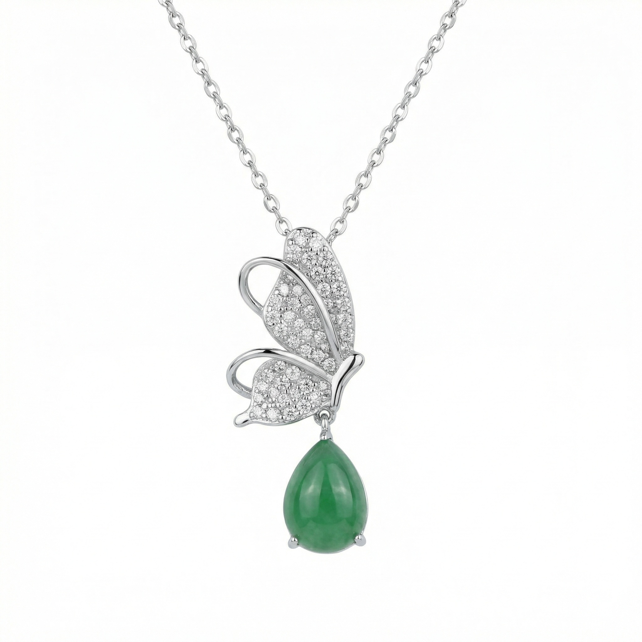 【Delivery Includes】 1 x Butterfly Jade Drop Necklace with Pavé Diamonds 1 x Exquisite Gift Box 1 x Polishing Cloth 【Care Instructions】 1. Store your necklace in the provided gift box or a soft pouch to avoid scratches and oxidation. 2. Avoid exposure to harsh chemicals and perfumes to maintain the brilliance of gemstones and metal. 3. Gently clean with the included polishing cloth; do not use ultrasonic cleaners on jade or pavé settings. 4. Wear your necklace after applying makeup and hairspray to protect the stones. | Brand: jewelryodm