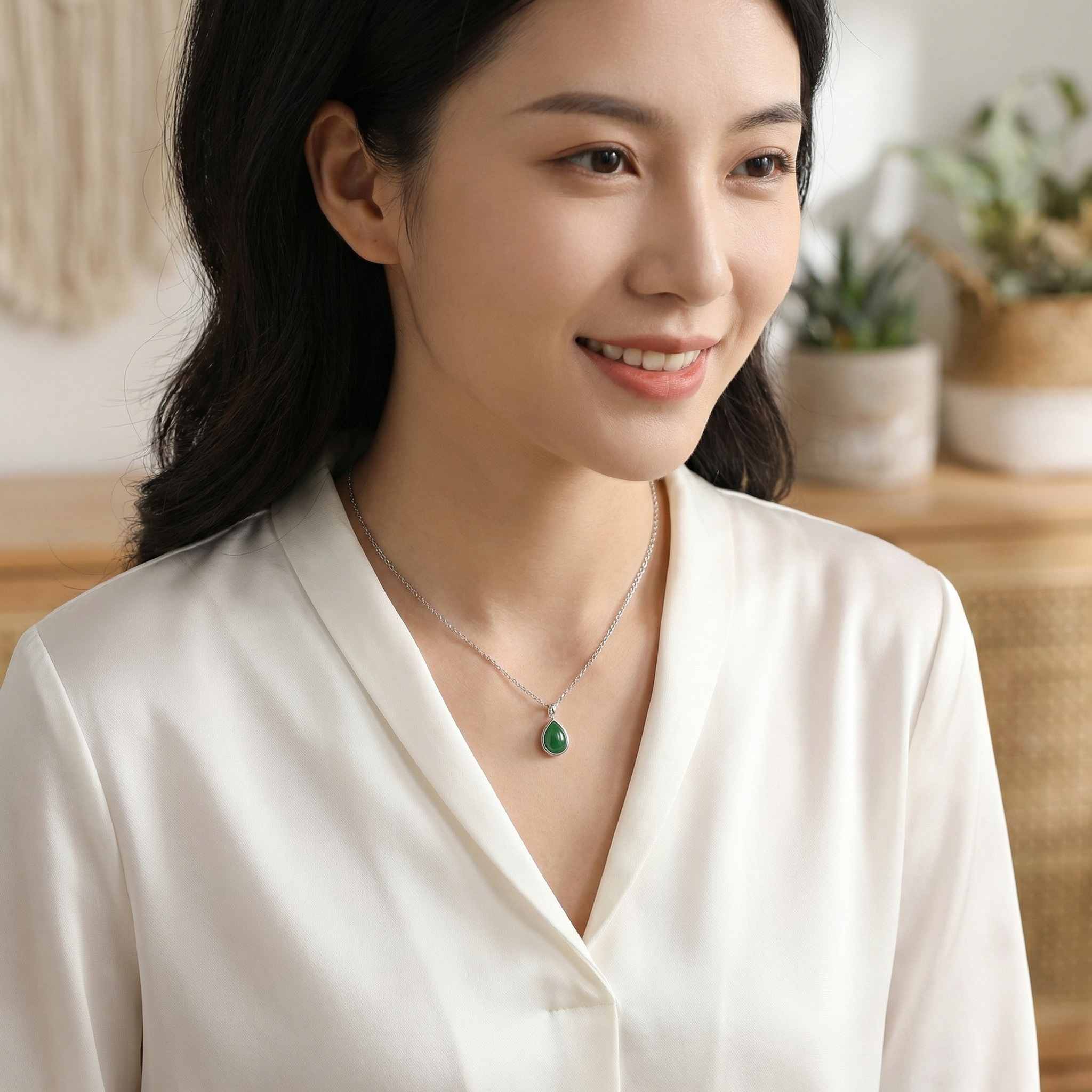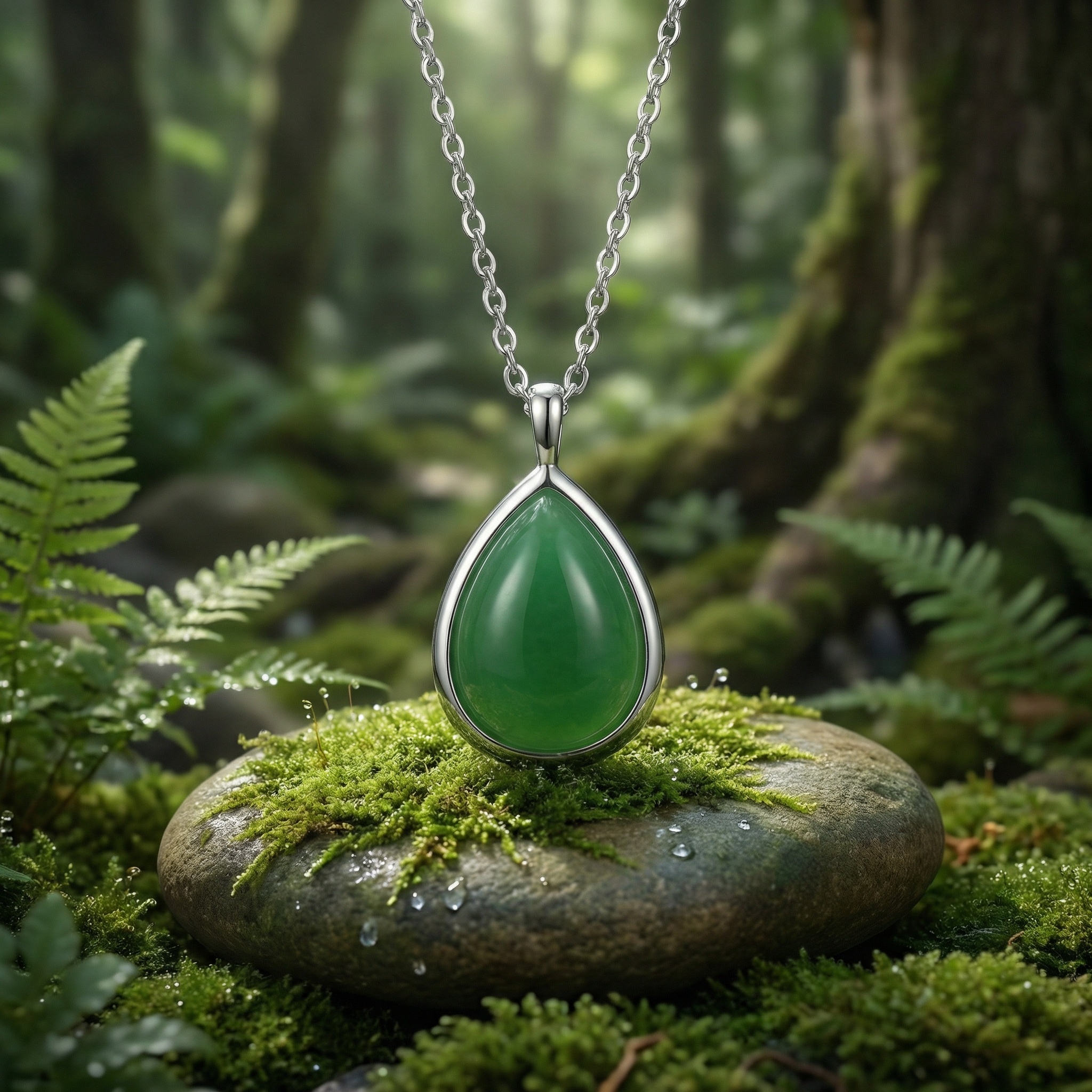 【Delivery Includes】 1 x Teardrop Green Jade Silver Necklace 1 x Gift Box 1 x Cleaning Cloth 【Care Instructions】 1. Store your jade necklace in a soft pouch or jewelry box to protect it from scratches and environmental damage. 2. Avoid direct contact with harsh chemicals, perfumes, and cosmetics as they may damage the stone and silver. 3. Clean with a soft, damp cloth and dry thoroughly. Do not use ultrasonic cleaners or abrasives. 4. Avoid wearing during vigorous activities or in the shower to extend the necklace's luster and longevity. | Brand: jewelryodm