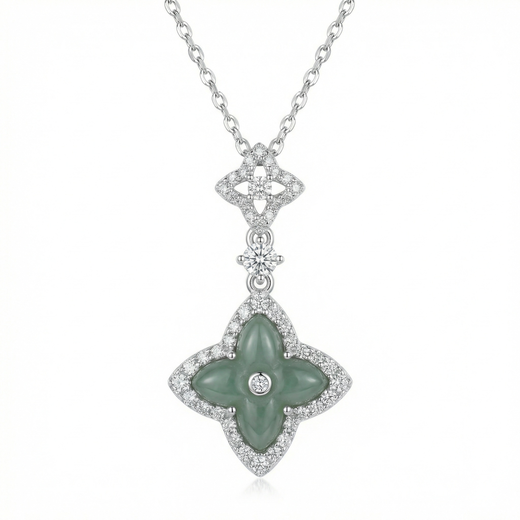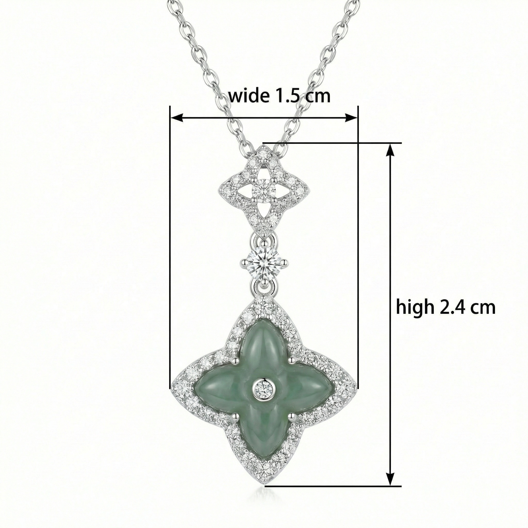 925 Sterling Silver Elegant Silver-Tone Green Jadeite Floral Pendant Necklace with Sparkling Brilliant-Cut Accents