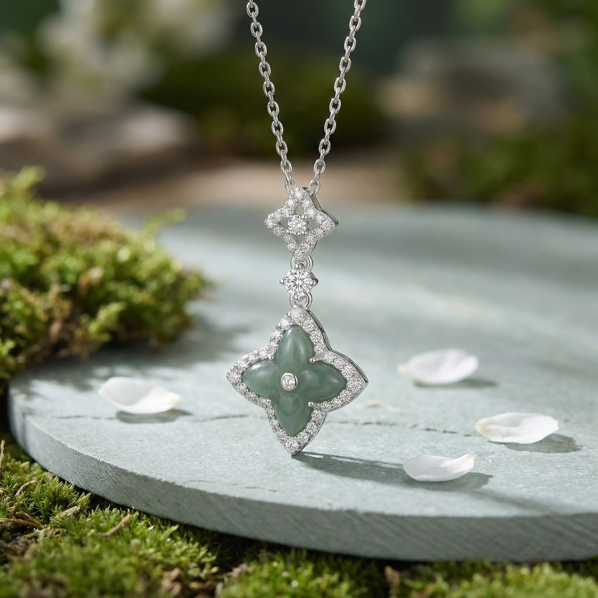 【Delivery Includes】 1 x Flower Clover Pendant Necklace with Jade and Diamond 1 x Elegant Gift Box 1 x Jewelry Cleaning Cloth 【Care Instructions】 1. Gently wipe the necklace with a soft, dry cloth after each wear to remove oils and dust. 2. Store your necklace in the provided gift box or a separate pouch to avoid scratches and exposure to air. 3. Avoid contact with chemicals, perfumes, and lotions to preserve the luster of the gold and stones. 4. Remove before swimming, bathing, or engaging in strenuous activities. 5. For a lasting shine, have your necklace professionally cleaned annually. | Brand: jewelryodm