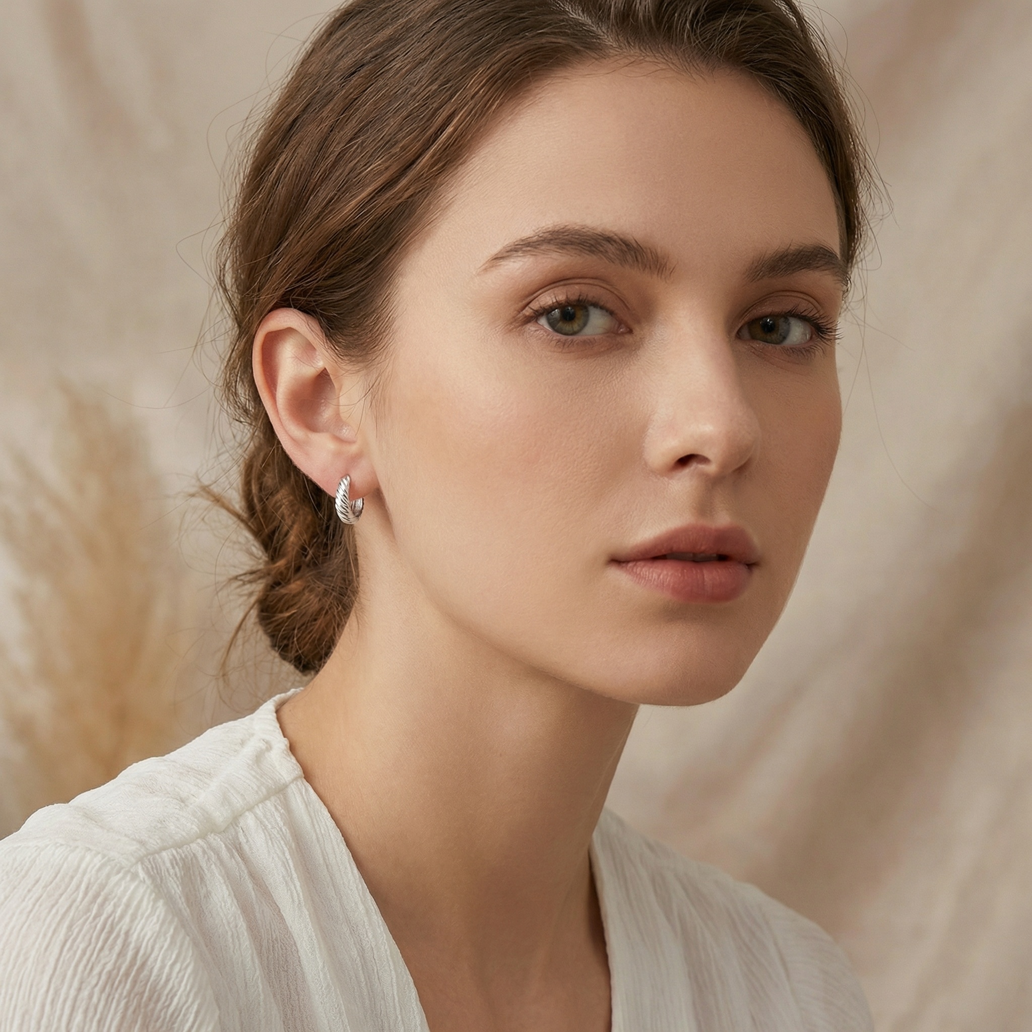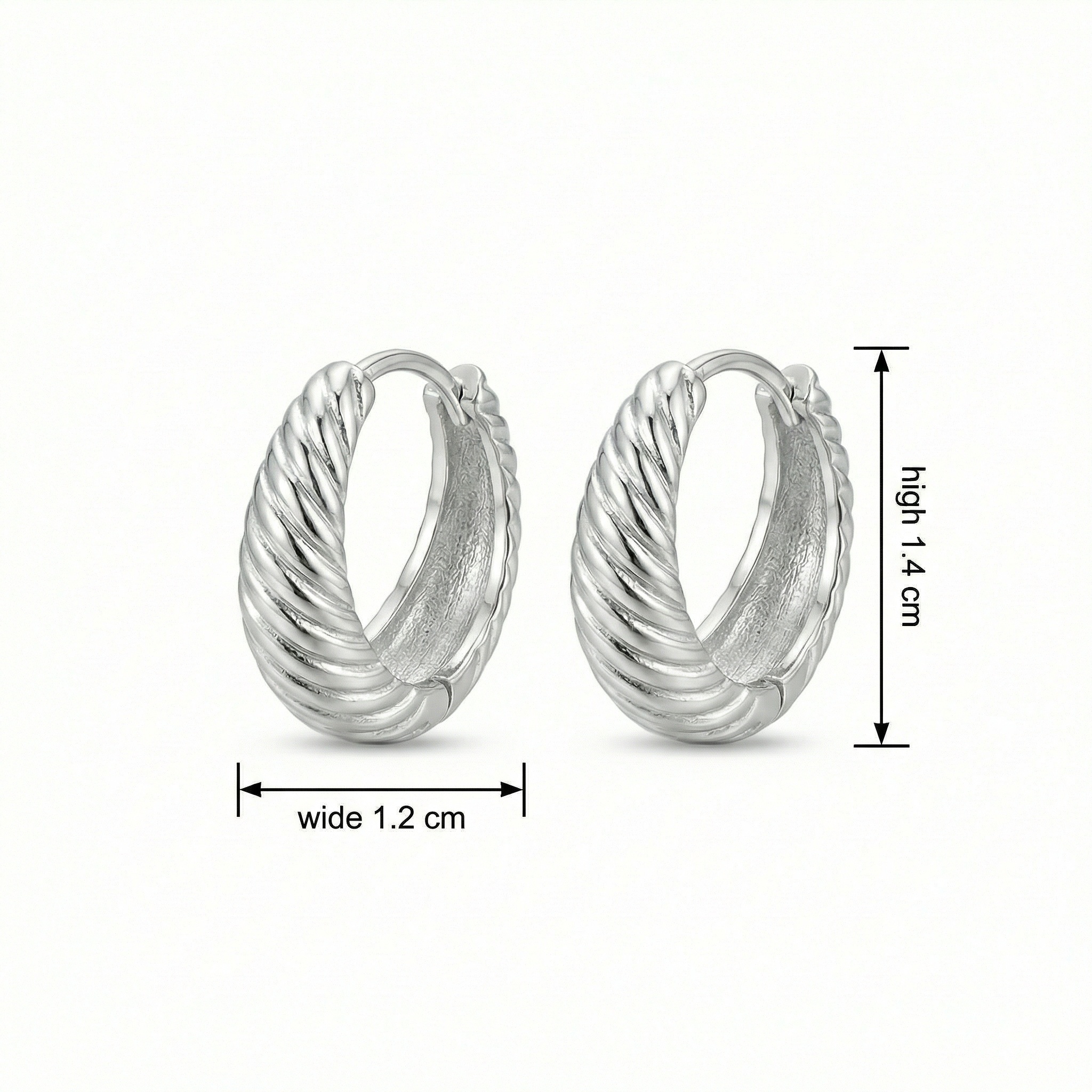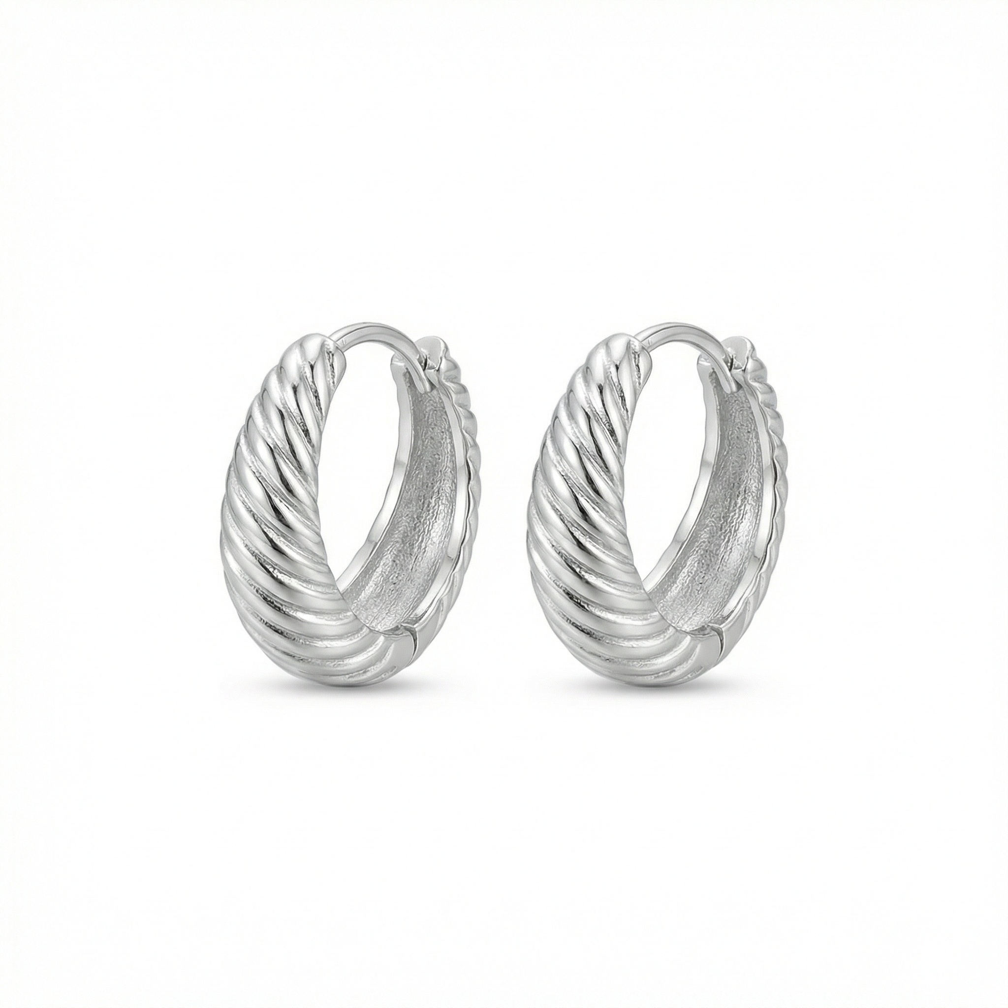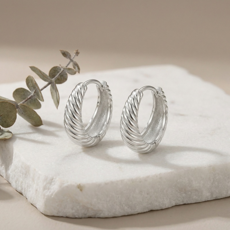 These stunning silver-toned hoop earrings feature a chic twisted croissant design that adds a touch of sophisticated texture to any ensemble. Crafted with a polished finish, the chunky, crescent-shaped hoops catch the light beautifully from every angle. The earrings are designed with a secure hinged closure, ensuring they stay comfortably in place throughout the day. Whether you're dressing up for a special occasion or adding a stylish accent to your everyday look, these versatile huggie hoops are a timeless addition to any jewelry collection. Their classic yet modern aesthetic makes them an ideal gift for a loved one or a perfect treat for yourself. Lightweight and durable, these earrings combine style and comfort effortlessly. | Brand: jewelryodm