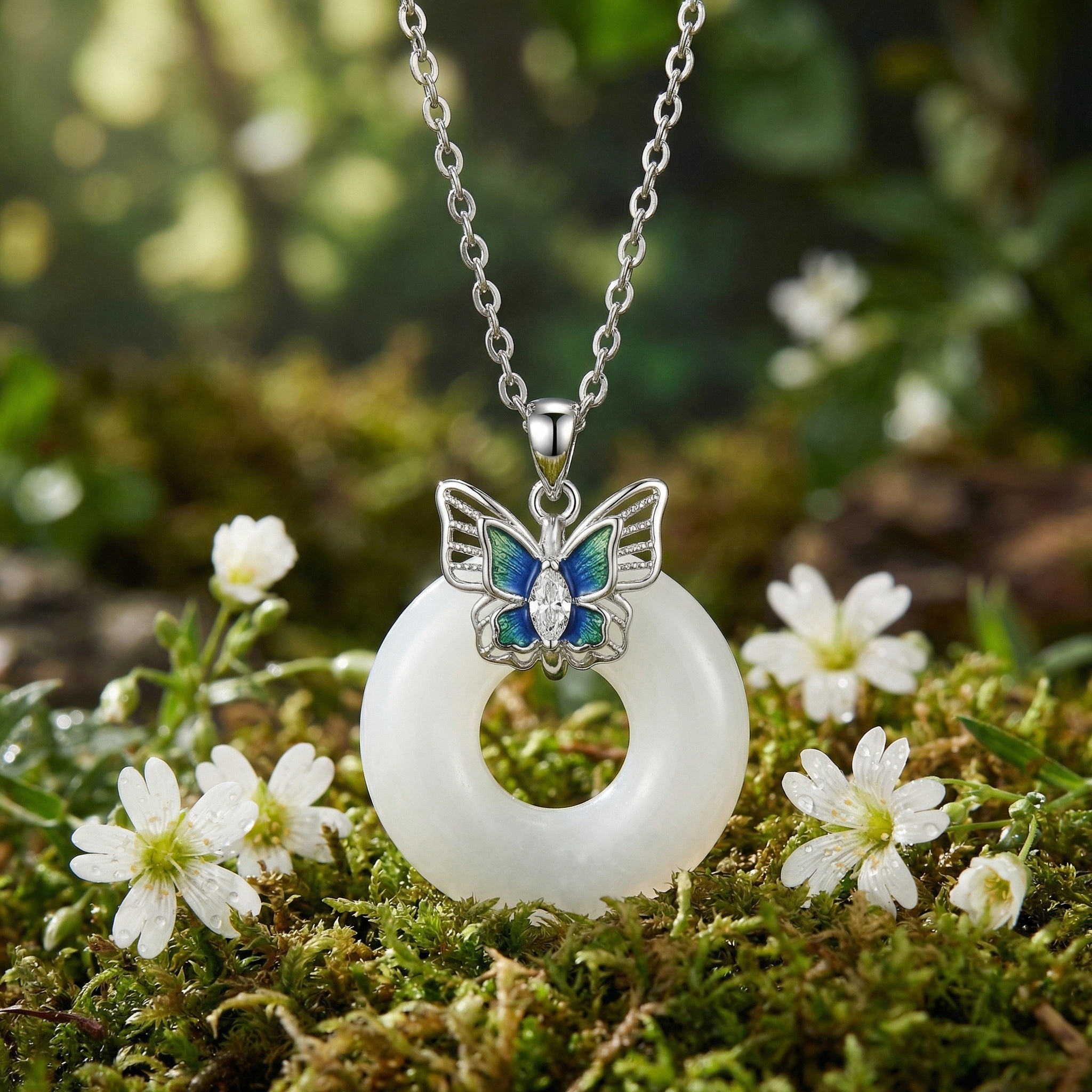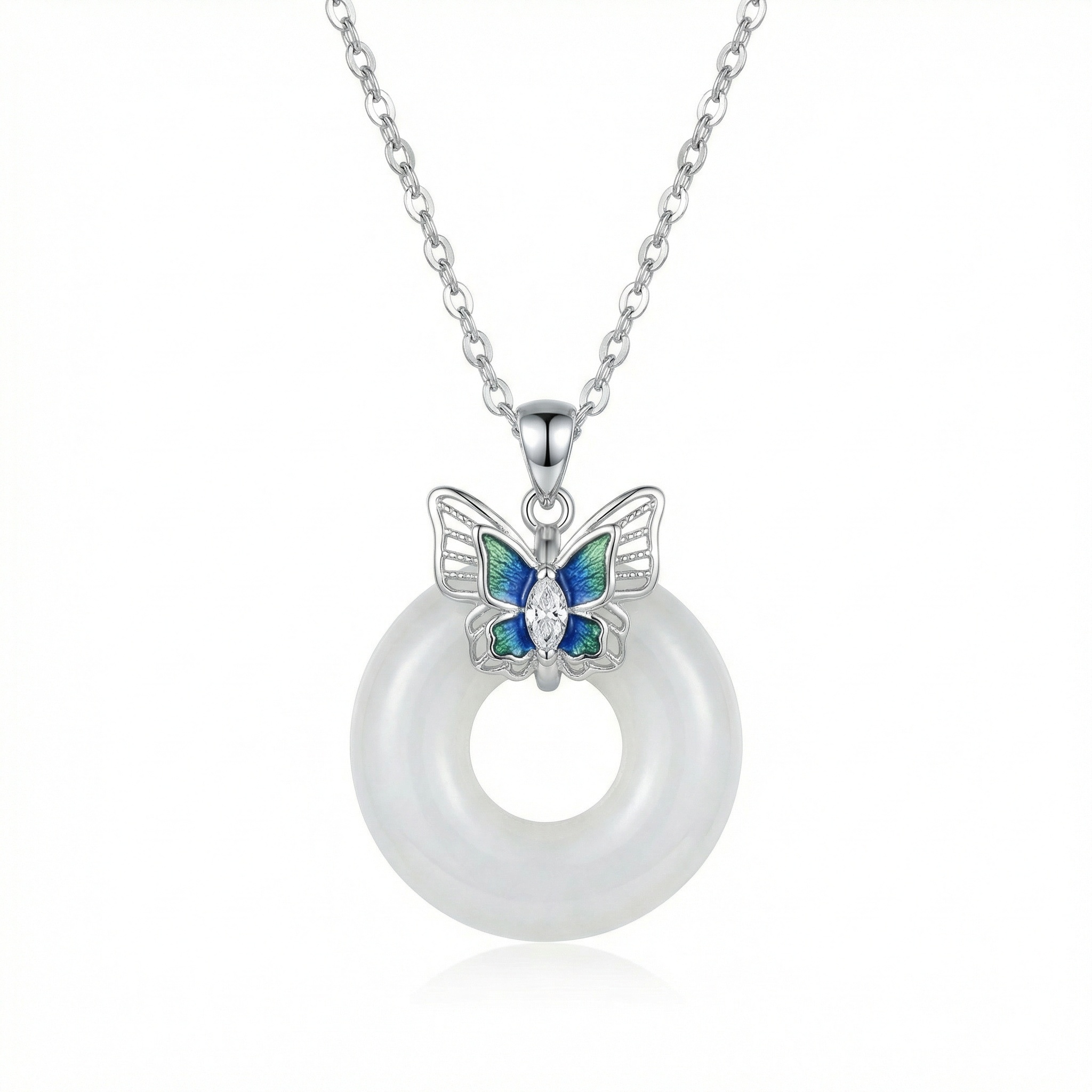 【Delivery Includes】 1 x Butterfly Circle Necklace with Marquise Cubic Zirconia and Opal-like Stone 1 x Elegant Gift Box 1 x Jewelry Cleaning Cloth 【Care Instructions】 1. Store your necklace in a cool, dry place, preferably in a sealed bag or box when not in use. 2. Remove before bathing, swimming, or using chemicals to preserve shine and prevent tarnish. 3. Wipe the jewelry gently with a soft cloth after wearing to remove oils and perspiration. | Brand: jewelryodm