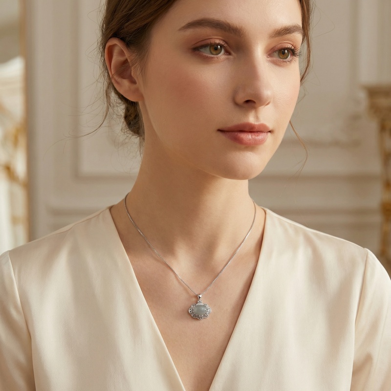 【Delivery Includes】 1 x Oval Filigree Moonstone Necklace 1 x Elegant Gift Box 1 x Jewelry Cleaning Cloth 【Care Instructions】 1. Keep your necklace shining by wiping it gently with the provided cloth before storing. 2. Store separately in a sealed box to avoid scratches and exposure to air. 3. Avoid contact with perfumes, lotions, and chlorine to preserve the gold and moonstone’s brilliance. 4. Remove before bathing, swimming, or exercise to prevent damage. 5. Clean regularly using lukewarm water and dry thoroughly. | Brand: jewelryodm