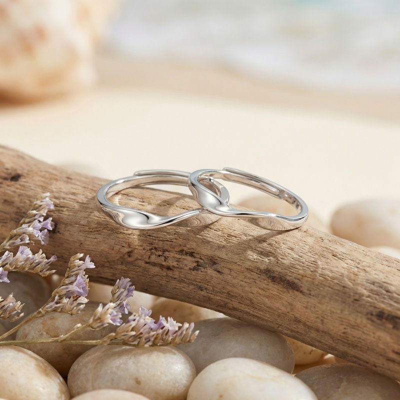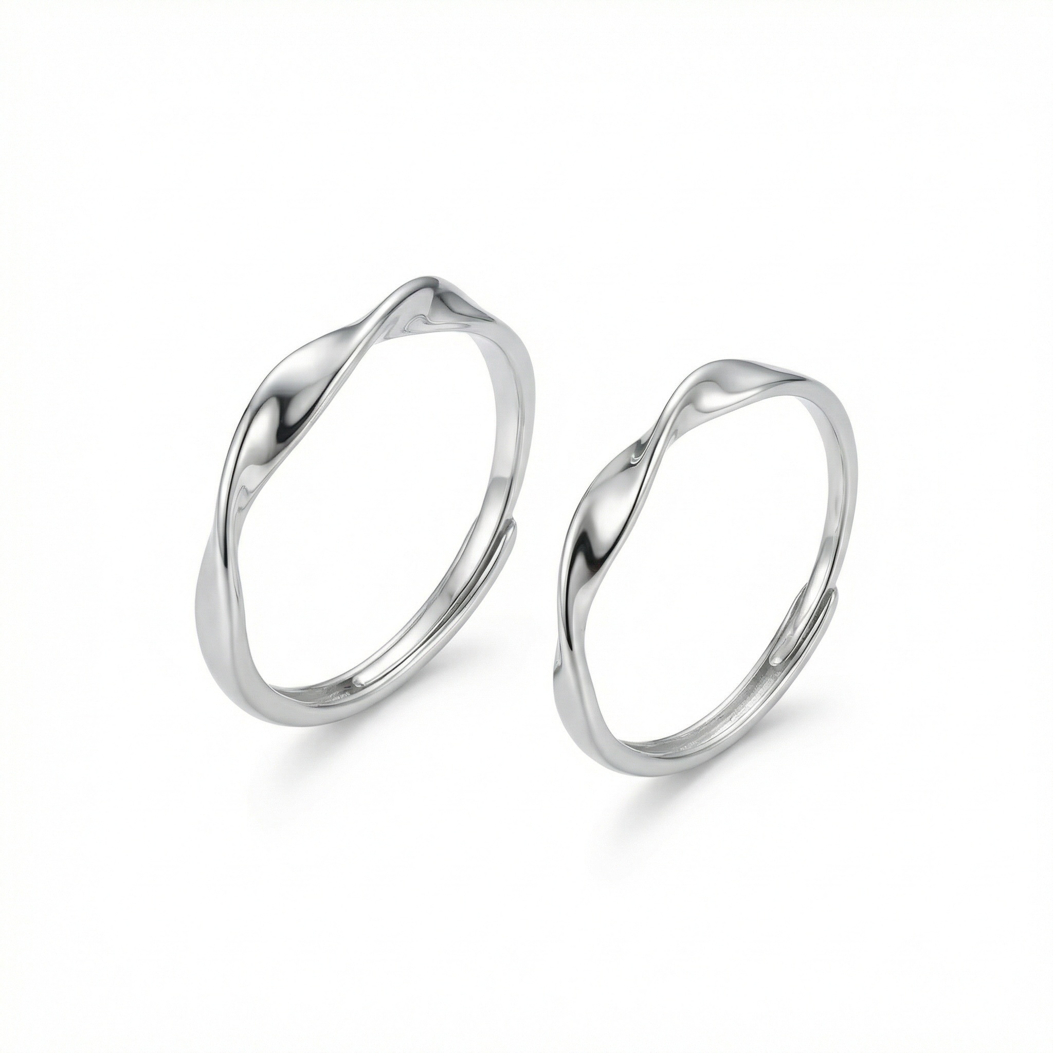 These stunning couple rings feature a modern and minimalist design inspired by the Möbius strip. Crafted with a high-polished silver finish, the twisted, wavy bands create a fluid silhouette that symbolizes eternal unity and infinite love. The sleek, understated aesthetic makes them perfect for everyday wear or as a sophisticated accessory for special occasions. A key feature of these rings is the practical adjustable open-band design, ensuring a comfortable and customized fit for various finger sizes. Whether used as promise rings, anniversary gifts, or a simple token of devotion, their timeless design reflects a perfect balance of contemporary style and romantic symbolism. These elegant pieces are a versatile addition to any jewelry collection, offering a subtle yet profound statement of connection. | Brand: jewelryodm