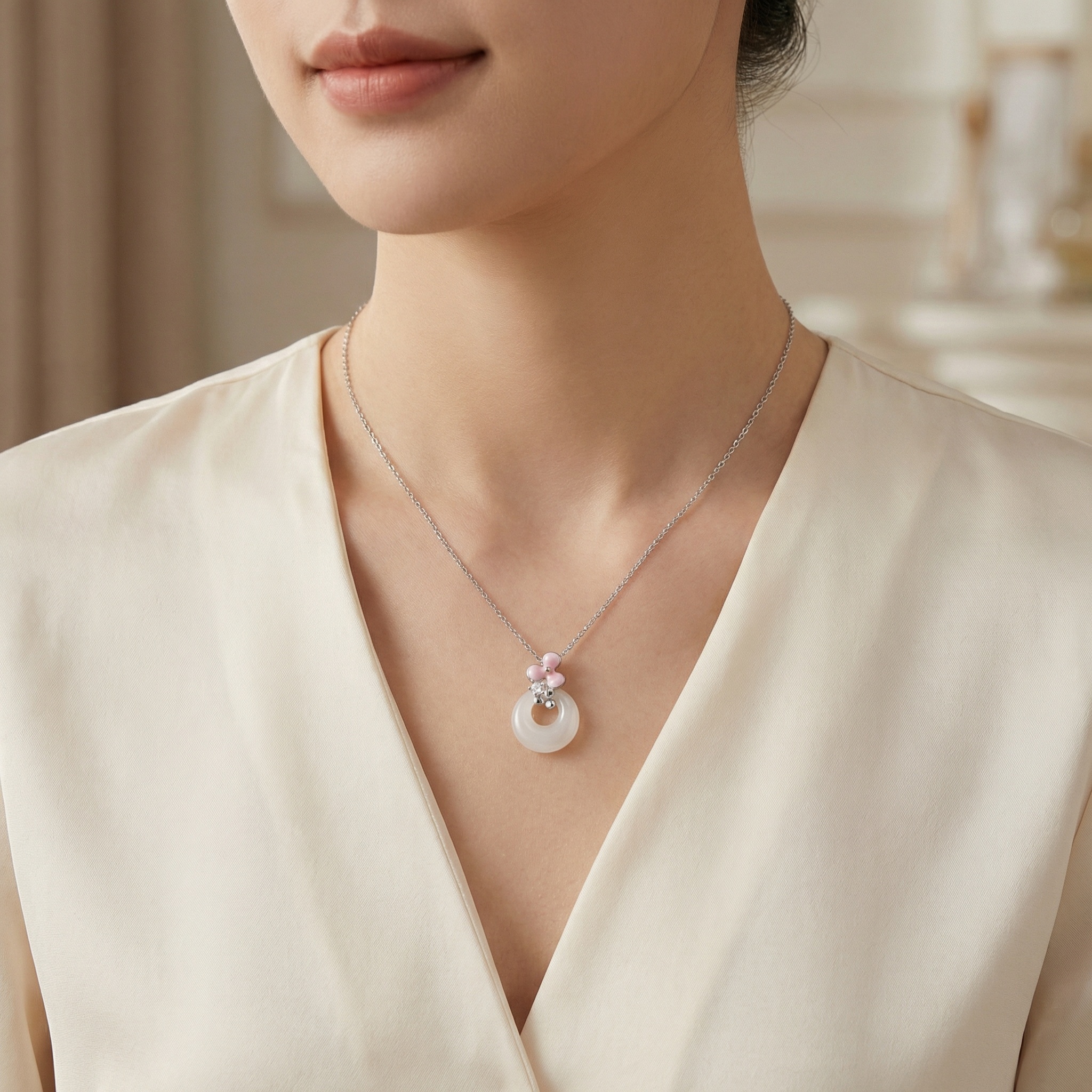 【Delivery Includes】 1 x Flower Circle Pendant Necklace with Pearl-like Cubic Zirconia Stones 1 x Gift Box 1 x Cleaning Cloth 【Care Instructions】 1. Store your necklace in a dry, air-tight jewelry box when not in use to prevent tarnishing and scratches. 2. Gently clean with a soft cloth after wearing to maintain its brilliance. 3. Avoid contact with chemicals, water, and perfumes to preserve quality and shine. 4. Remove before swimming, bathing, or exercising to ensure longevity. | Brand: jewelryodm