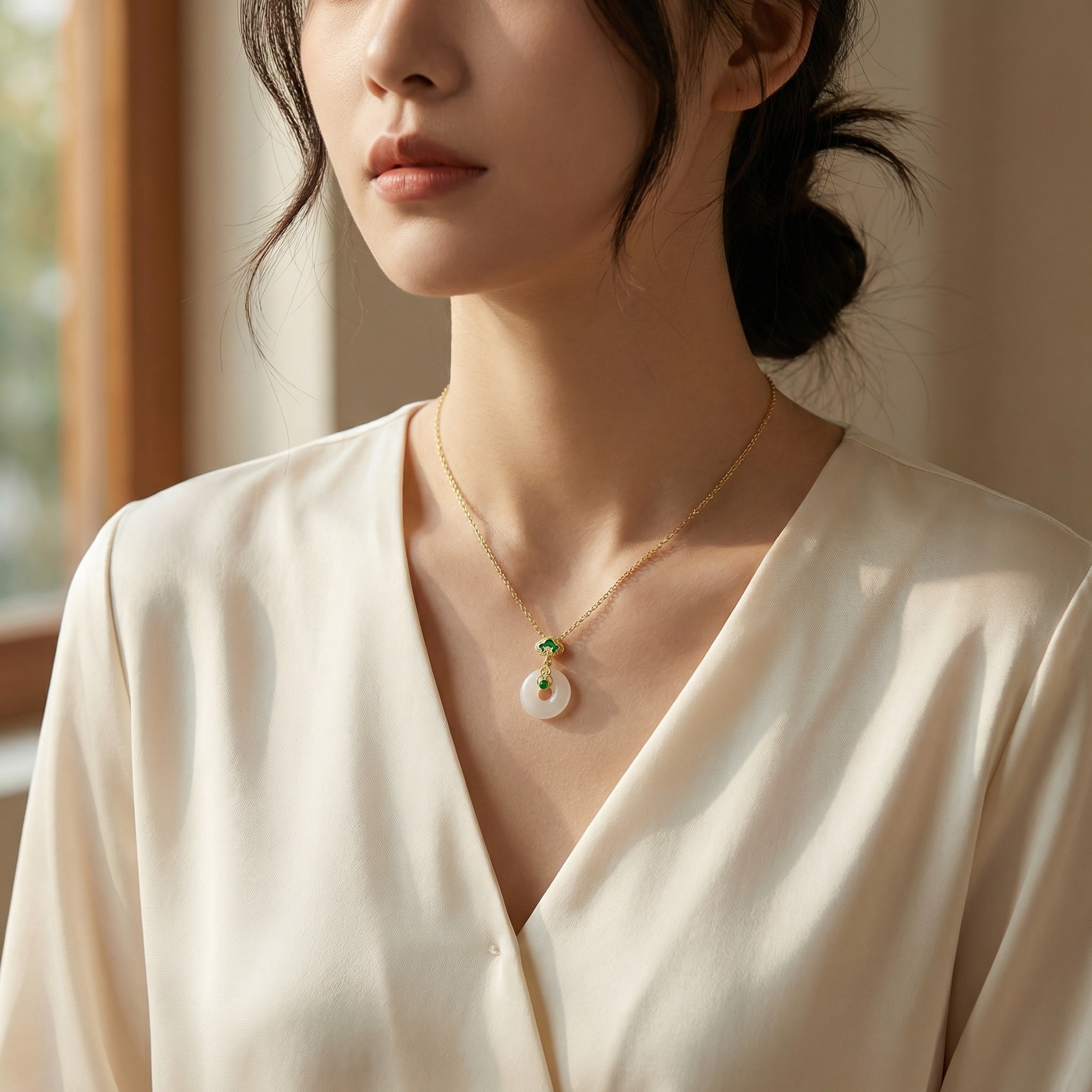 【Delivery Includes】 1 x Jade Bi Pendant Necklace 1 x Premium Gift Box 1 x Jewelry Cleaning Cloth 【Care Instructions】 1. Store your necklace in the provided box when not in use to prevent scratches and tarnish. 2. Avoid exposure to harsh chemicals, cosmetics, or prolonged water for maintaining jade’s lustrous finish. 3. Gently wipe after each wear with the included cleaning cloth to remove surface oils or dust. 4. Remove before participating in strenuous activities to avoid accidental damage. 5. Clean with mild soapy water and a soft brush for best upkeep. | Brand: jewelryodm