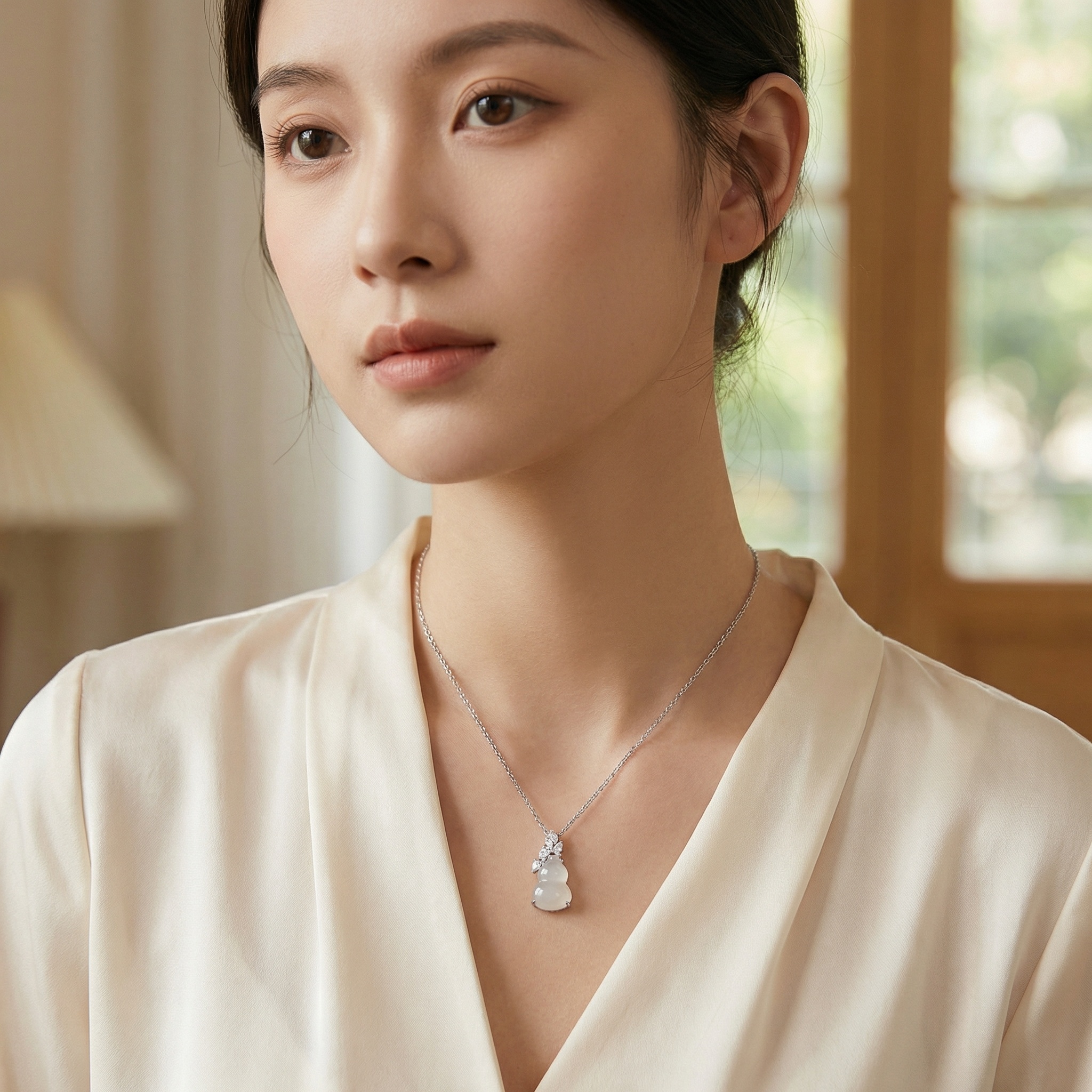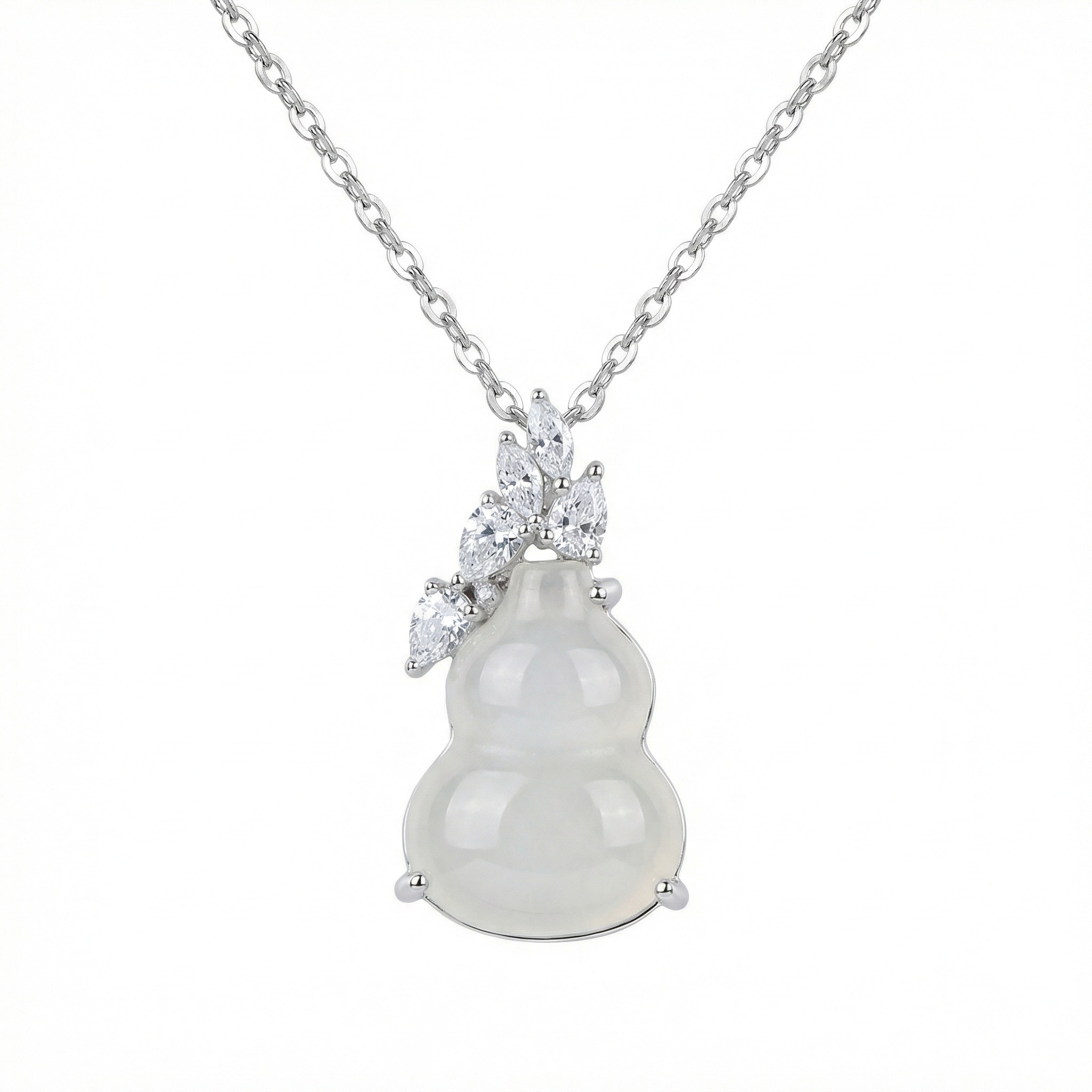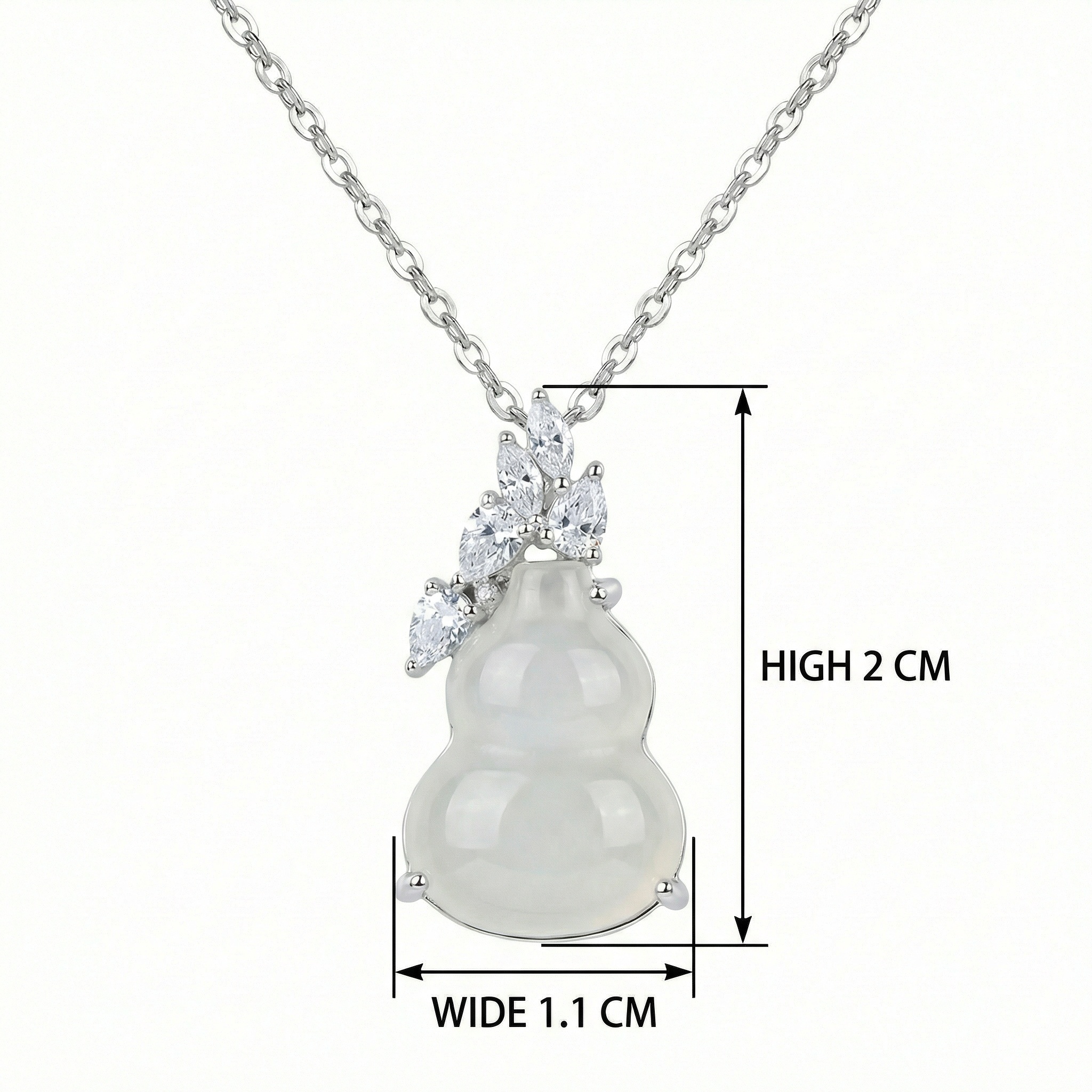 【Delivery Includes】 1 x Gourd Pendant Necklace with White Jade and Diamond Leaves 1 x Elegant Gift Box 1 x Jewelry Cleaning Cloth 【Care Instructions】 1. Store your necklace in the provided box to avoid scratches and protect its shine. 2. Clean gently with the jewelry cloth after each wear to remove oils and dust. 3. Avoid exposure to harsh chemicals, perfumes, and lotions that can damage gemstones and gold. 4. Remove before swimming, bathing, or exercising to prevent tarnish and wear. 5. For longevity, do not stack with other jewelry pieces to minimize the risk of scratches. | Brand: jewelryodm