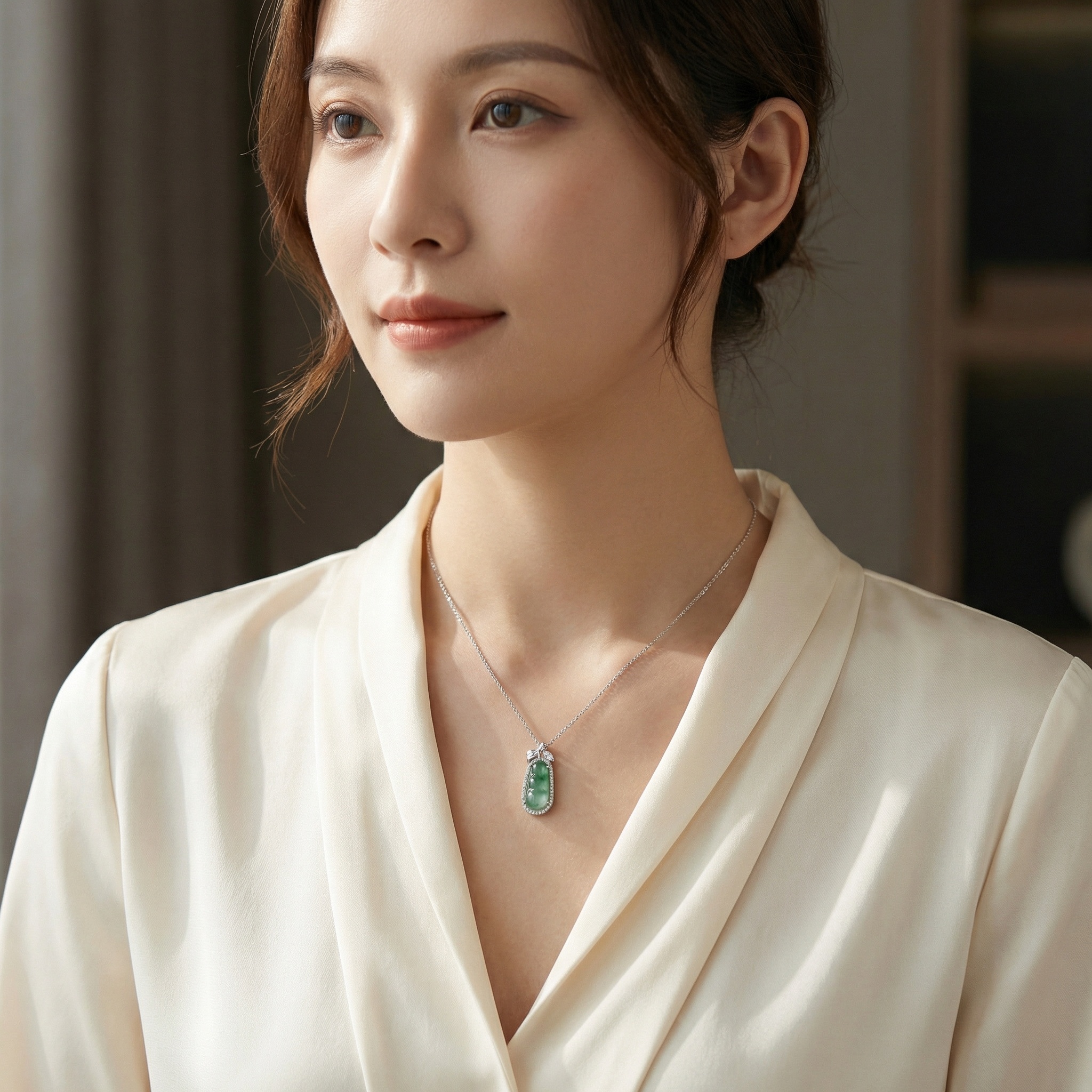 【Delivery Includes】 1 x Peach Jade and Diamond Necklace 1 x Gift Box 1 x Cleaning Cloth 【Care Instructions】 1. Gently wipe your necklace with the cleaning cloth after each use to remove oil and dust. 2. Store in the provided gift box or a soft pouch, away from direct sunlight and moisture. 3. Avoid contact with chemicals including perfumes, lotions, and cleaning agents. 4. Remove before swimming, bathing, or sleeping to preserve gemstone brilliance and metal finish. | Brand: jewelryodm