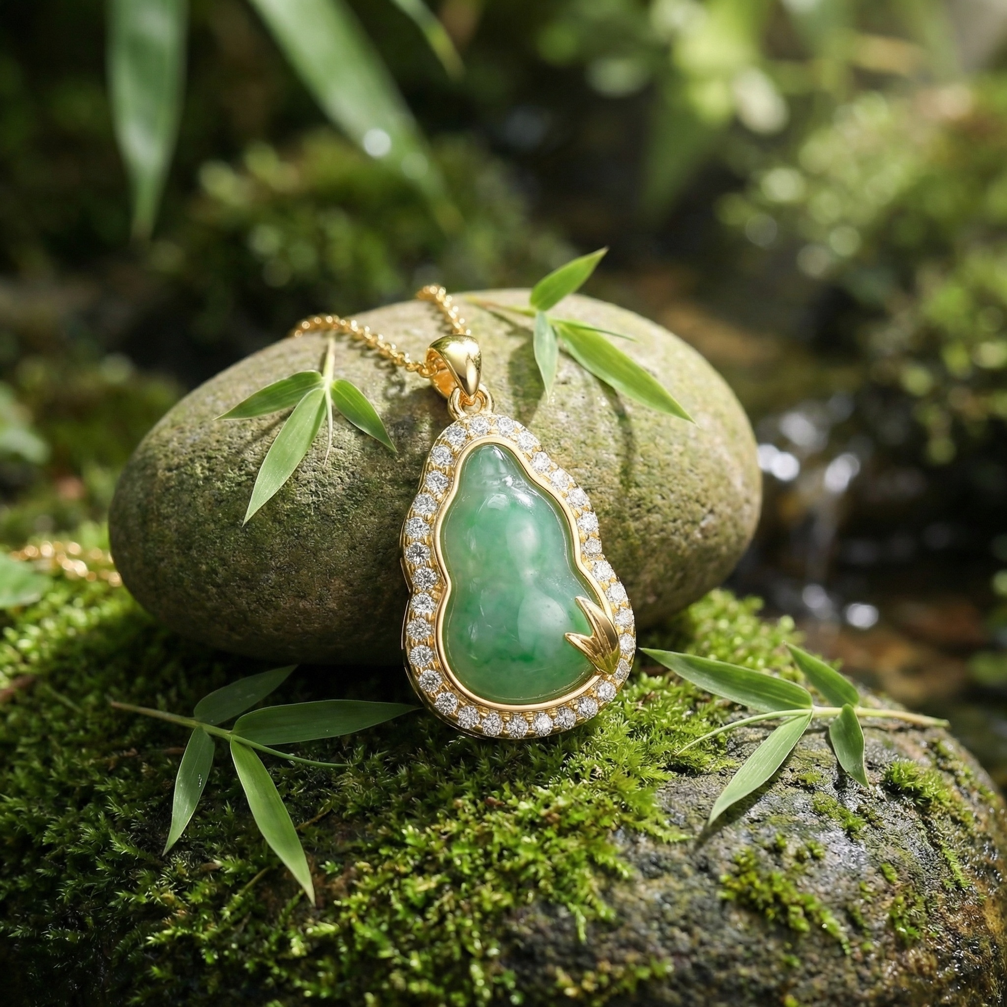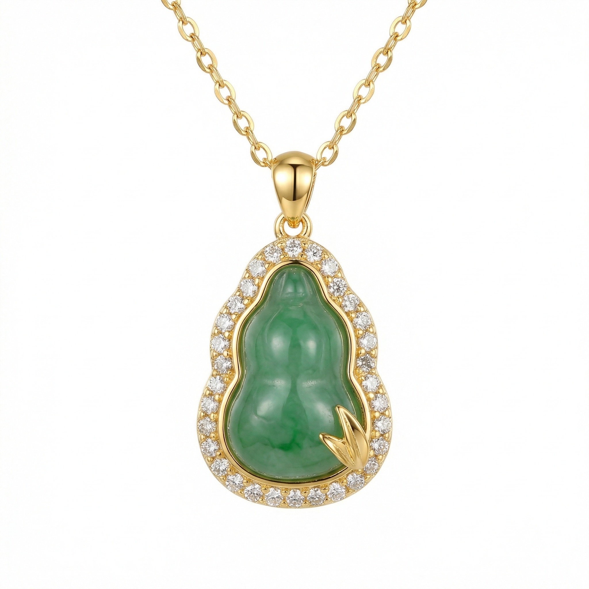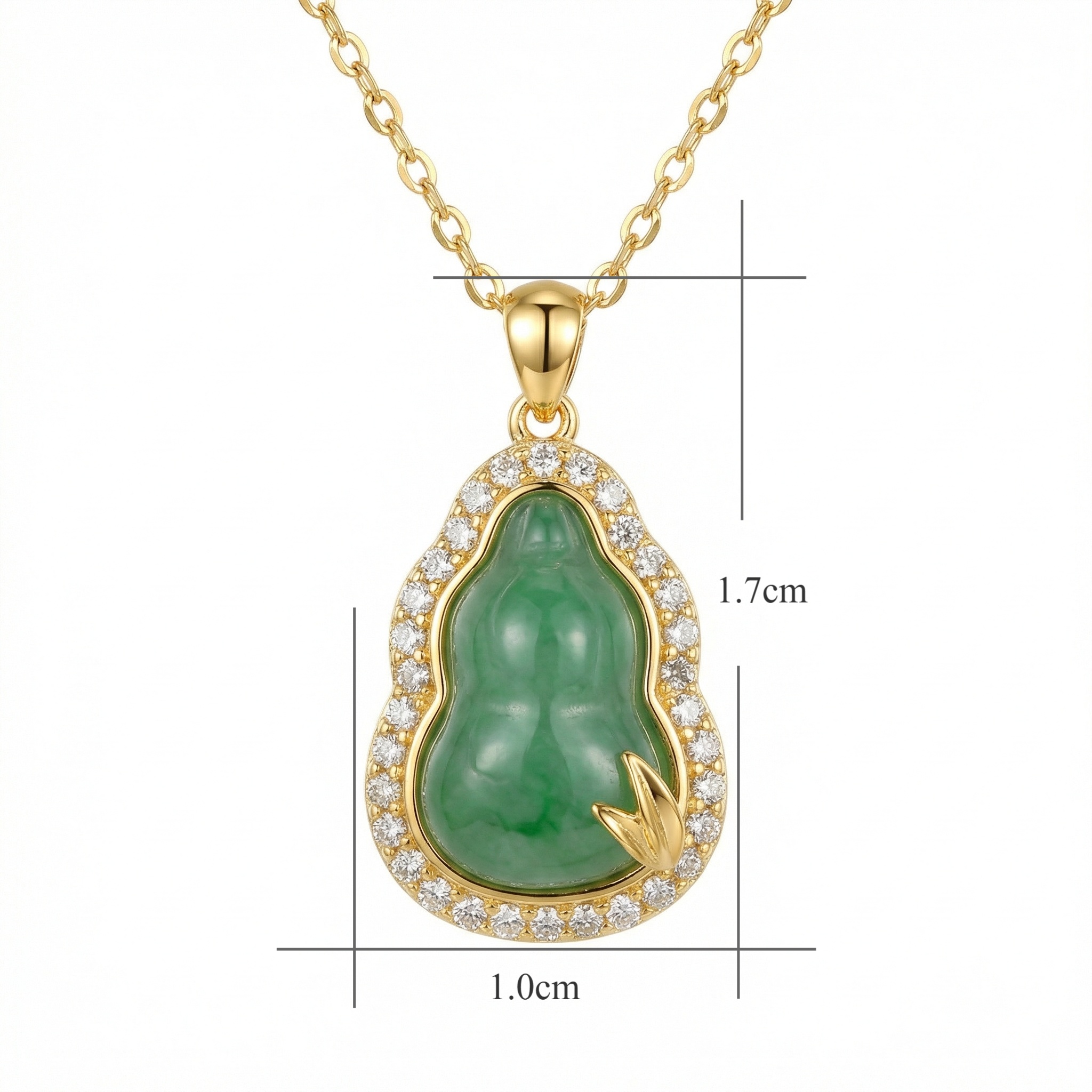 【Delivery Includes】 1 x 925 Silver Irregular Gourd Jade Pendant Necklace with Diamond Halo 1 x Elegant Gift Box 1 x Jewelry Cleaning Cloth 【Care Instructions】 1. Store your necklace in the provided box or a soft pouch to avoid scratches and minimize exposure to air. 2. Avoid contact with chemicals such as perfume, lotions, or cleaning products. 3. Remove the necklace before bathing, swimming, or engaging in strenuous activities. 4. Gently wipe the surface with the included cleaning cloth after each use to maintain its brilliance. 5. Handle the jade and gold with care to preserve their natural beauty and luster. | Brand: jewelryodm